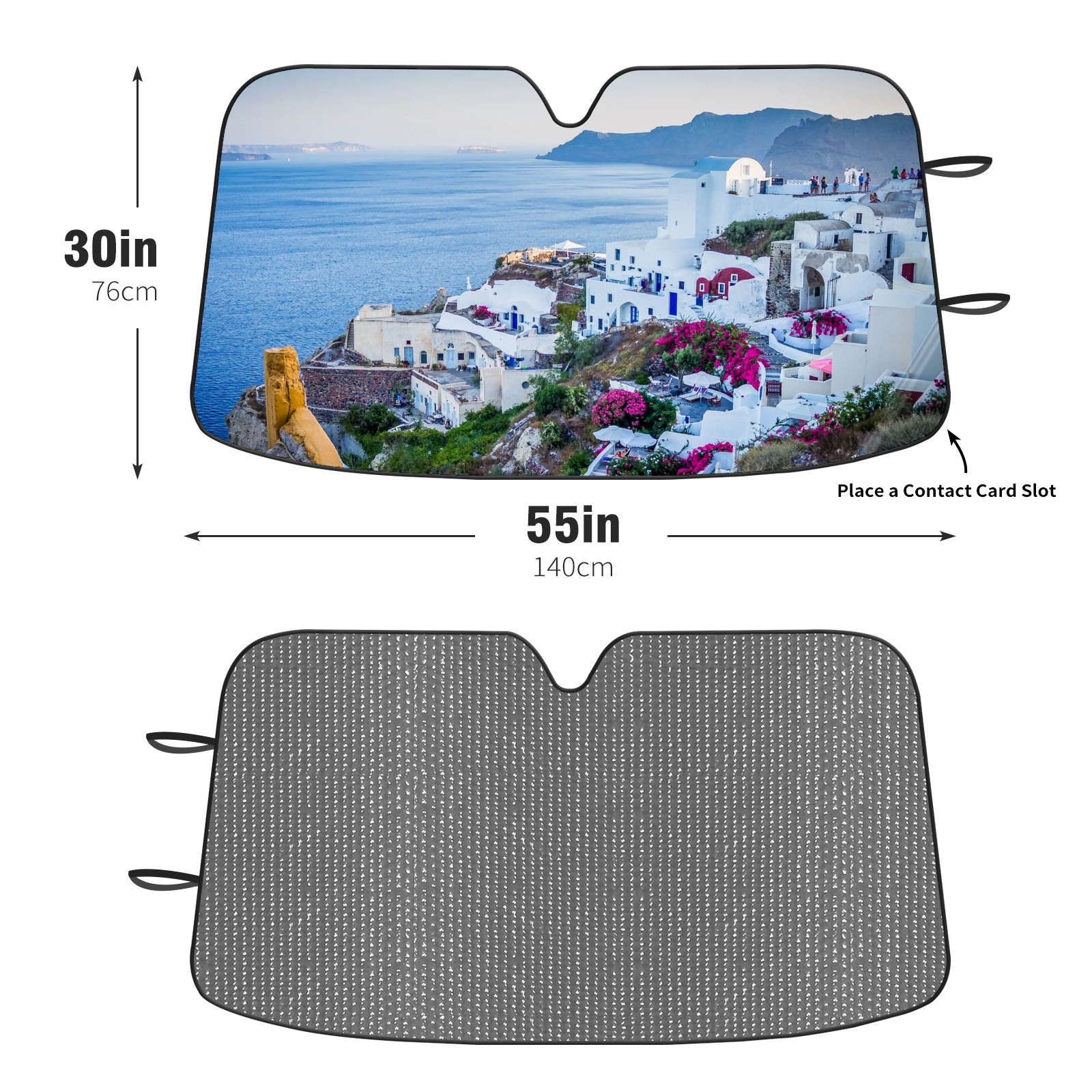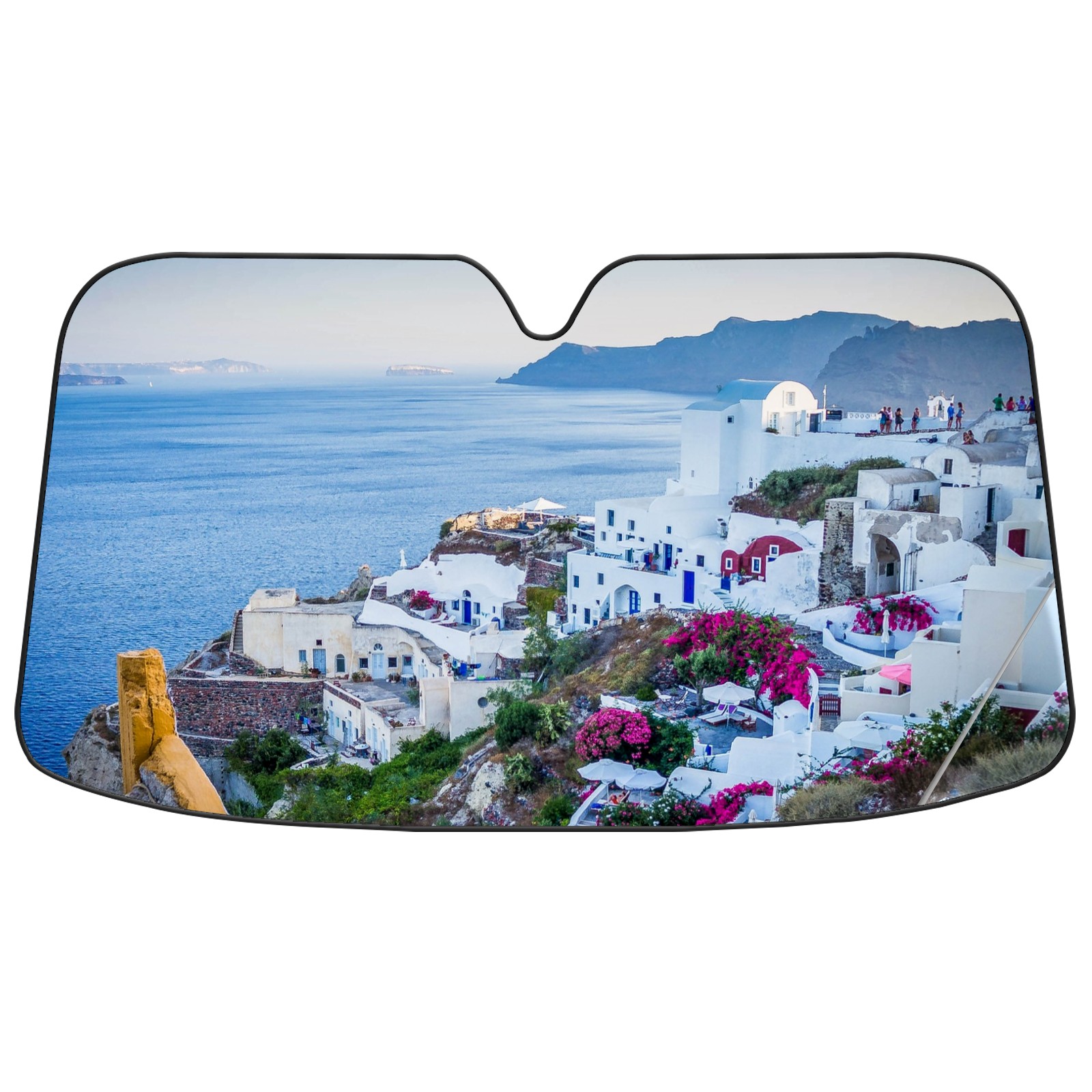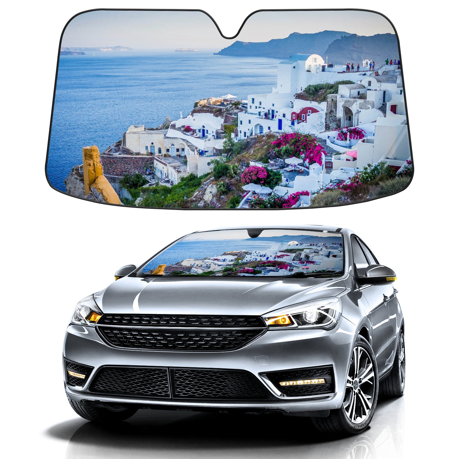 Car Windshield Sun Shade For Front Window Santorini Village Greece Island Sea Foldable Vehicle Windshield Car Sun Visor Covers Automotive Window Protector Car Camping Privacy Sun Blocker