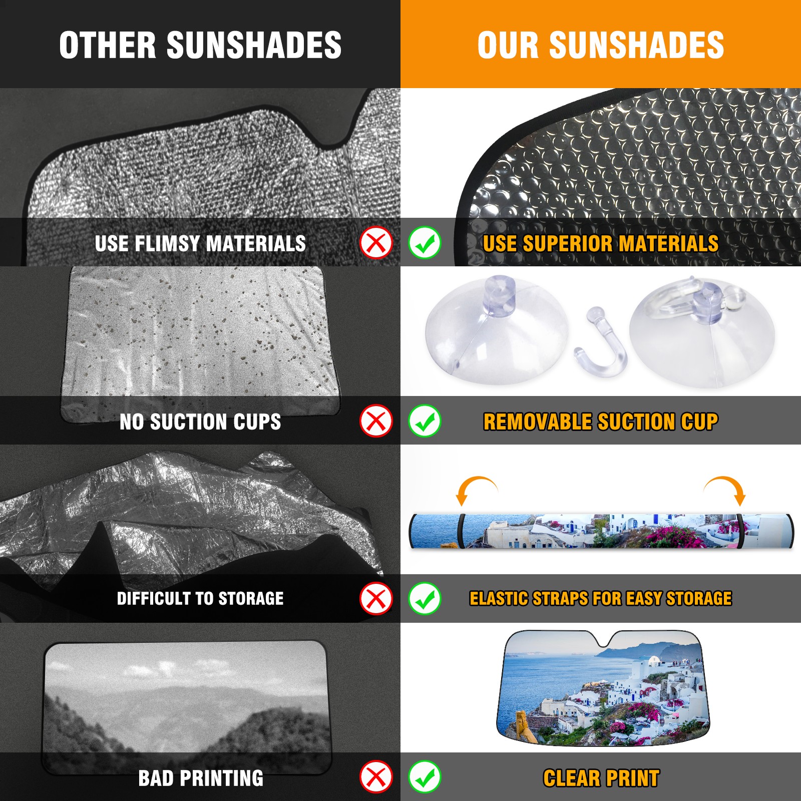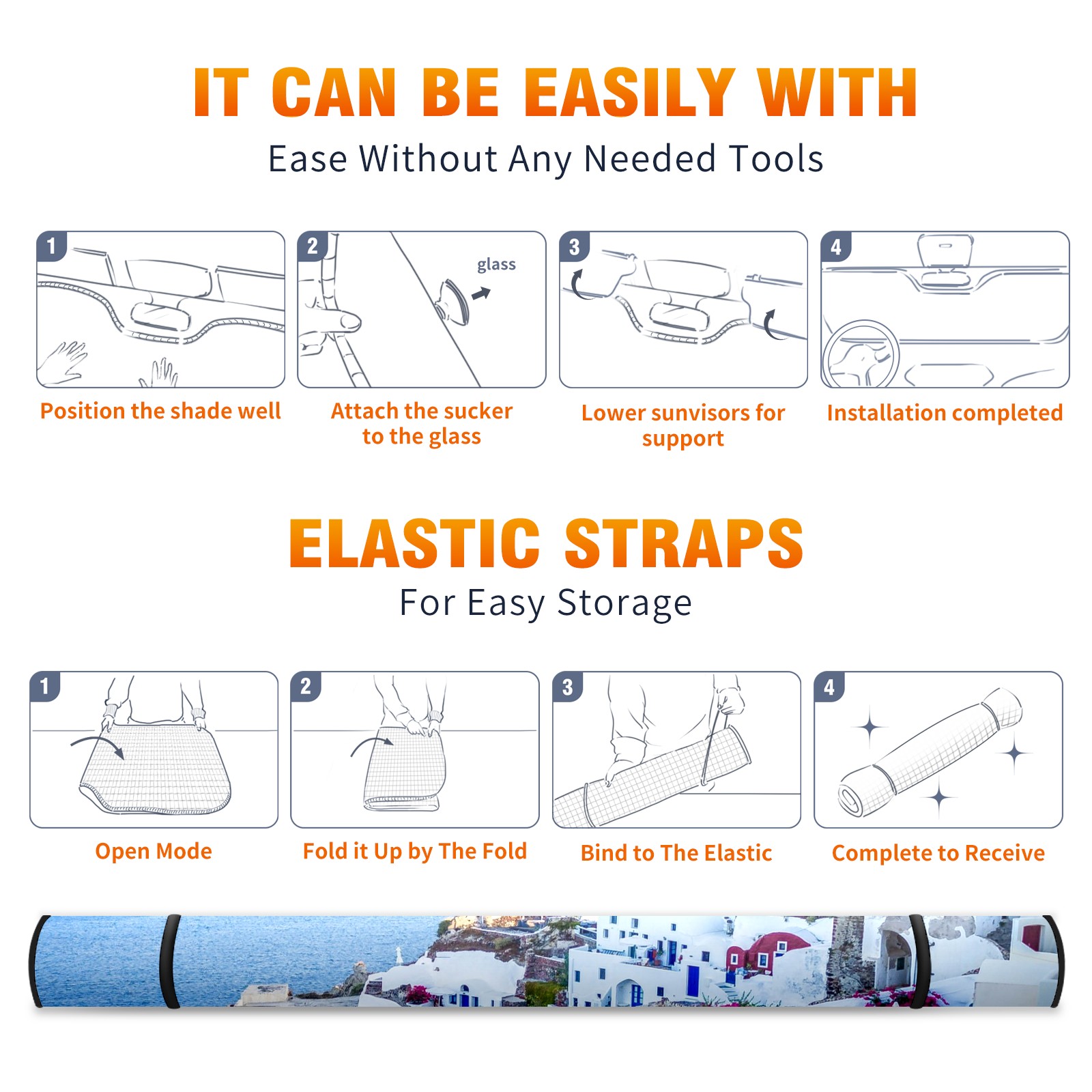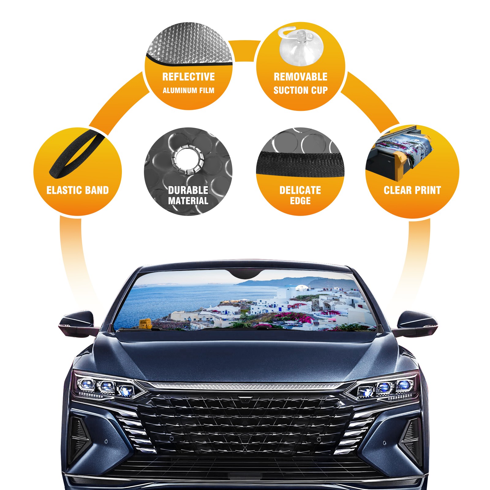 Car Windshield Sun Shade For Front Window Santorini Village Greece Island Sea Foldable Vehicle Windshield Car Sun Visor Covers Automotive Window Protector Car Camping Privacy Sun Blocker