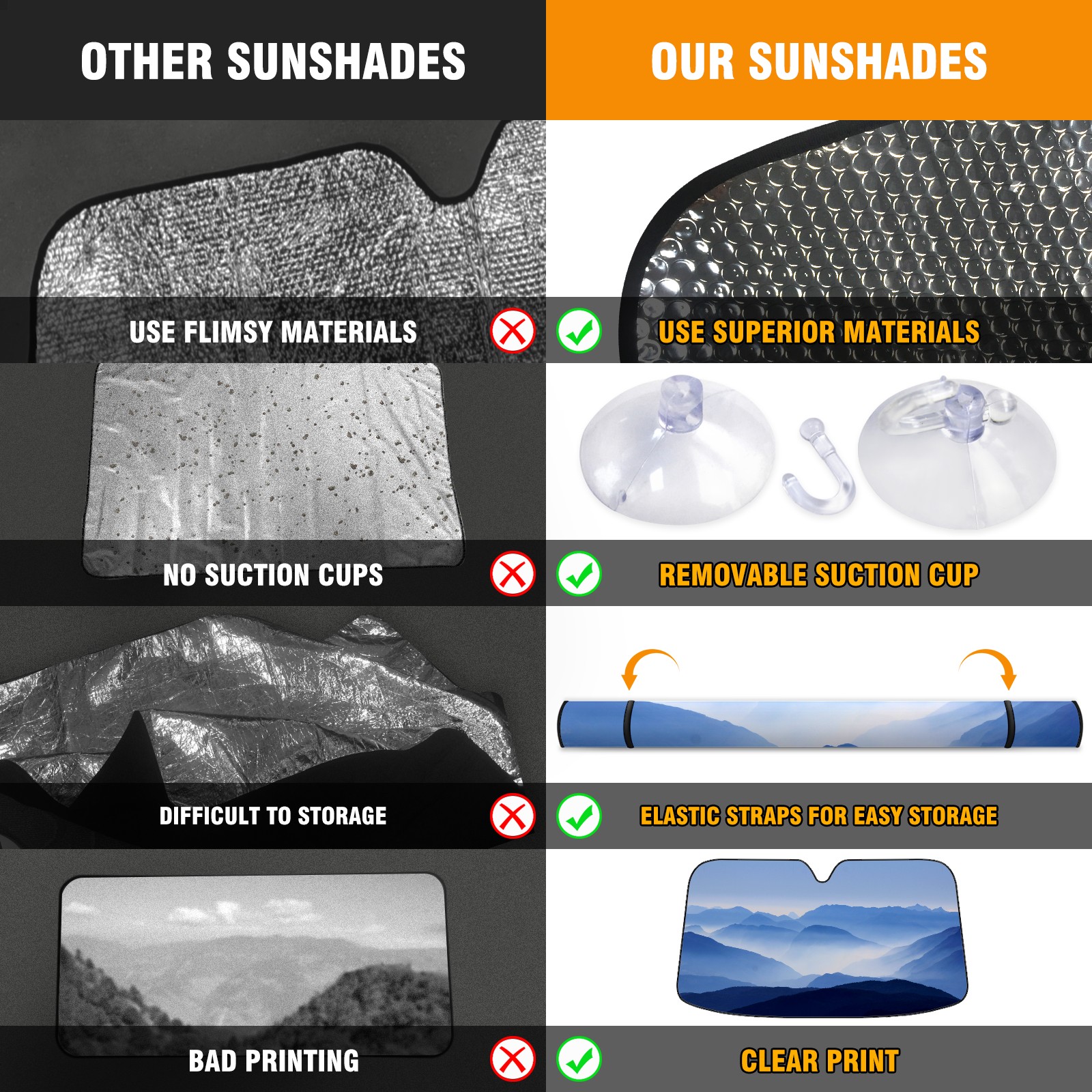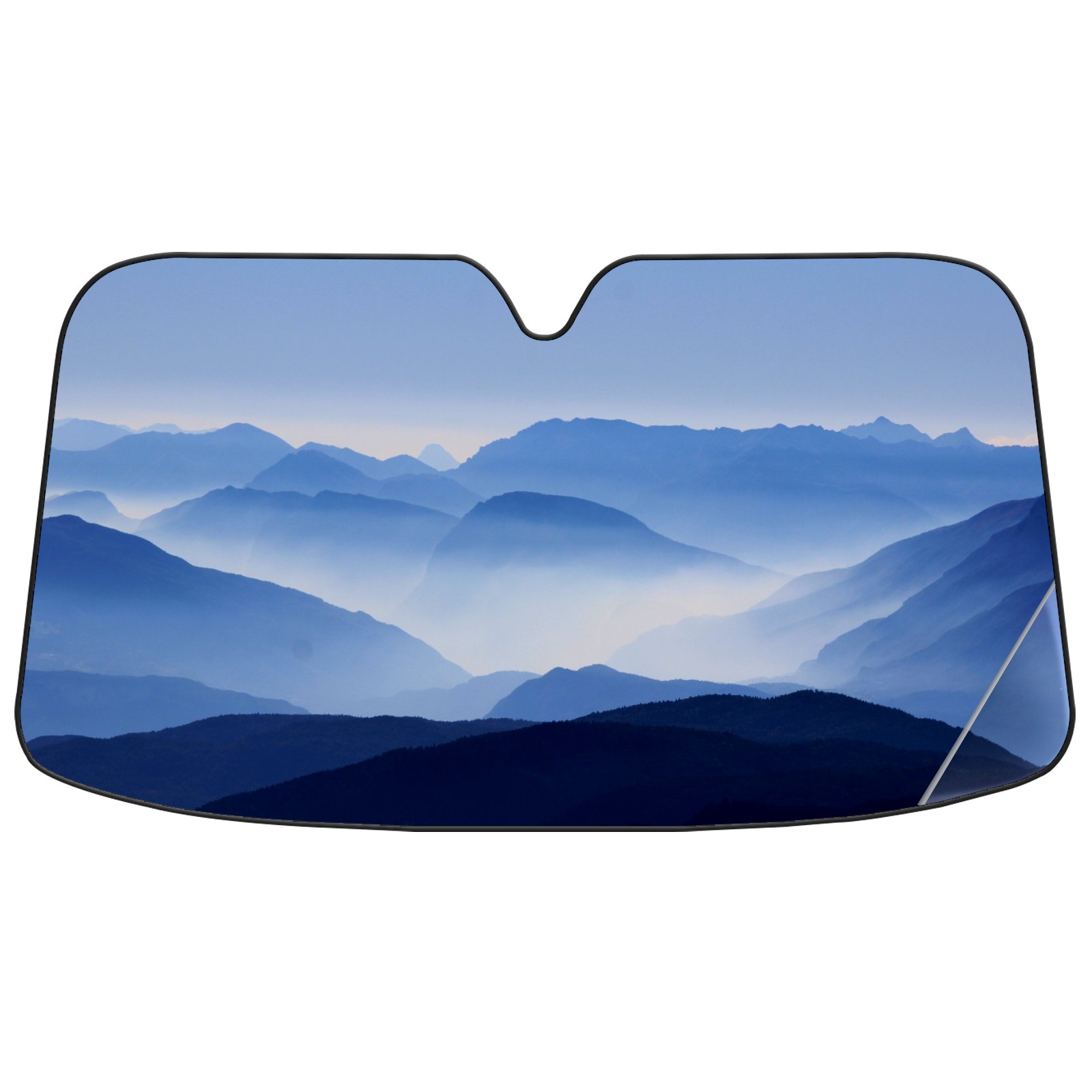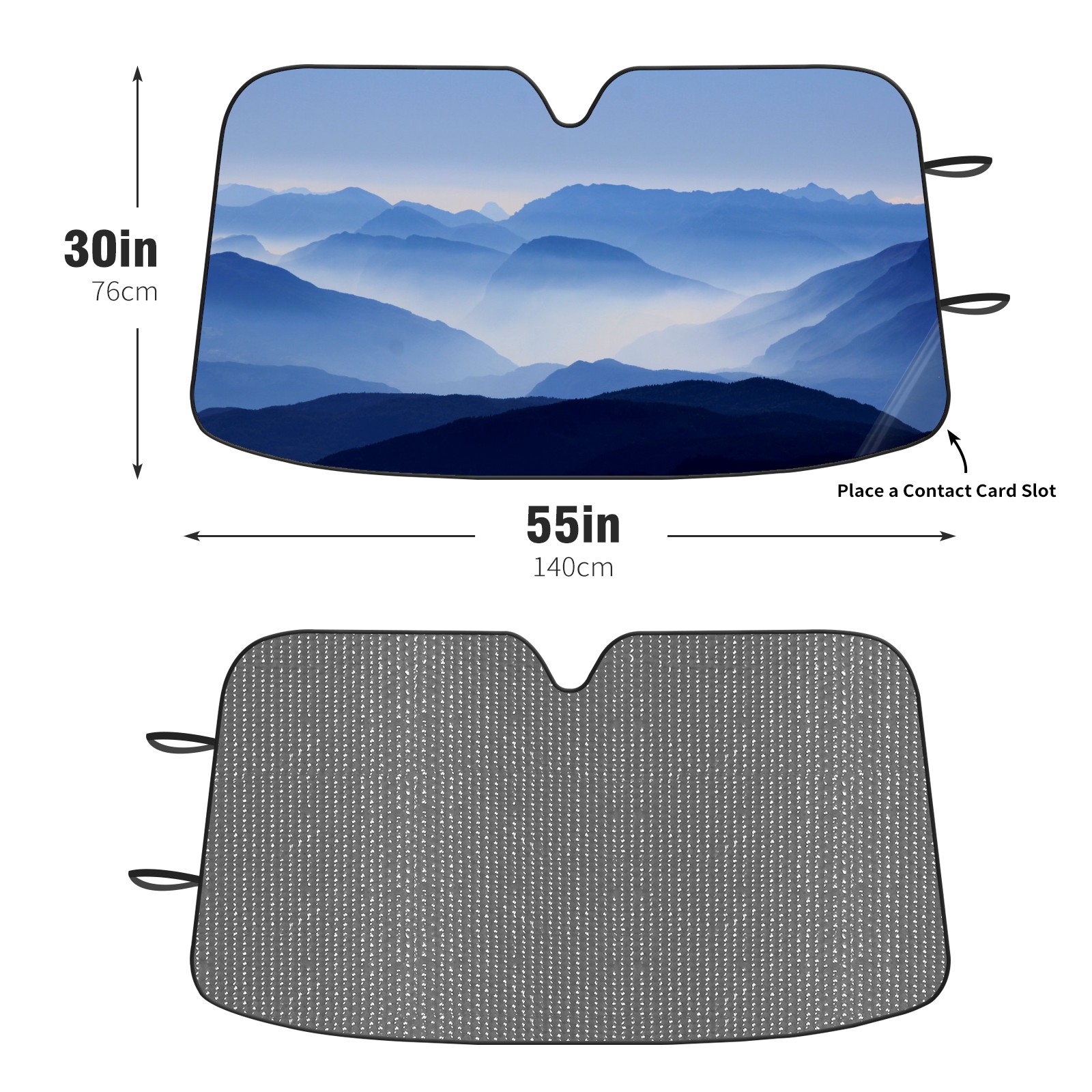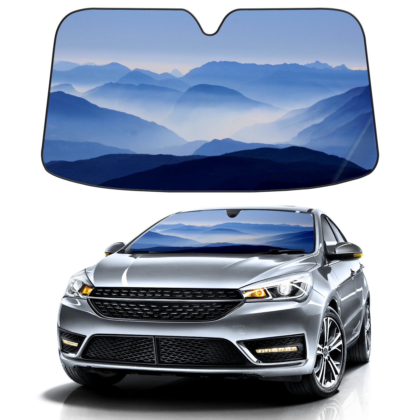Car Windshield Sun Shade For Front Window Landscape Blue Mountain Clouds Foldable Vehicle Windshield Car Sun Visor Covers Automotive Window Protector Car Camping Privacy Sun Blocker