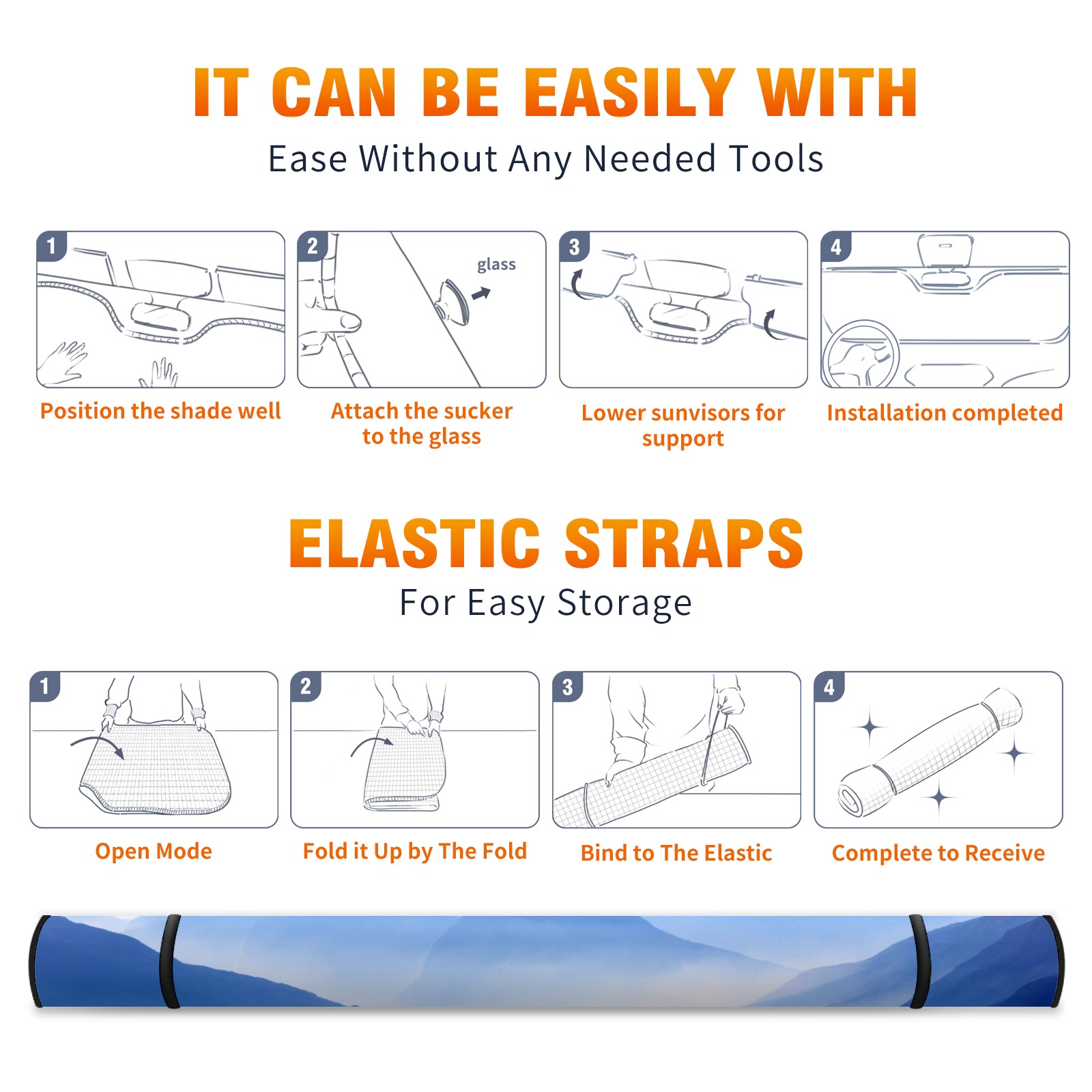 • Diameter /Size 63"L x 33.5"W Made from excellent materials which makes it sturdy and protects the car from the sun. Easy to use and pack. Makes the interior of the car cooler.You can easily stash the sunshade in the storage bag or store long term.It open and closes easy. Also the leather storage bag is durable and easy to put the umbrella back into.This windshield sunshade provides complete coverage and keeps your car interior cool under direct sun. It is easy to open and position under the windshield and around the rear-view mirror. Makes Your Car Easy To Identify, Perfect For Finding Your Car In Crowded Parking Lots And Garages.Great Choice: It Is A Great Gift For Dad, Boyfriend, Brother, Brother And Uncle, Friends, Classmates, Family And So On. Notice: Due To Difference Computer Monitors, The Color Maybe Slightly Different From Picture. As Different Measurement Methods, Measurement Data Will Float Within 2%.I Hope You Understand. If You Have Any Question About The Item Please Do Not Hesitate To Contact Us Immediately And We Will Give You A Satisfactory Reply Within 24 Hours.