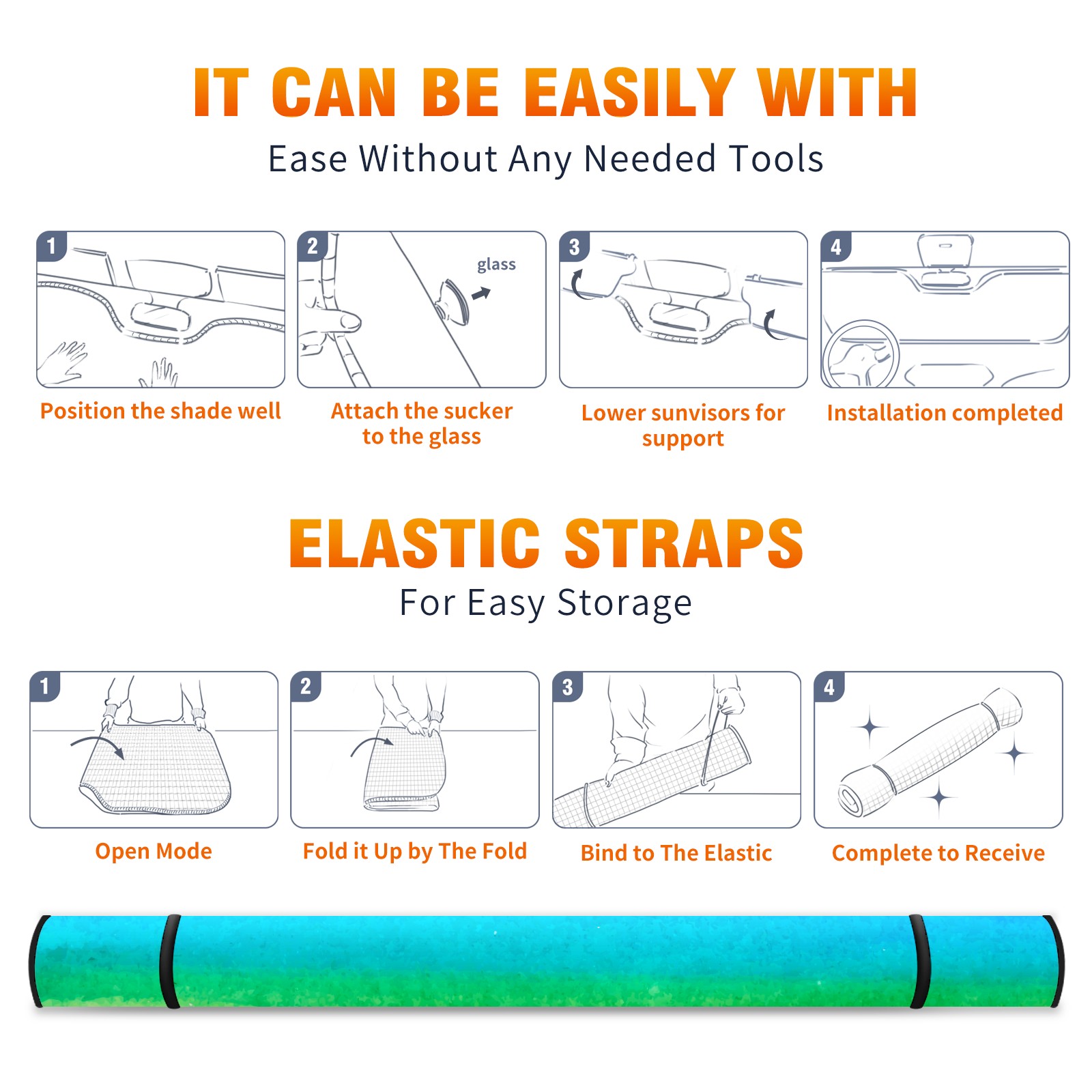 • Diameter /Size 63"L x 33.5"W Made from excellent materials which makes it sturdy and protects the car from the sun. Easy to use and pack. Makes the interior of the car cooler.You can easily stash the sunshade in the storage bag or store long term.It open and closes easy. Also the leather storage bag is durable and easy to put the umbrella back into.This windshield sunshade provides complete coverage and keeps your car interior cool under direct sun. It is easy to open and position under the windshield and around the rear-view mirror. Makes Your Car Easy To Identify, Perfect For Finding Your Car In Crowded Parking Lots And Garages.Great Choice: It Is A Great Gift For Dad, Boyfriend, Brother, Brother And Uncle, Friends, Classmates, Family And So On. Notice: Due To Difference Computer Monitors, The Color Maybe Slightly Different From Picture. As Different Measurement Methods, Measurement Data Will Float Within 2%.I Hope You Understand. If You Have Any Question About The Item Please Do Not Hesitate To Contact Us Immediately And We Will Give You A Satisfactory Reply Within 24 Hours.