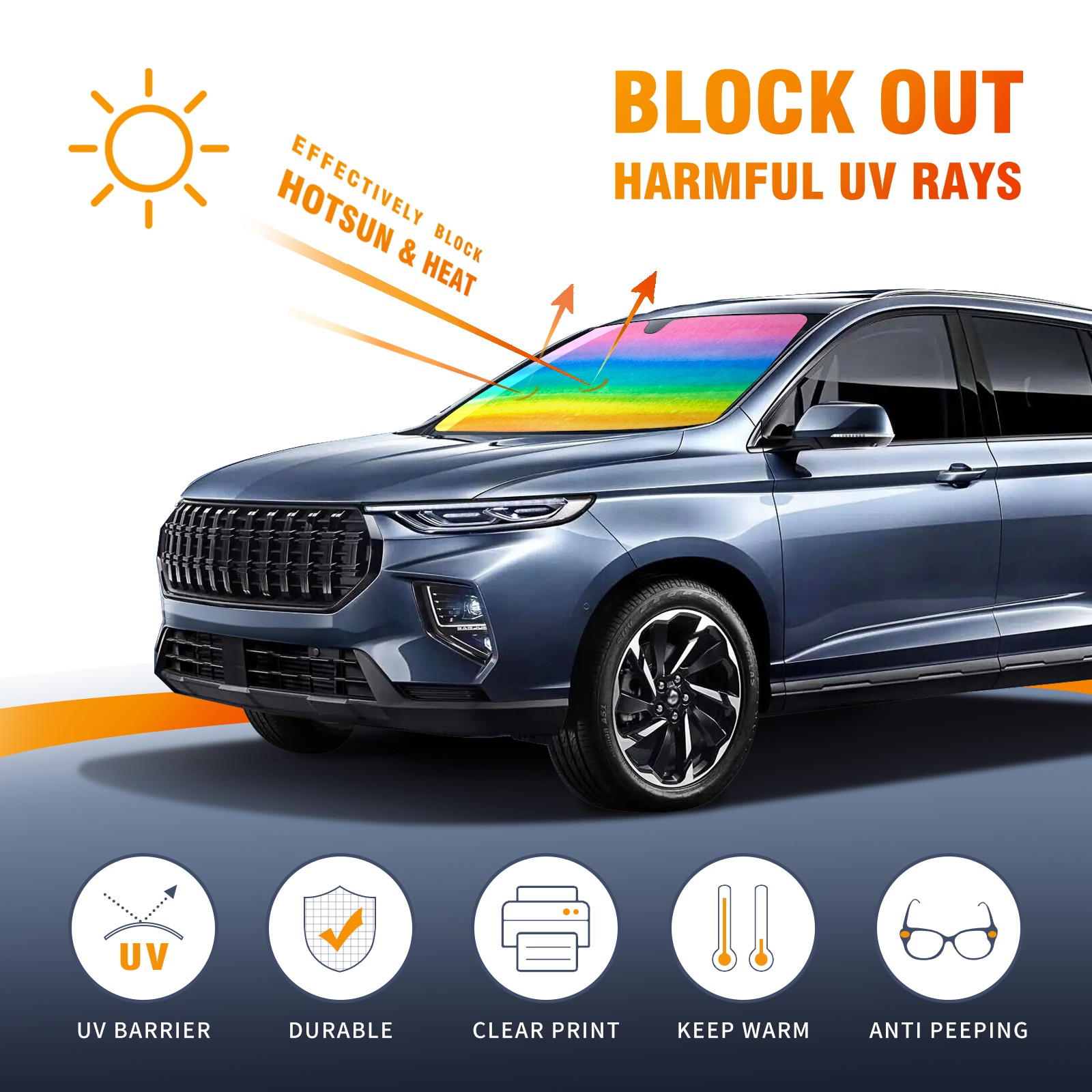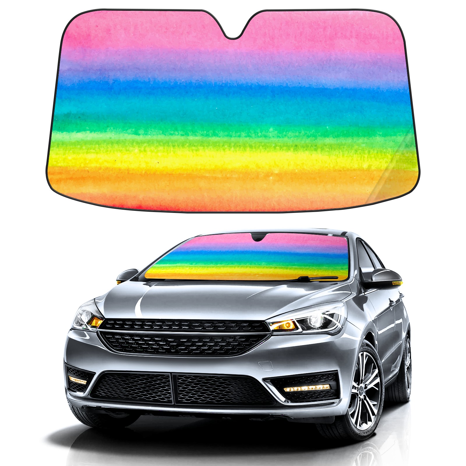 Car Windshield Sun Shade For Front Window Watercolor Colorful Rainbow Painting Foldable Vehicle Windshield Car Sun Visor Covers Automotive Window Protector Car Camping Privacy Sun Blocker