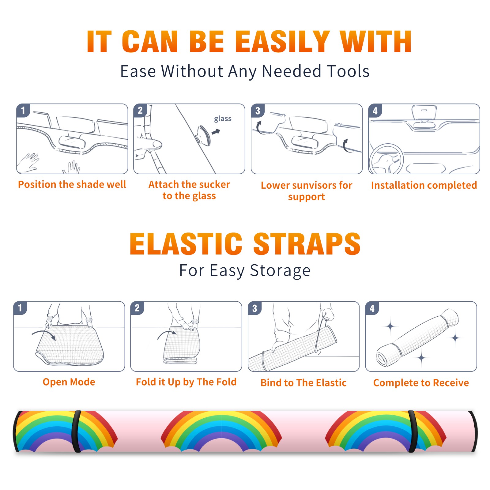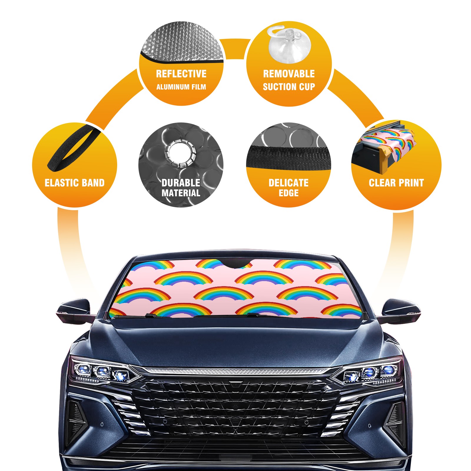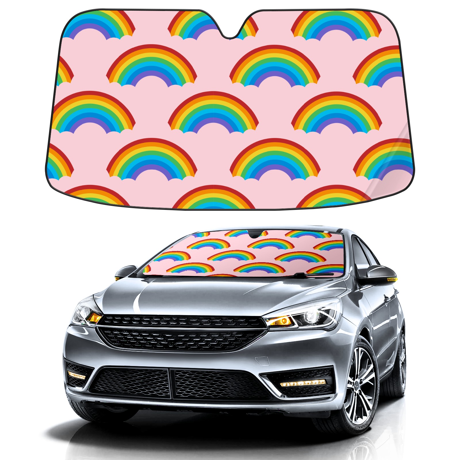 Car Windshield Sun Shade For Front Window v387-tang-37-rainbowpattern [转换] Foldable Vehicle Windshield Car Sun Visor Covers Automotive Window Protector Car Camping Privacy Sun Blocker