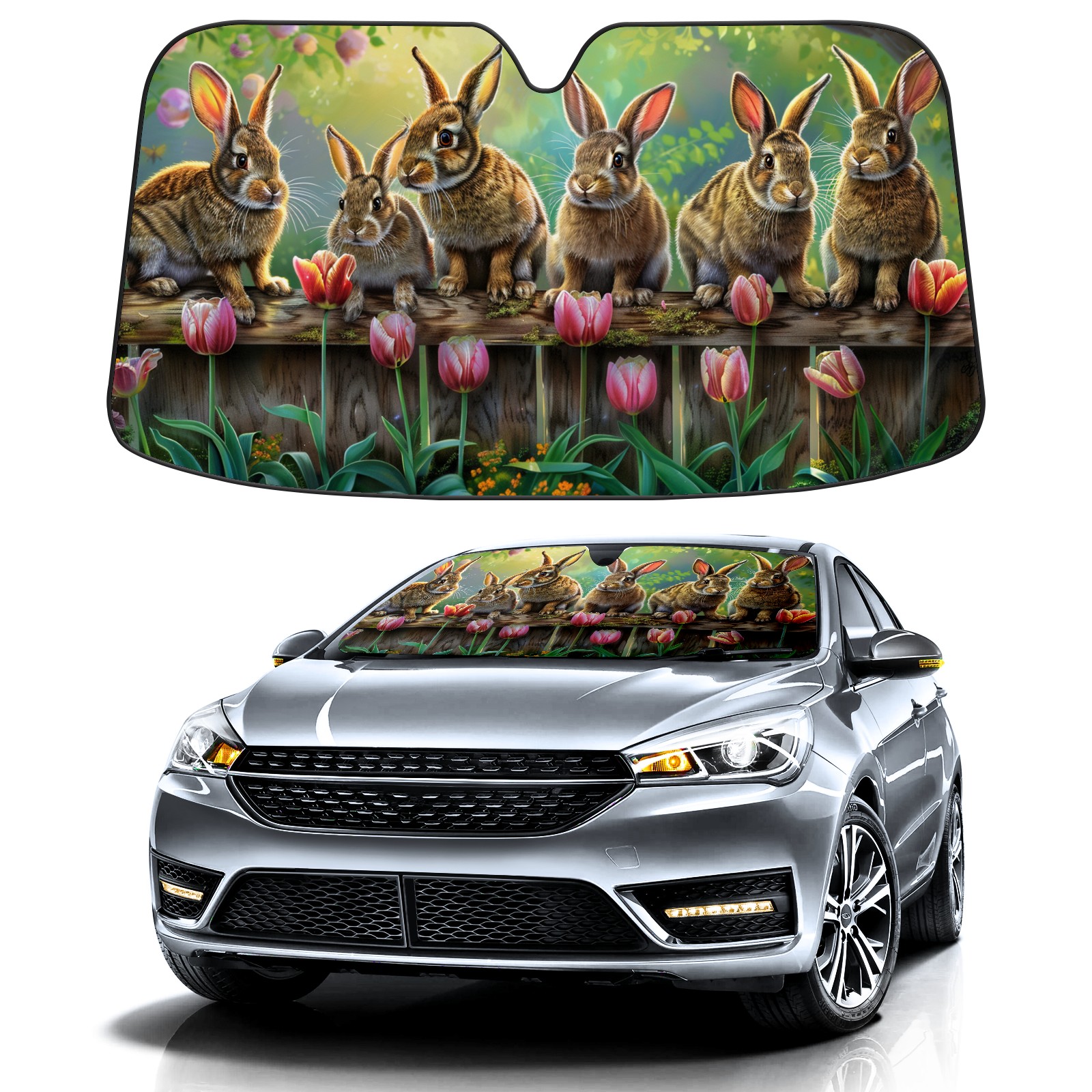 Car Windshield Sun Shade For Front Window Rabbit Flower Foldable Vehicle Windshield Car Sun Visor Covers Automotive Window Protector Car Camping Privacy Sun Blocker
