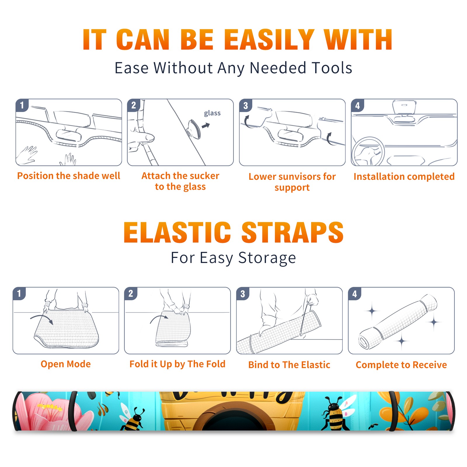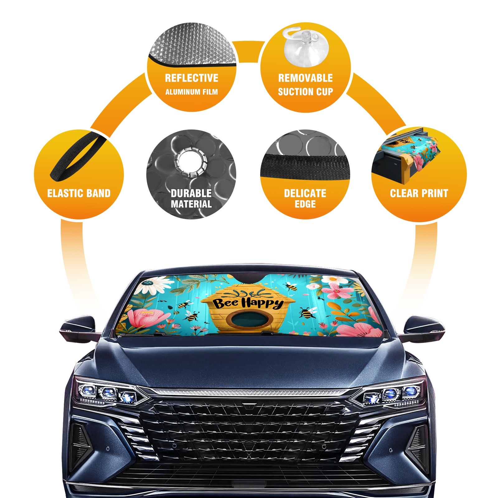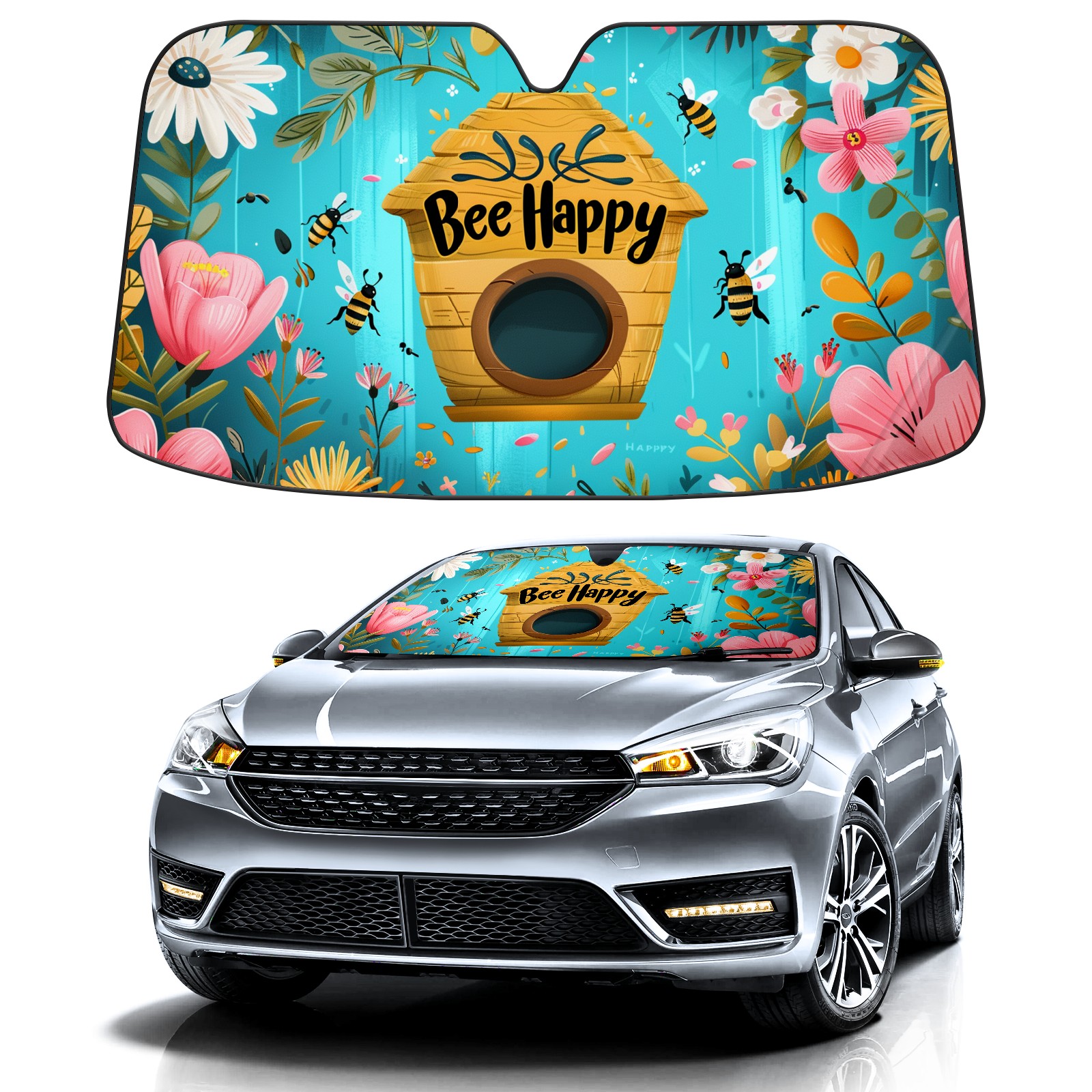 Car Windshield Sun Shade For Front Window Bee Flower Foldable Vehicle Windshield Car Sun Visor Covers Automotive Window Protector Car Camping Privacy Sun Blocker