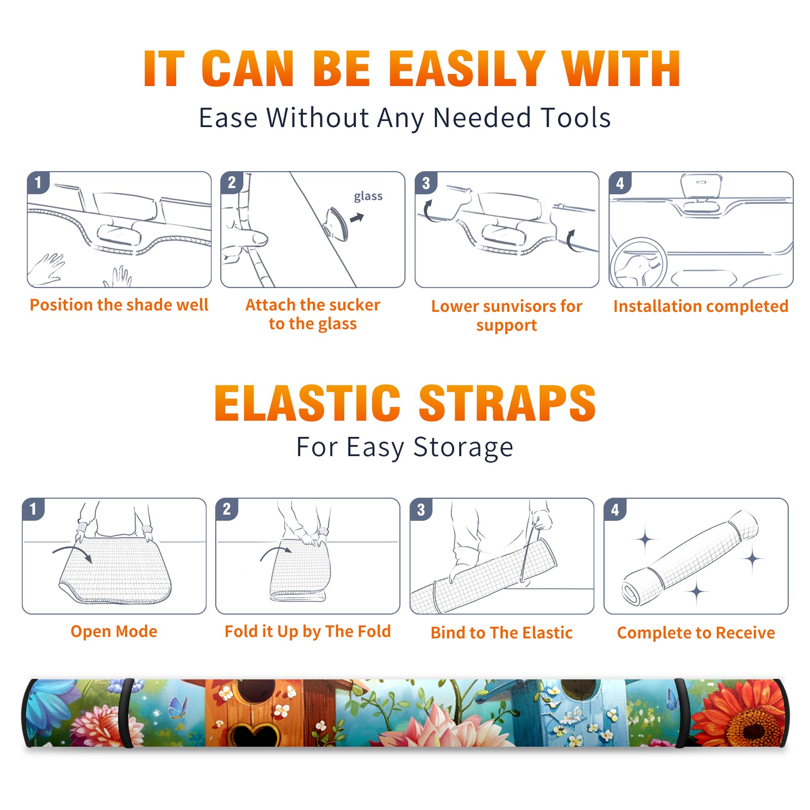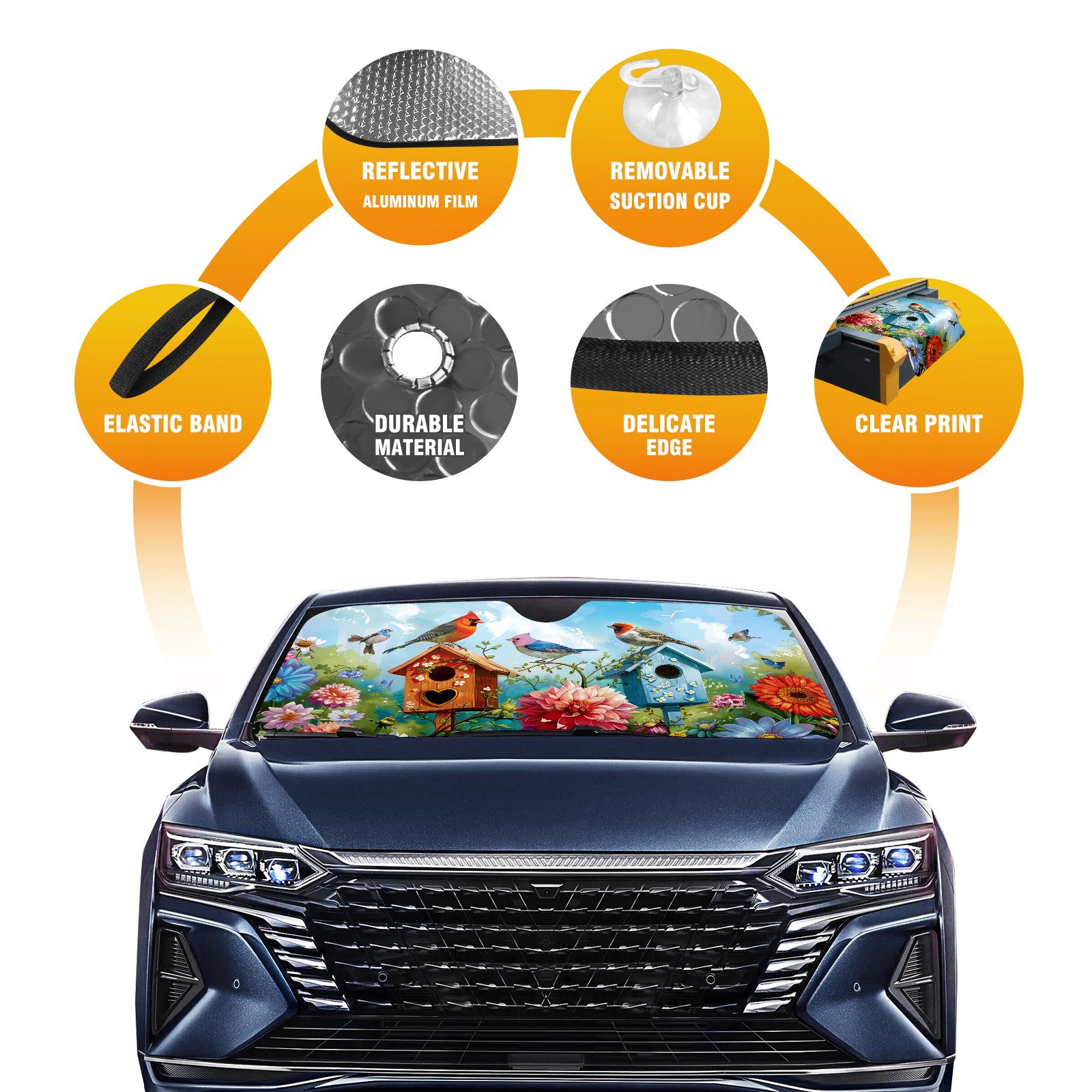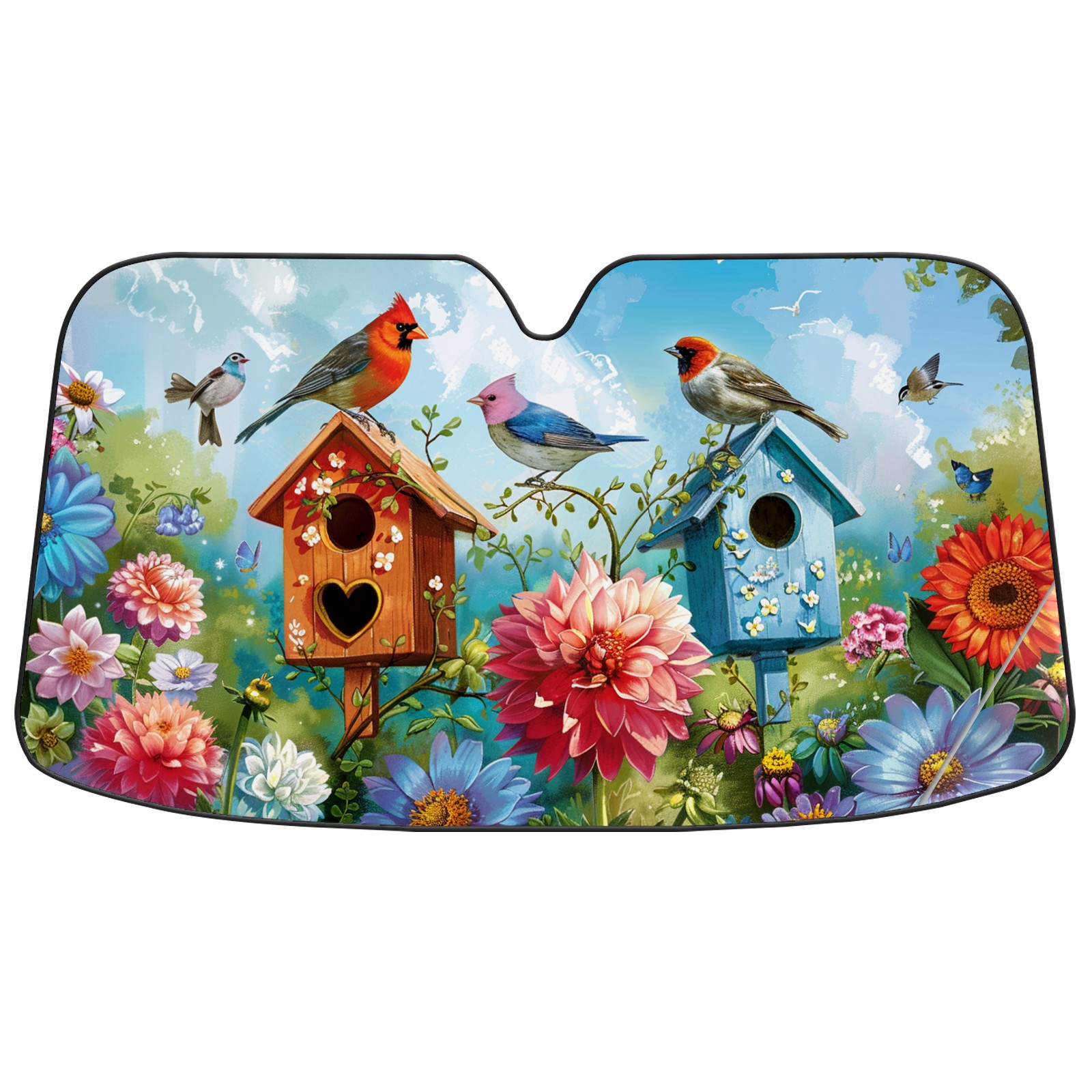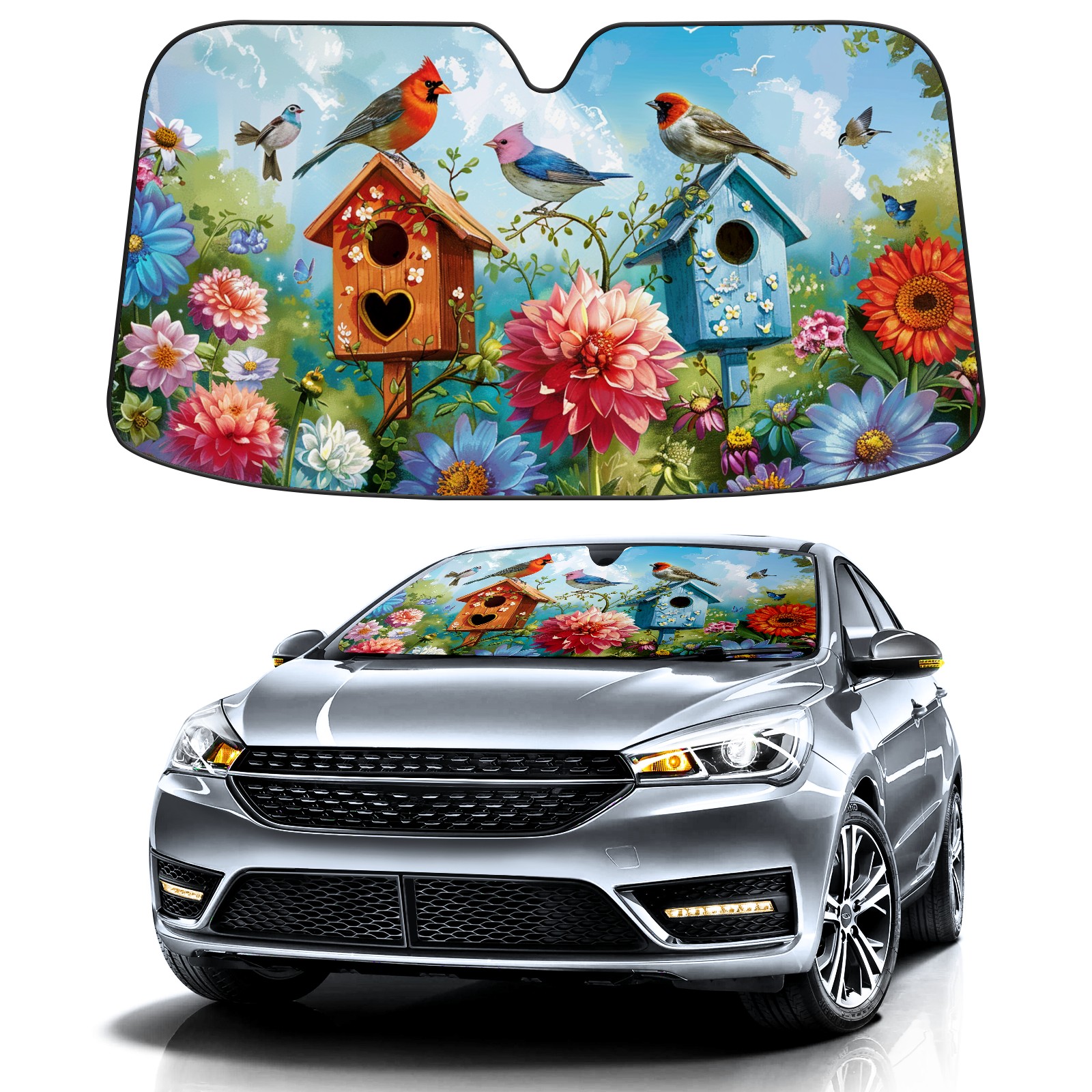 Car Windshield Sun Shade For Front Window Bird Sunflower Foldable Vehicle Windshield Car Sun Visor Covers Automotive Window Protector Car Camping Privacy Sun Blocker