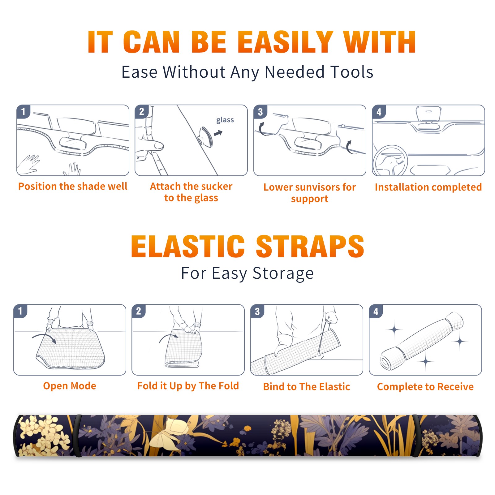 Car Windshield Sun Shade For Front Window Flowers6 Foldable Vehicle Windshield Car Sun Visor Covers Automotive Window Protector Car Camping Privacy Sun Blocker