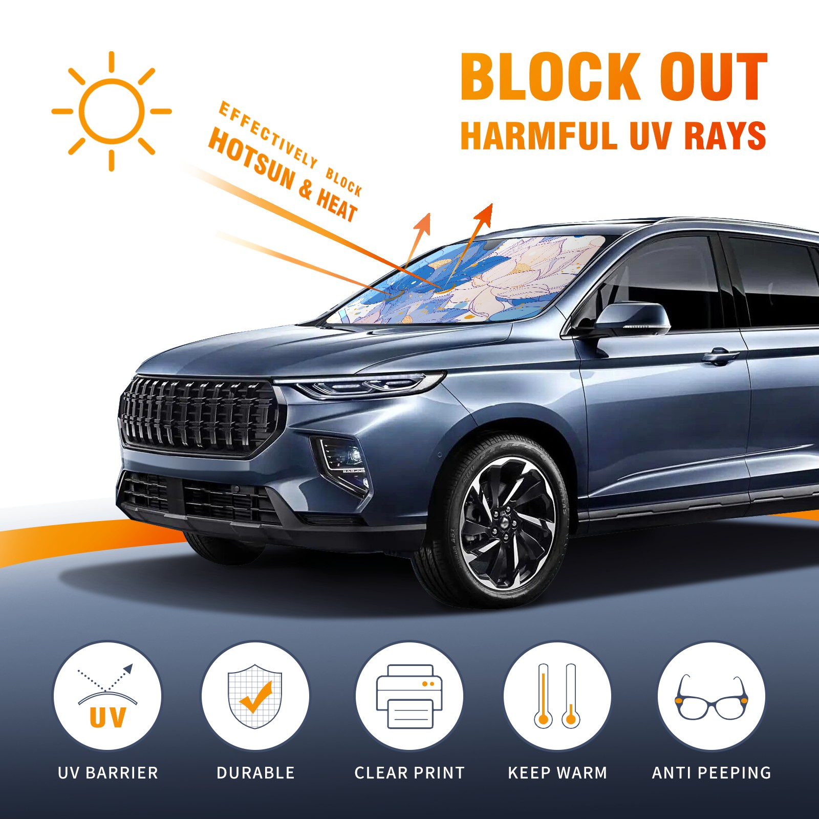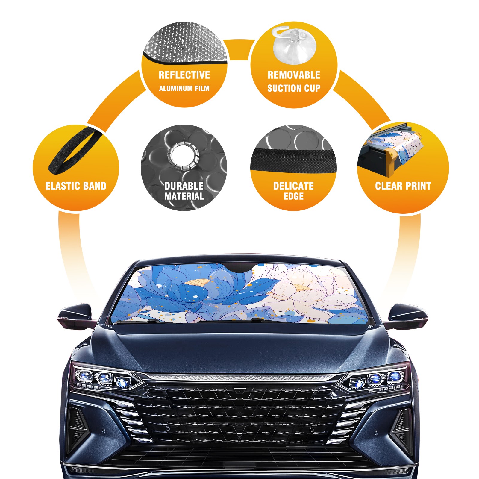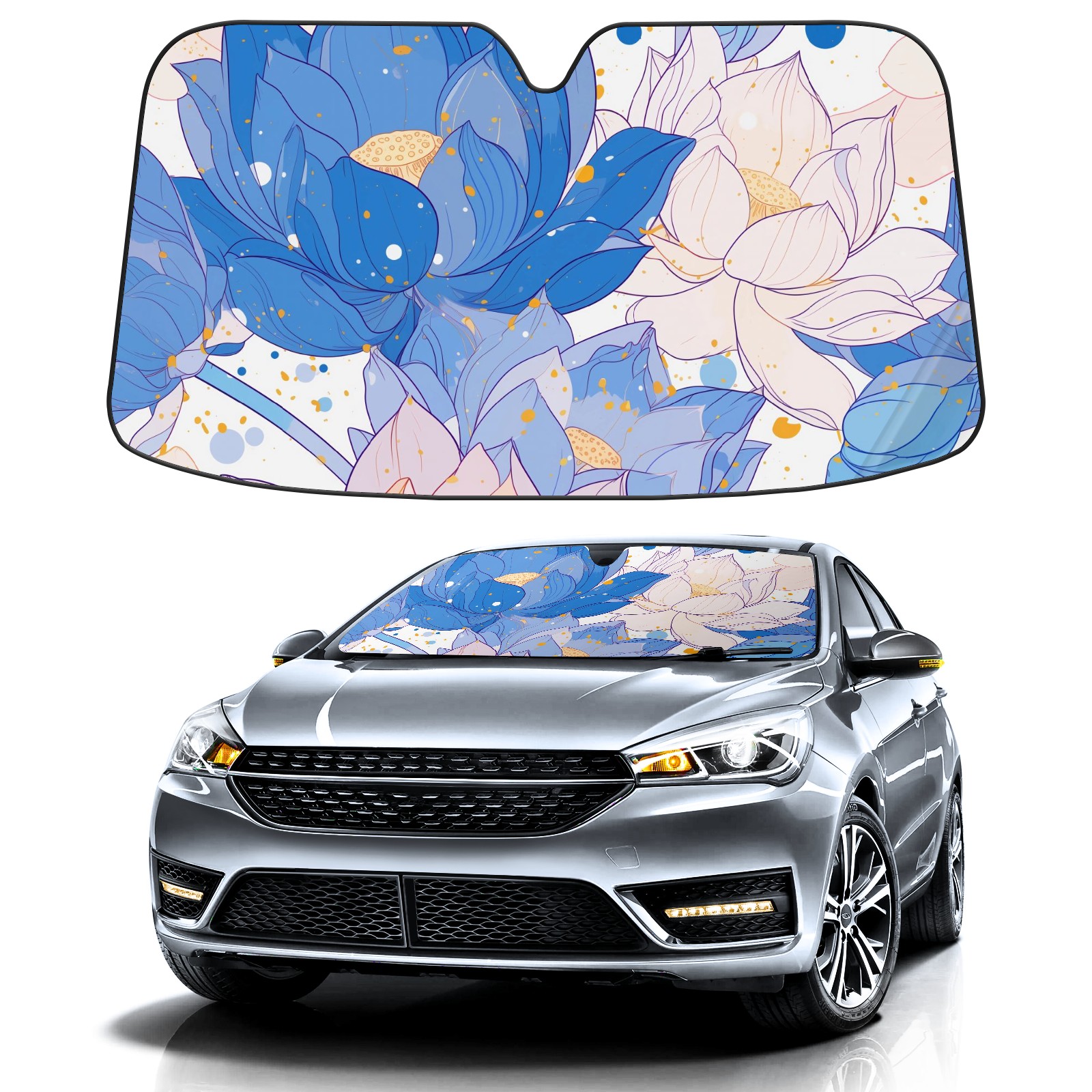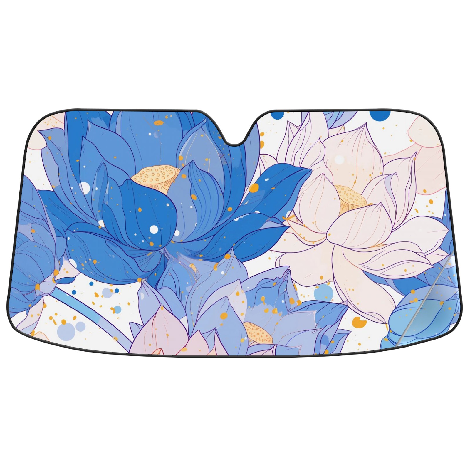 Car Windshield Sun Shade For Front Window Lotus Flower Foldable Vehicle Windshield Car Sun Visor Covers Automotive Window Protector Car Camping Privacy Sun Blocker