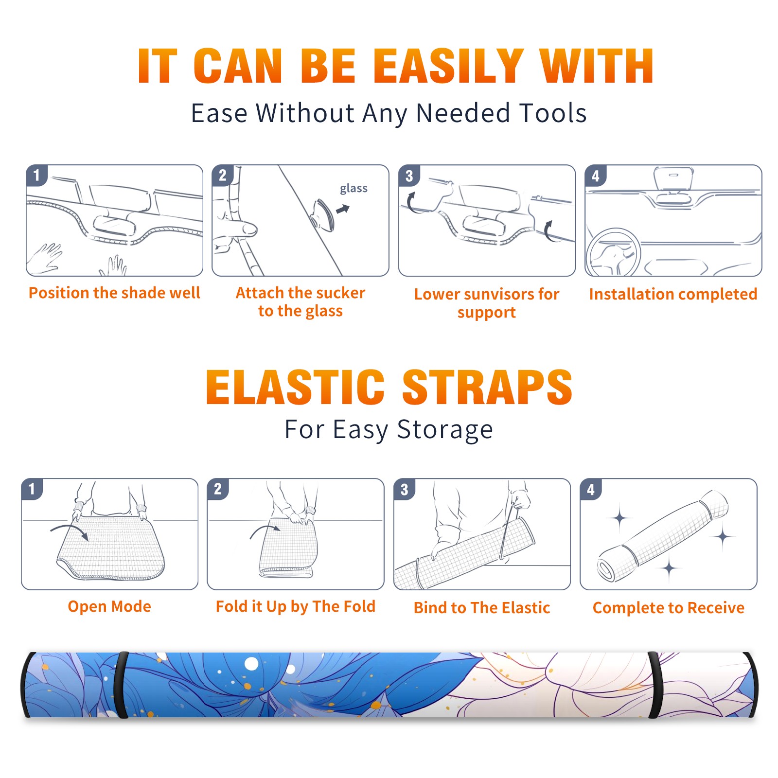 • Diameter /Size 63"L x 33.5"W Made from excellent materials which makes it sturdy and protects the car from the sun. Easy to use and pack. Makes the interior of the car cooler.You can easily stash the sunshade in the storage bag or store long term.It open and closes easy. Also the leather storage bag is durable and easy to put the umbrella back into.This windshield sunshade provides complete coverage and keeps your car interior cool under direct sun. It is easy to open and position under the windshield and around the rear-view mirror. Makes Your Car Easy To Identify, Perfect For Finding Your Car In Crowded Parking Lots And Garages.Great Choice: It Is A Great Gift For Dad, Boyfriend, Brother, Brother And Uncle, Friends, Classmates, Family And So On. Notice: Due To Difference Computer Monitors, The Color Maybe Slightly Different From Picture. As Different Measurement Methods, Measurement Data Will Float Within 2%.I Hope You Understand. If You Have Any Question About The Item Please Do Not Hesitate To Contact Us Immediately And We Will Give You A Satisfactory Reply Within 24 Hours.