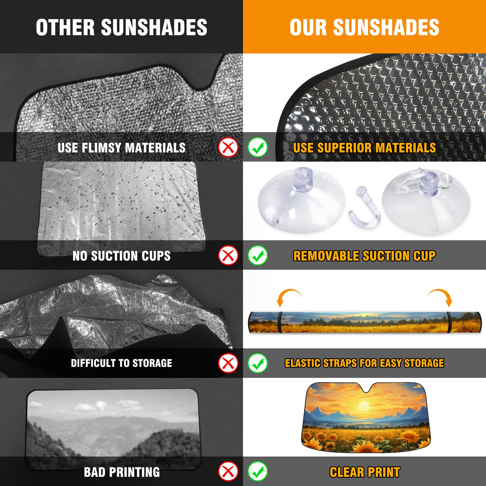 • Diameter /Size 63"L x 33.5"W Made from excellent materials which makes it sturdy and protects the car from the sun. Easy to use and pack. Makes the interior of the car cooler.You can easily stash the sunshade in the storage bag or store long term.It open and closes easy. Also the leather storage bag is durable and easy to put the umbrella back into.This windshield sunshade provides complete coverage and keeps your car interior cool under direct sun. It is easy to open and position under the windshield and around the rear-view mirror. Makes Your Car Easy To Identify, Perfect For Finding Your Car In Crowded Parking Lots And Garages.Great Choice: It Is A Great Gift For Dad, Boyfriend, Brother, Brother And Uncle, Friends, Classmates, Family And So On. Notice: Due To Difference Computer Monitors, The Color Maybe Slightly Different From Picture. As Different Measurement Methods, Measurement Data Will Float Within 2%.I Hope You Understand. If You Have Any Question About The Item Please Do Not Hesitate To Contact Us Immediately And We Will Give You A Satisfactory Reply Within 24 Hours.