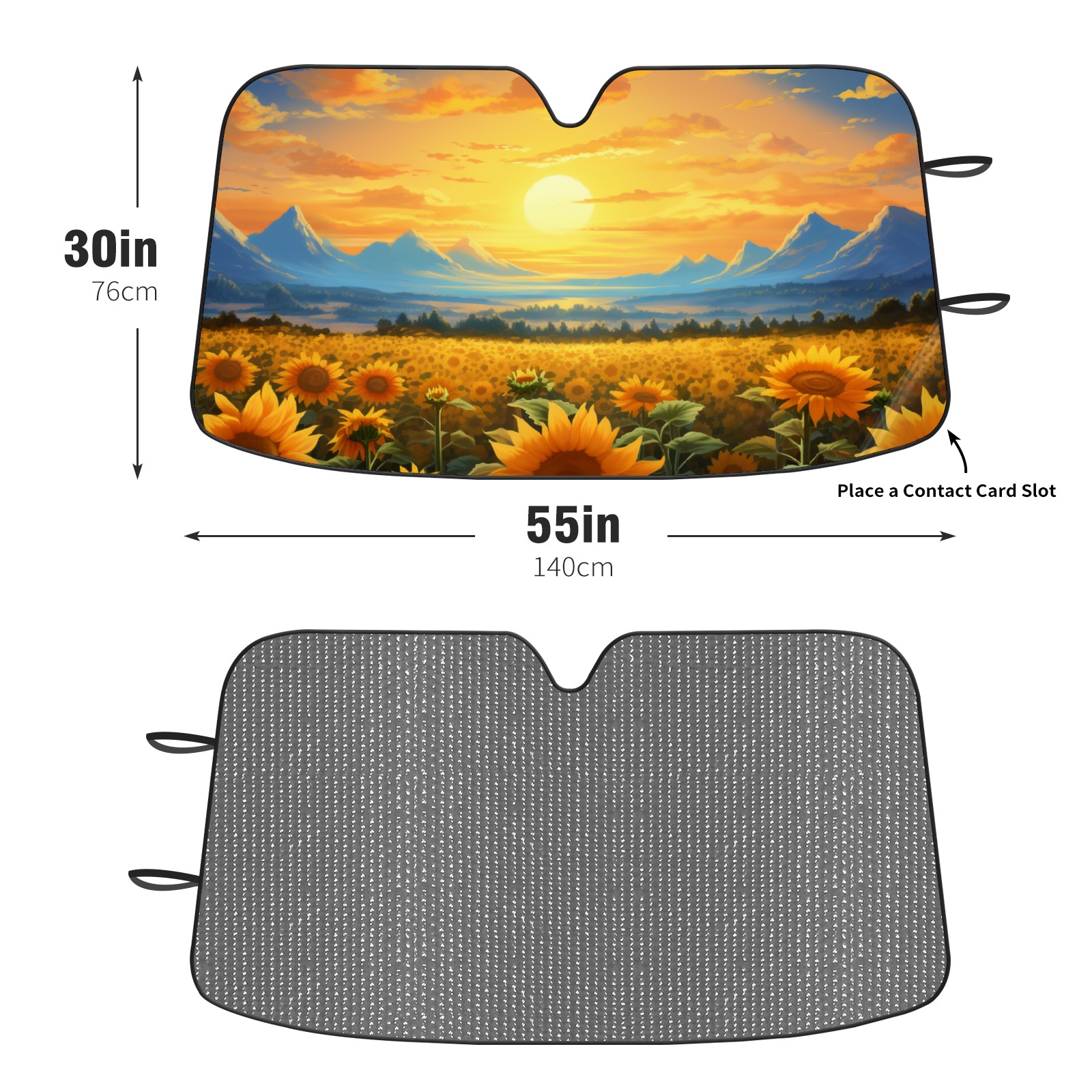 Diameter /Size 63"L x 33.5"W Made from excellent materials which makes it sturdy and protects the car from the sun. Easy to use and pack. Makes the interior of the car cooler.You can easily stash the sunshade in the storage bag or store long term.It open and closes easy. Also the leather storage bag is durable and easy to put the umbrella back into.This windshield sunshade provides complete coverage and keeps your car interior cool under direct sun. It is easy to open and position under the windshield and around the rear-view mirror. Makes Your Car Easy To Identify, Perfect For Finding Your Car In Crowded Parking Lots And Garages.Great Choice: It Is A Great Gift For Dad, Boyfriend, Brother, Brother And Uncle, Friends, Classmates, Family And So On. Notice: Due To Difference Computer Monitors, The Color Maybe Slightly Different From Picture. As Different Measurement Methods, Measurement Data Will Float Within 2%.I Hope You Understand. If You Have Any Question About The Item Please Do Not Hesitate To Contact Us Immediately And We Will Give You A Satisfactory Reply Within 24 Hours.
