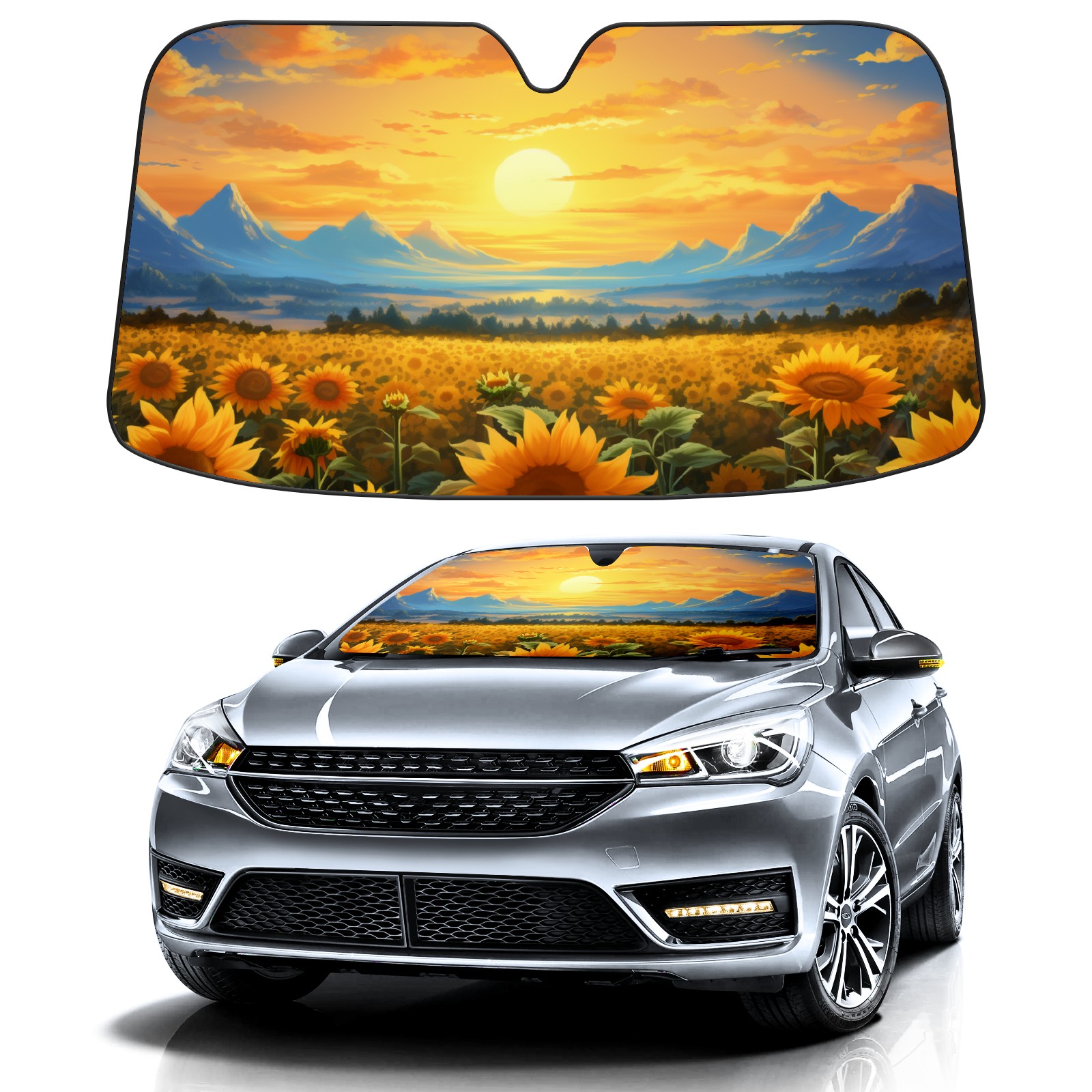 Car Windshield Sun Shade For Front Window Sunflower Foldable Vehicle Windshield Car Sun Visor Covers Automotive Window Protector Car Camping Privacy Sun Blocker