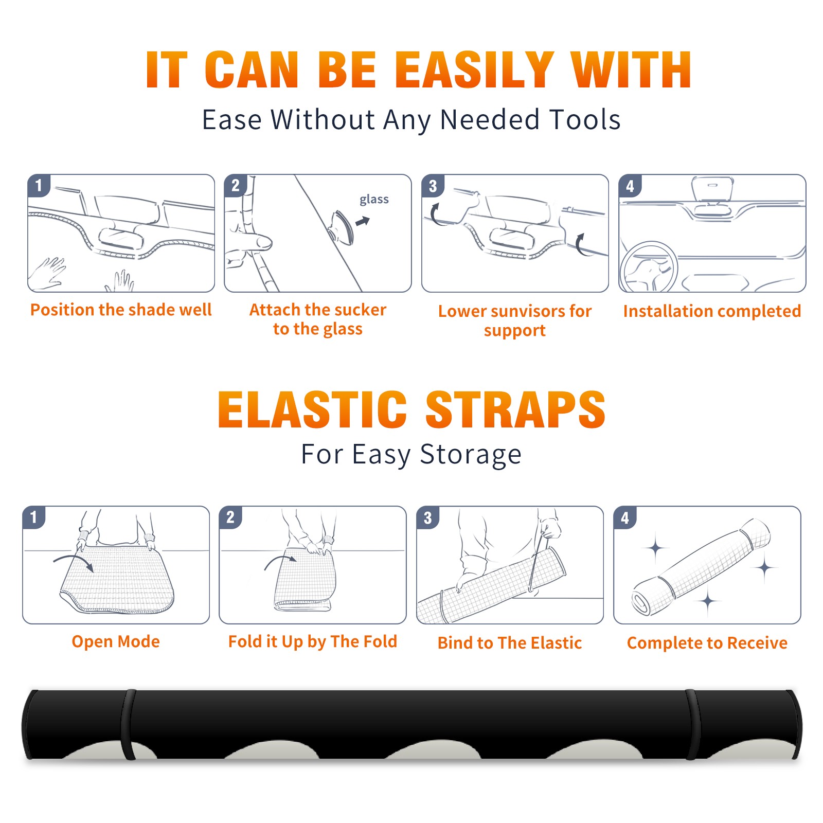 • Diameter /Size 63"L x 33.5"W Made from excellent materials which makes it sturdy and protects the car from the sun. Easy to use and pack. Makes the interior of the car cooler.You can easily stash the sunshade in the storage bag or store long term.It open and closes easy. Also the leather storage bag is durable and easy to put the umbrella back into.This windshield sunshade provides complete coverage and keeps your car interior cool under direct sun. It is easy to open and position under the windshield and around the rear-view mirror. Makes Your Car Easy To Identify, Perfect For Finding Your Car In Crowded Parking Lots And Garages.Great Choice: It Is A Great Gift For Dad, Boyfriend, Brother, Brother And Uncle, Friends, Classmates, Family And So On. Notice: Due To Difference Computer Monitors, The Color Maybe Slightly Different From Picture. As Different Measurement Methods, Measurement Data Will Float Within 2%.I Hope You Understand. If You Have Any Question About The Item Please Do Not Hesitate To Contact Us Immediately And We Will Give You A Satisfactory Reply Within 24 Hours.