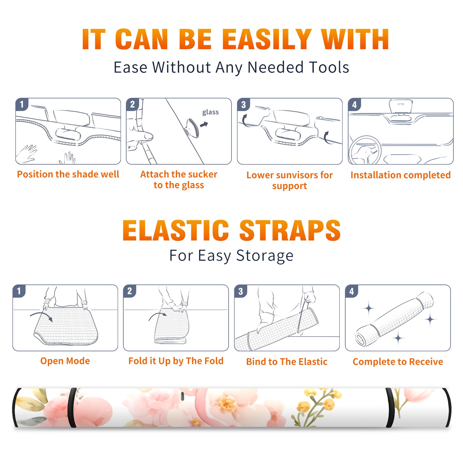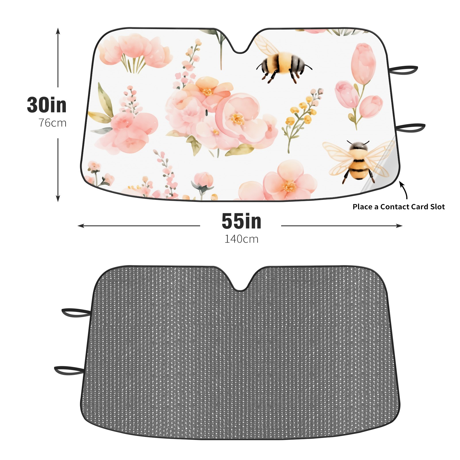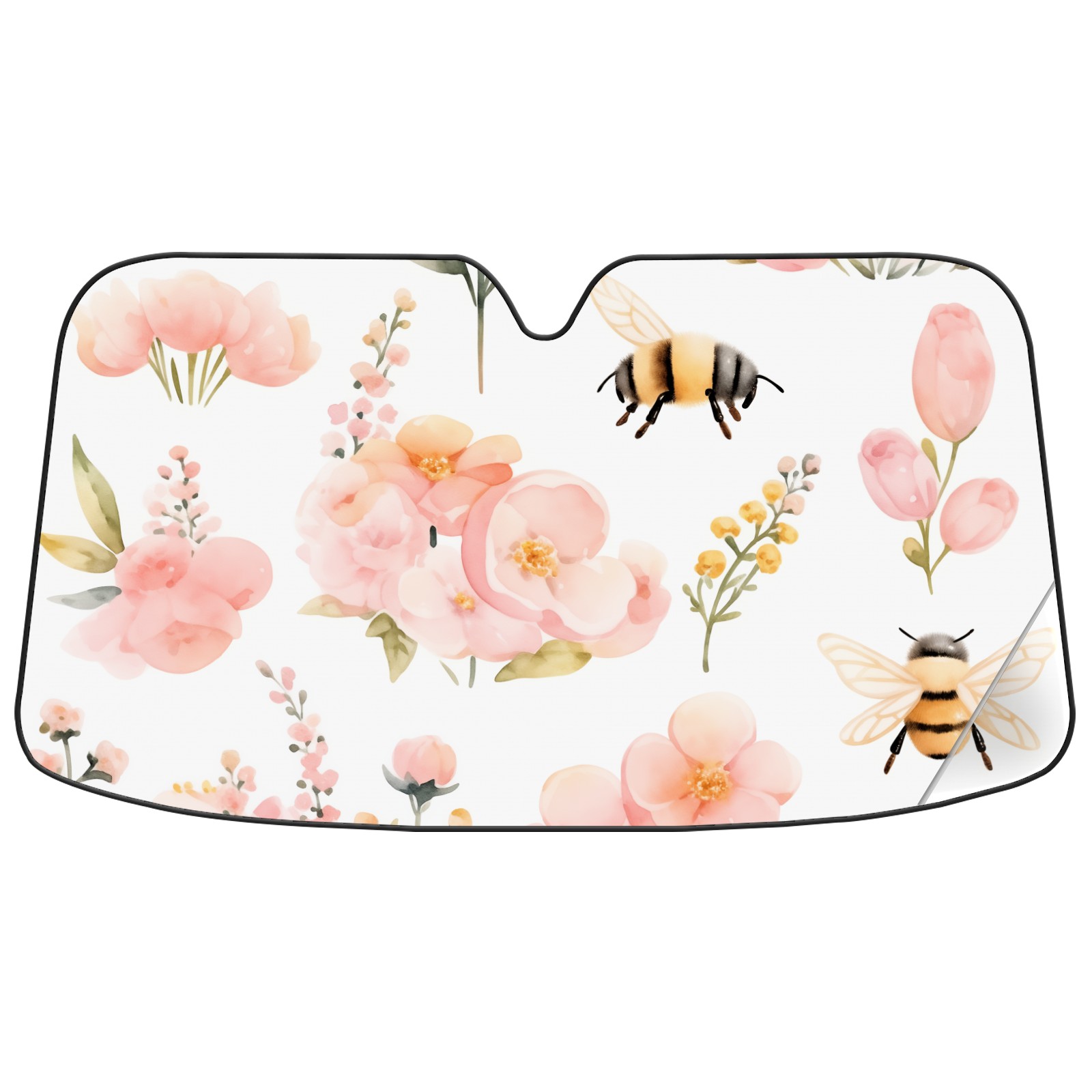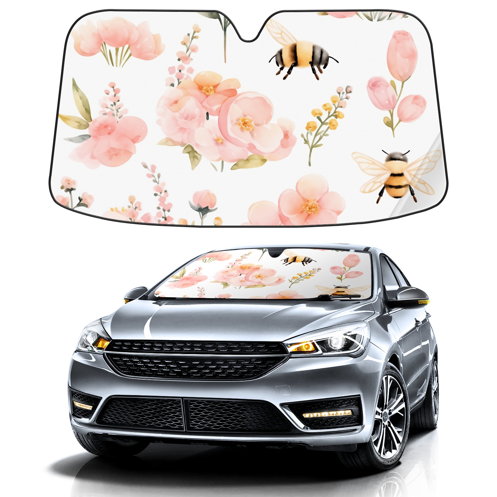 Car Windshield Sun Shade For Front Window Pink Flower Bee Foldable Vehicle Windshield Car Sun Visor Covers Automotive Window Protector Car Camping Privacy Sun Blocker