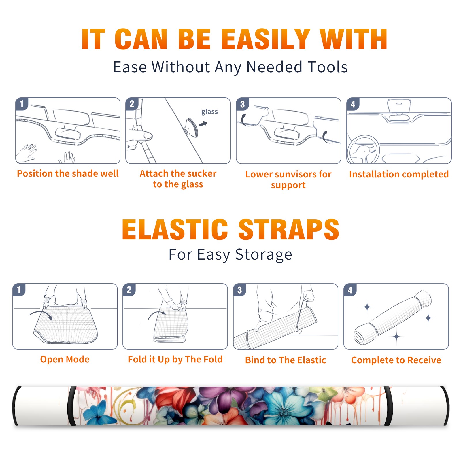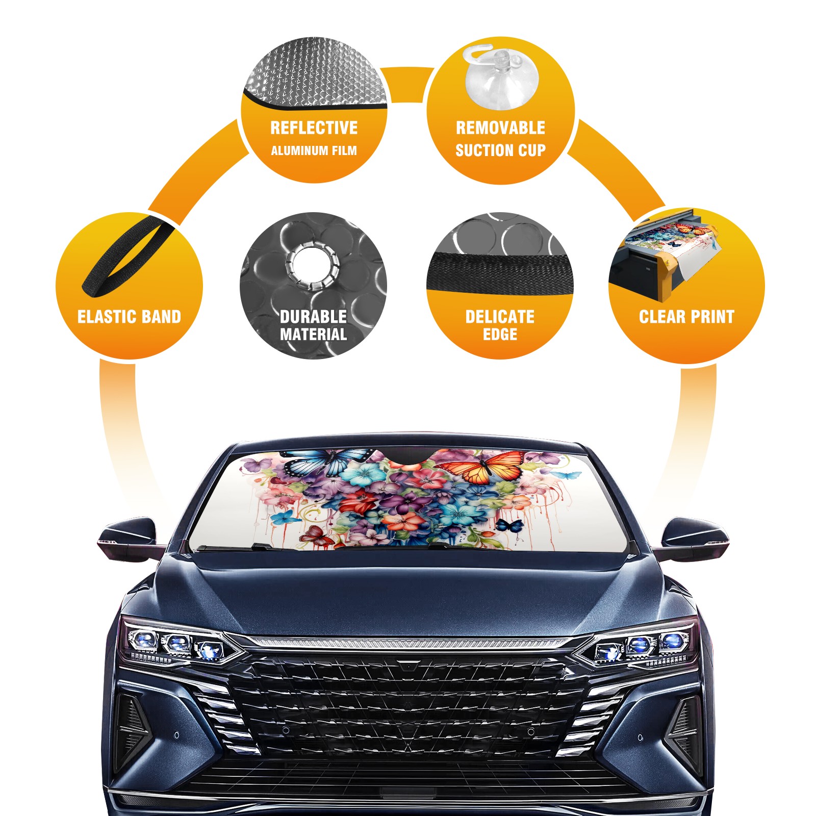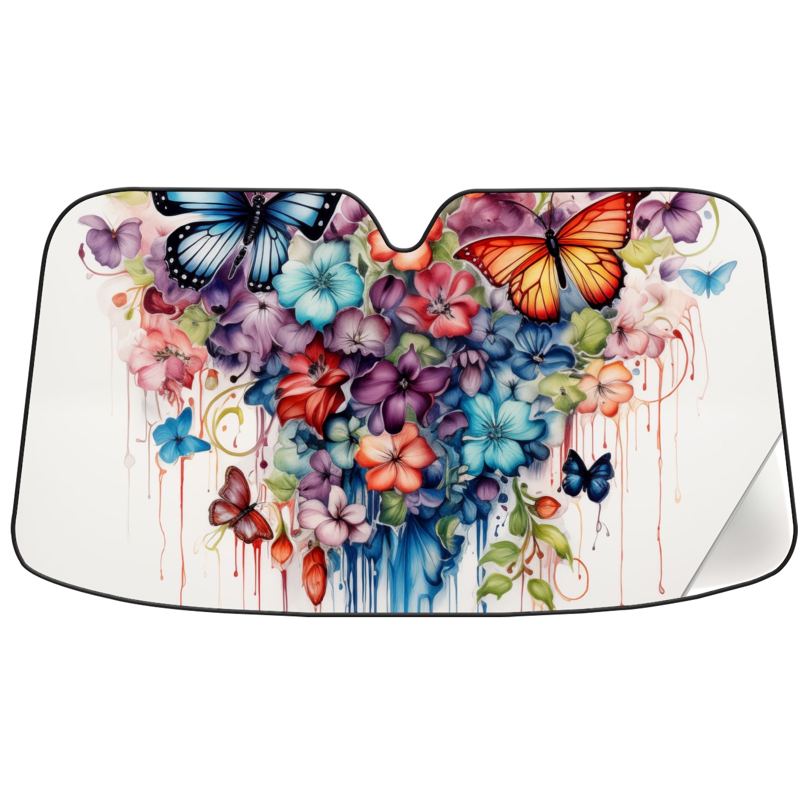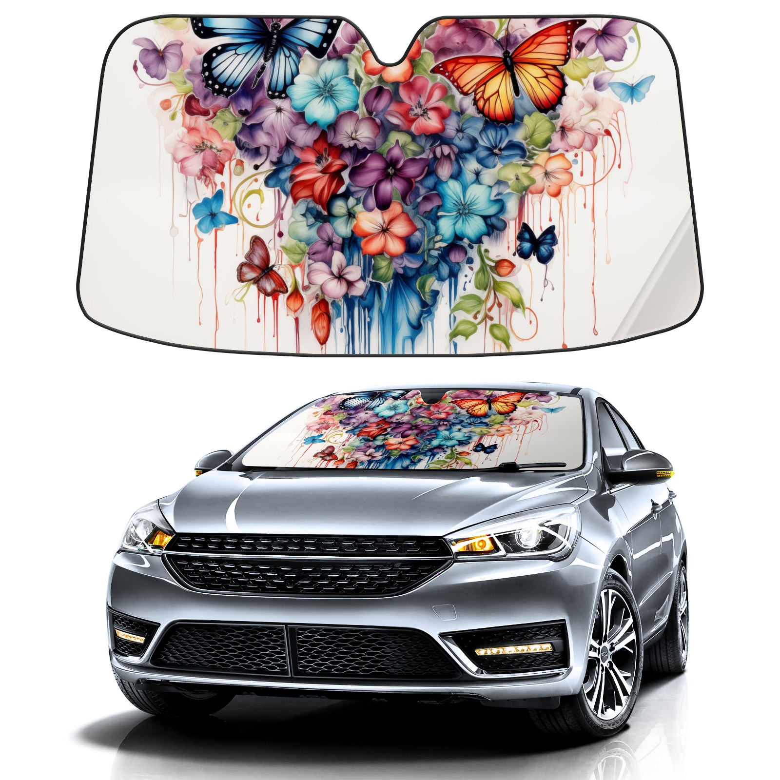 Car Windshield Sun Shade For Front Window Colorful Flower Butterfly Foldable Vehicle Windshield Car Sun Visor Covers Automotive Window Protector Car Camping Privacy Sun Blocker