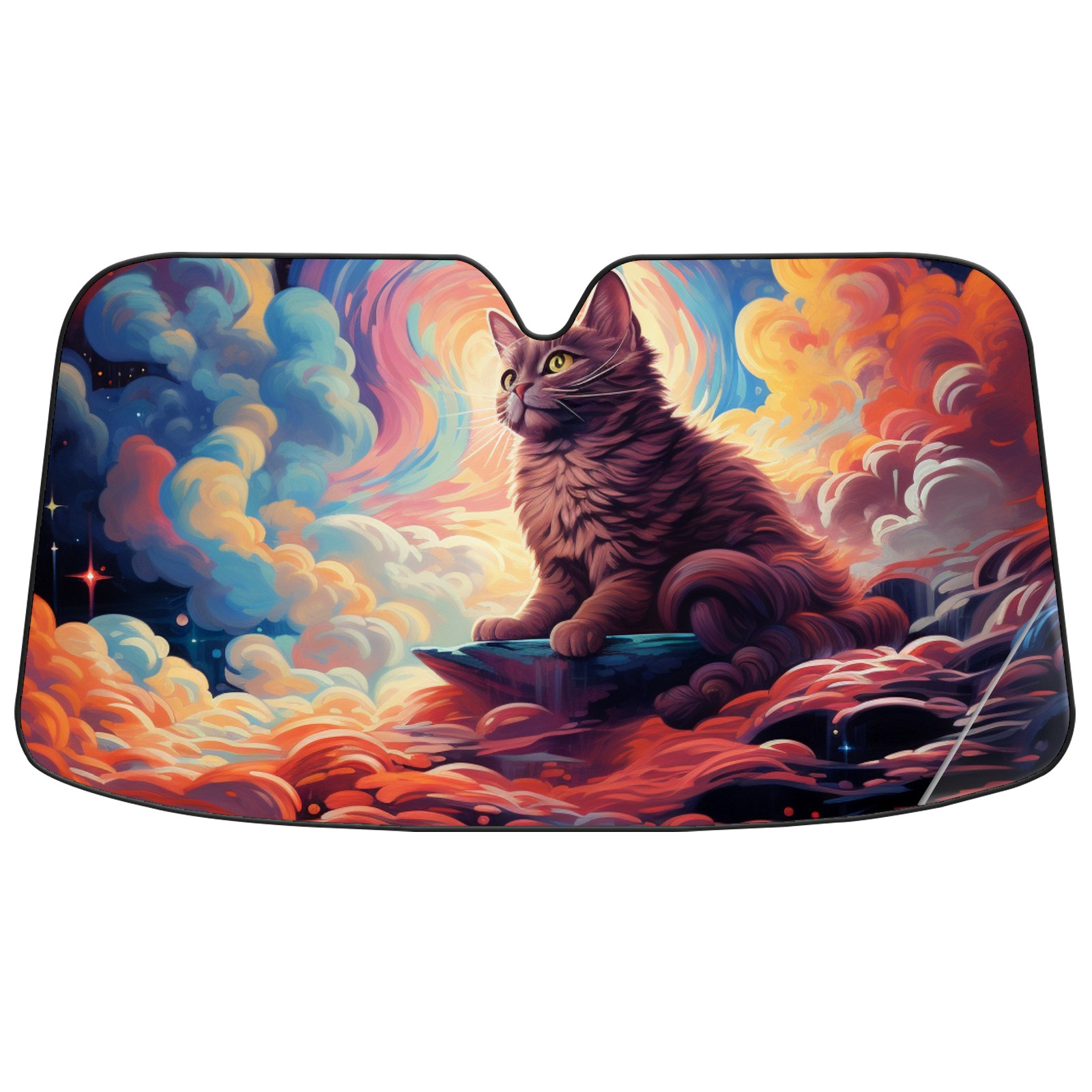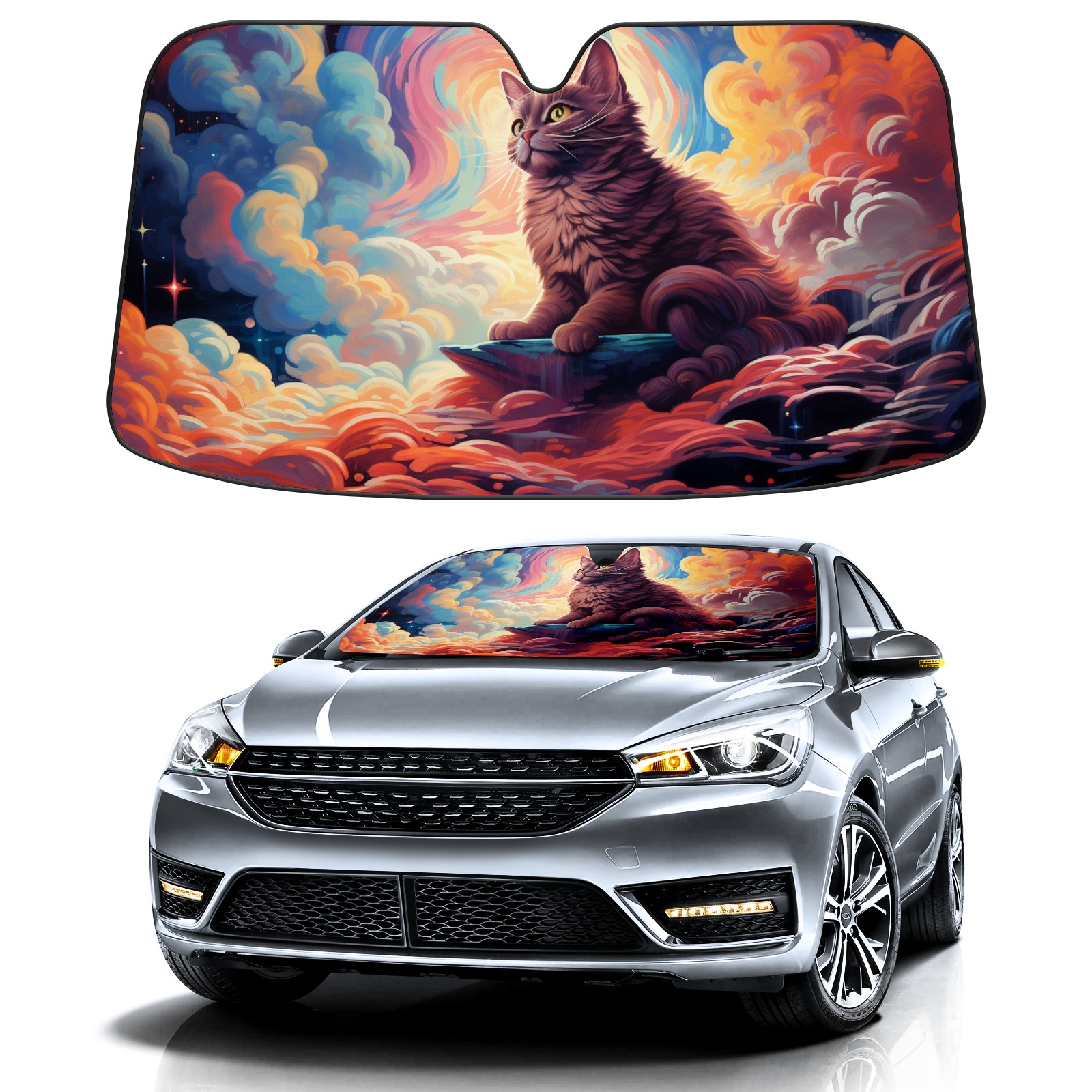 Car Windshield Sun Shade For Front Window Colorful Starry Sky Cat Clouds (10) Foldable Vehicle Windshield Car Sun Visor Covers Automotive Window Protector Car Camping Privacy Sun Blocker