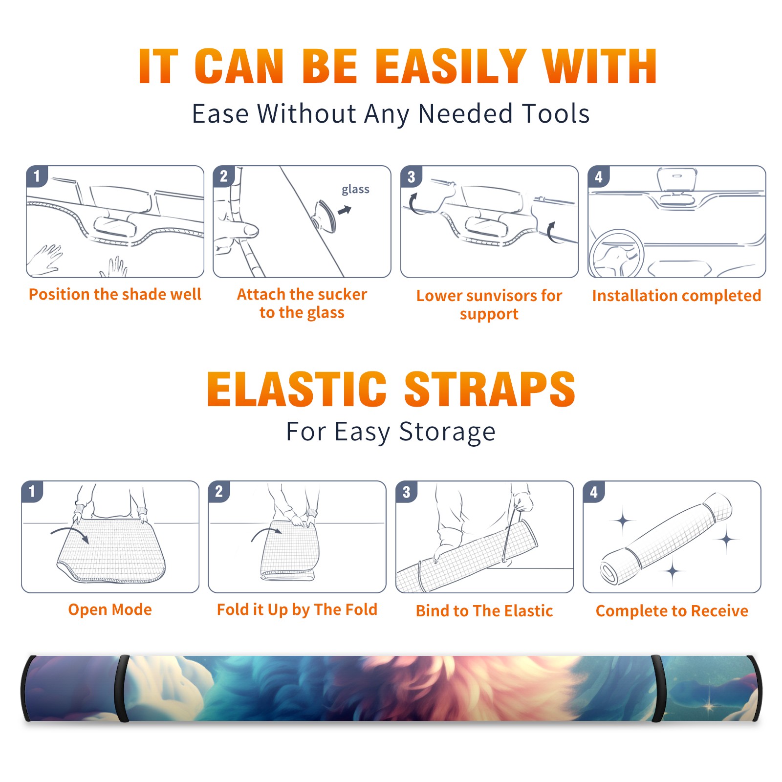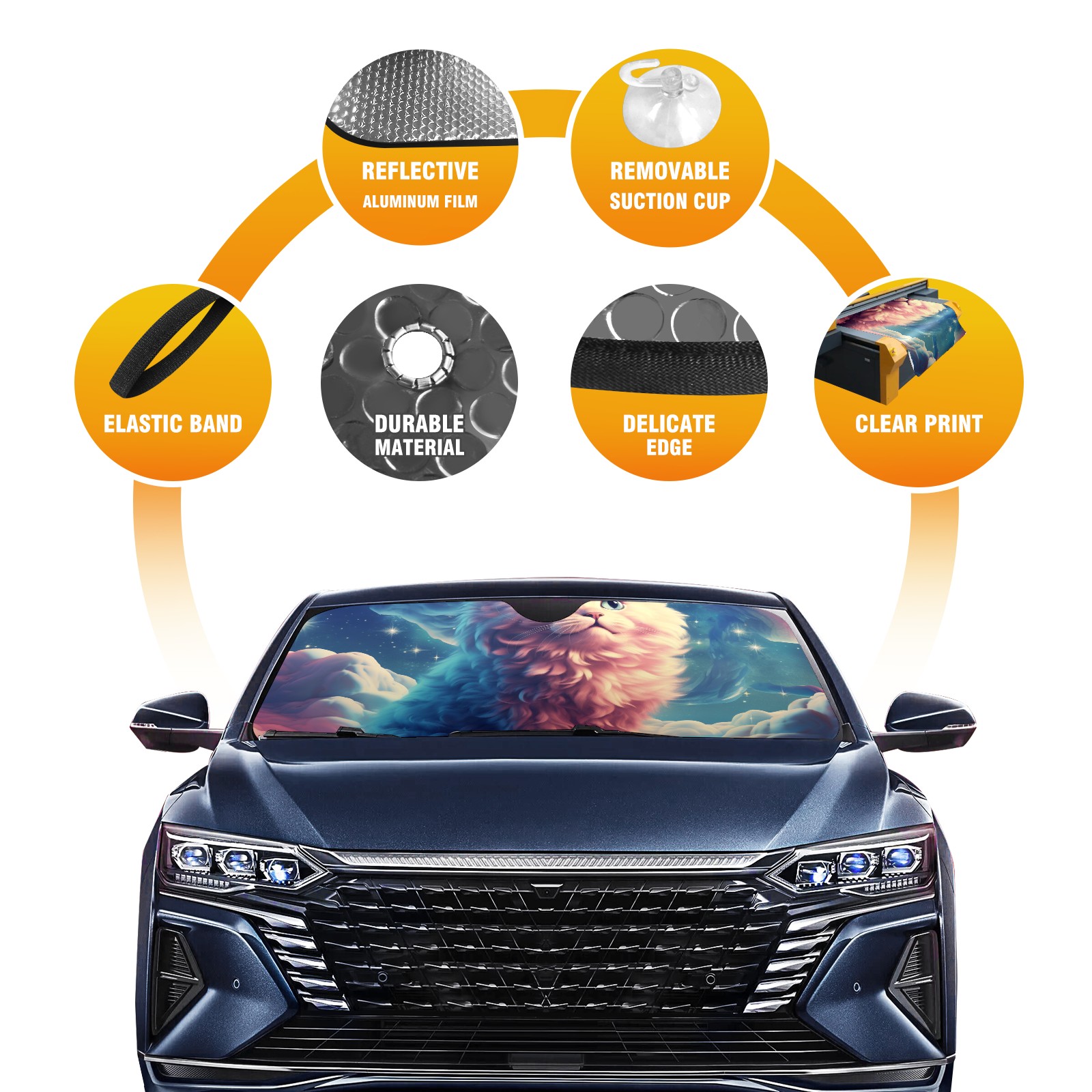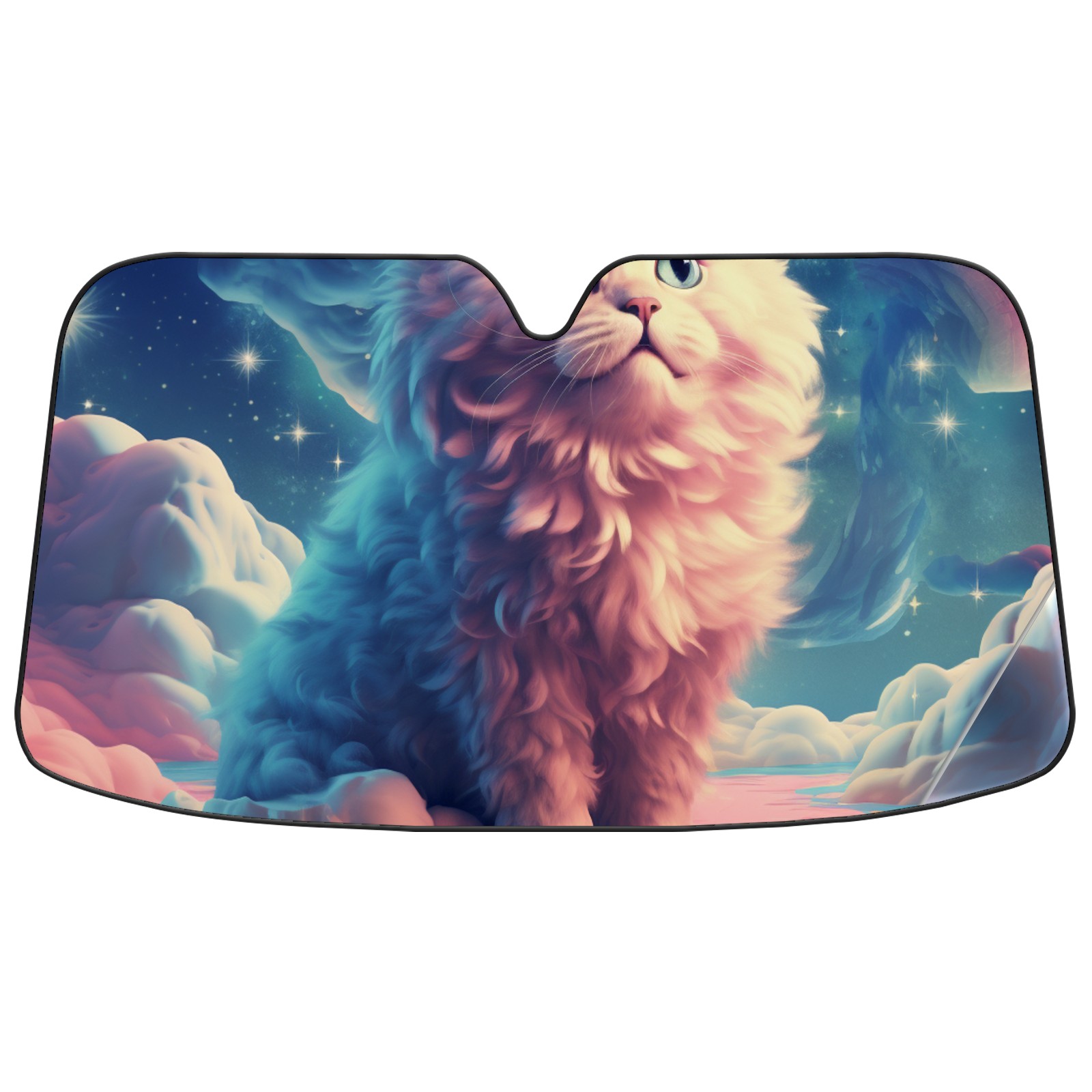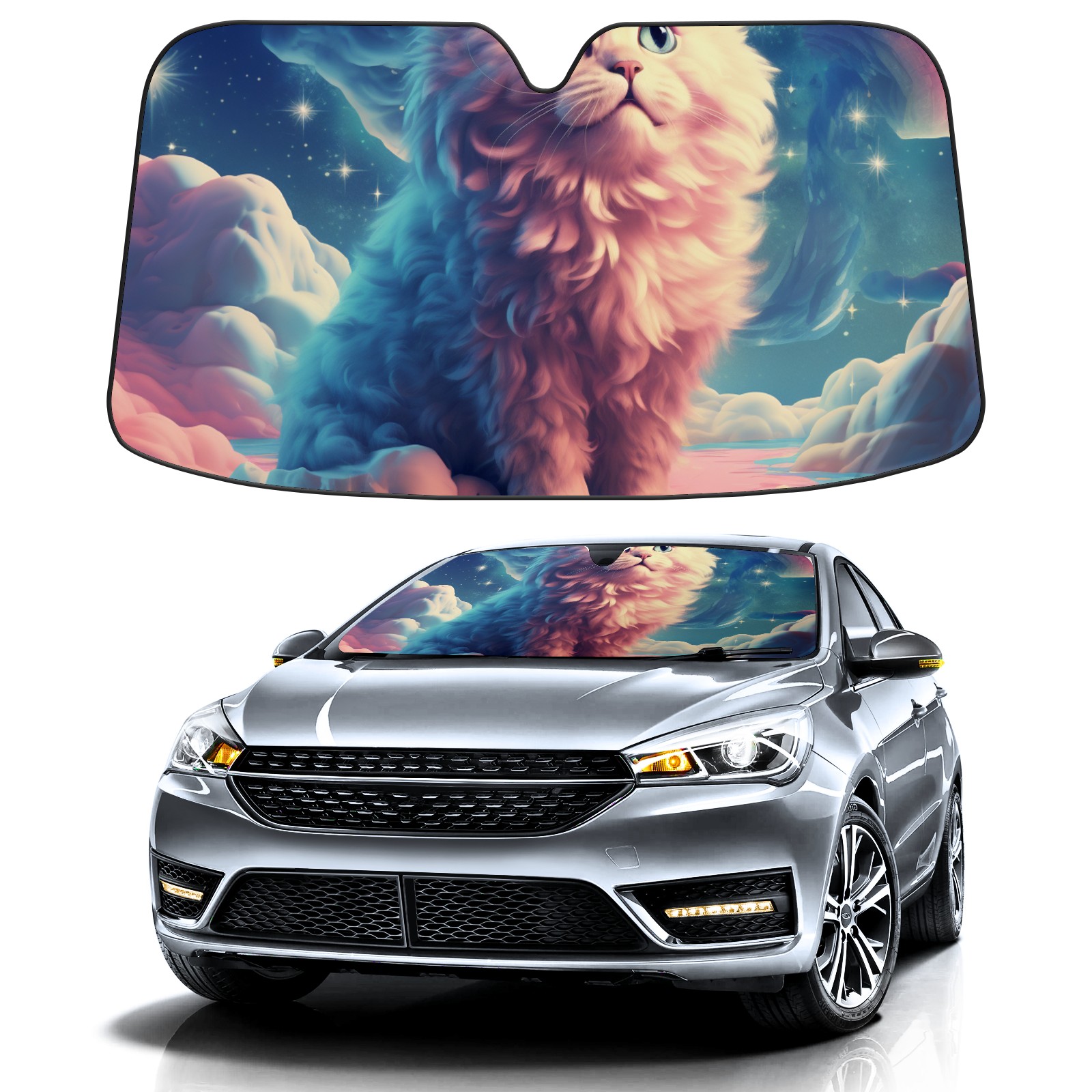 Car Windshield Sun Shade For Front Window Colorful Starry Sky Cat Clouds (8) Foldable Vehicle Windshield Car Sun Visor Covers Automotive Window Protector Car Camping Privacy Sun Blocker