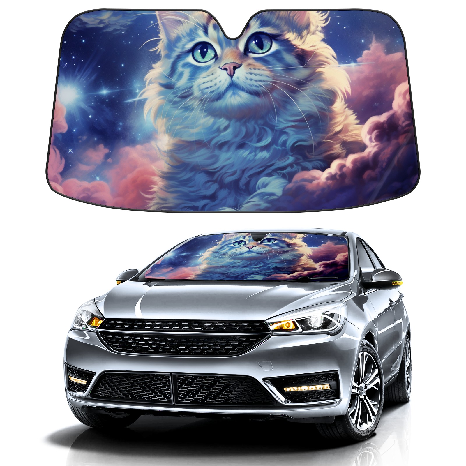 Car Windshield Sun Shade For Front Window Colorful Starry Sky Cat Clouds (3) Foldable Vehicle Windshield Car Sun Visor Covers Automotive Window Protector Car Camping Privacy Sun Blocker