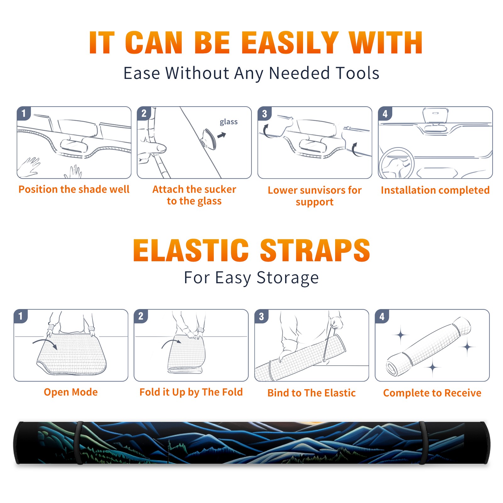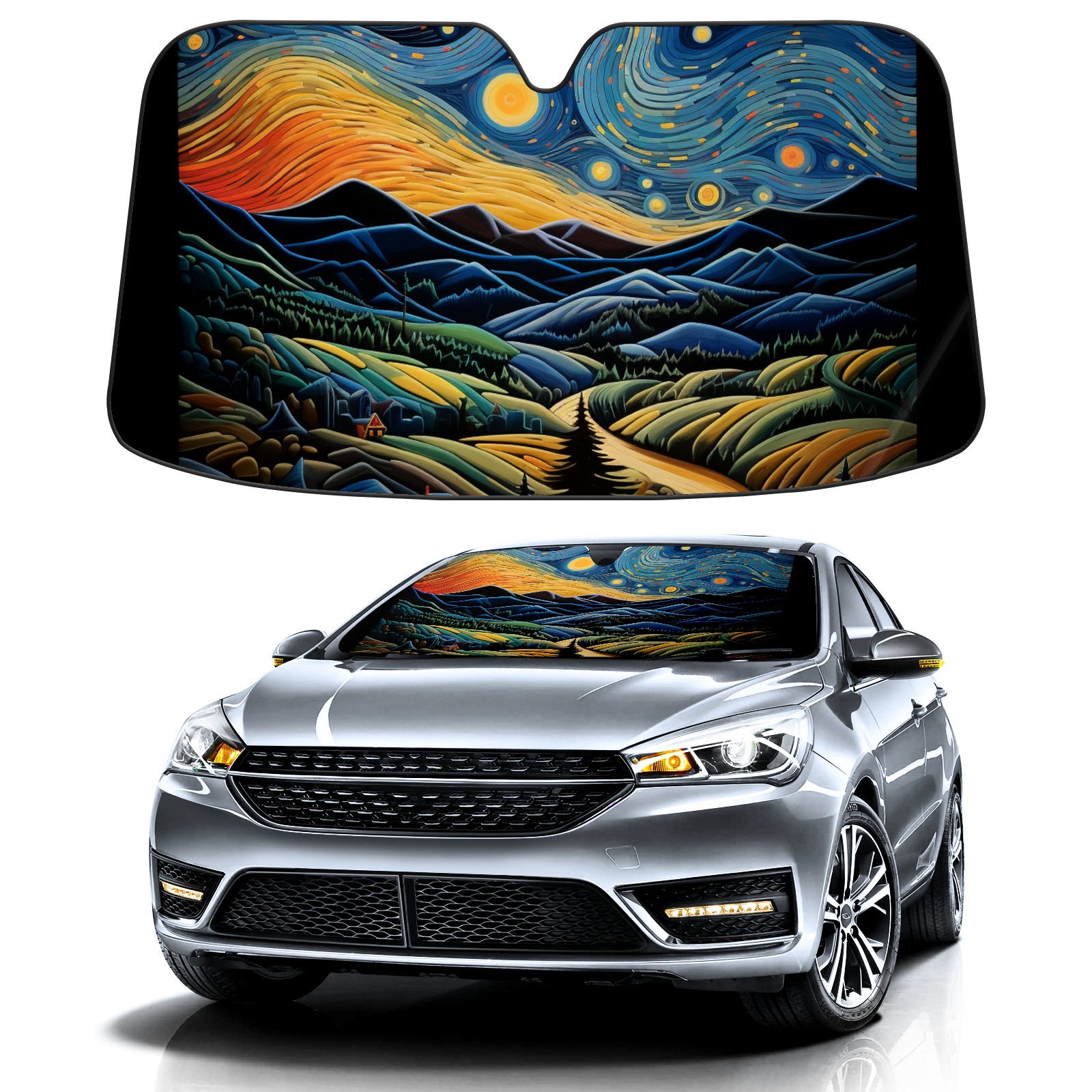 Car Windshield Sun Shade For Front Window Starry Sky And Mountains Foldable Vehicle Windshield Car Sun Visor Covers Automotive Window Protector Car Camping Privacy Sun Blocker