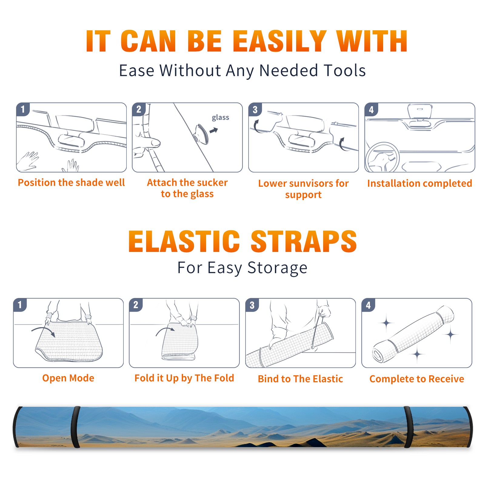• Diameter /Size 63"L x 33.5"W Made from excellent materials which makes it sturdy and protects the car from the sun. Easy to use and pack. Makes the interior of the car cooler.You can easily stash the sunshade in the storage bag or store long term.It open and closes easy. Also the leather storage bag is durable and easy to put the umbrella back into.This windshield sunshade provides complete coverage and keeps your car interior cool under direct sun. It is easy to open and position under the windshield and around the rear-view mirror. Makes Your Car Easy To Identify, Perfect For Finding Your Car In Crowded Parking Lots And Garages.Great Choice: It Is A Great Gift For Dad, Boyfriend, Brother, Brother And Uncle, Friends, Classmates, Family And So On. Notice: Due To Difference Computer Monitors, The Color Maybe Slightly Different From Picture. As Different Measurement Methods, Measurement Data Will Float Within 2%.I Hope You Understand. If You Have Any Question About The Item Please Do Not Hesitate To Contact Us Immediately And We Will Give You A Satisfactory Reply Within 24 Hours.