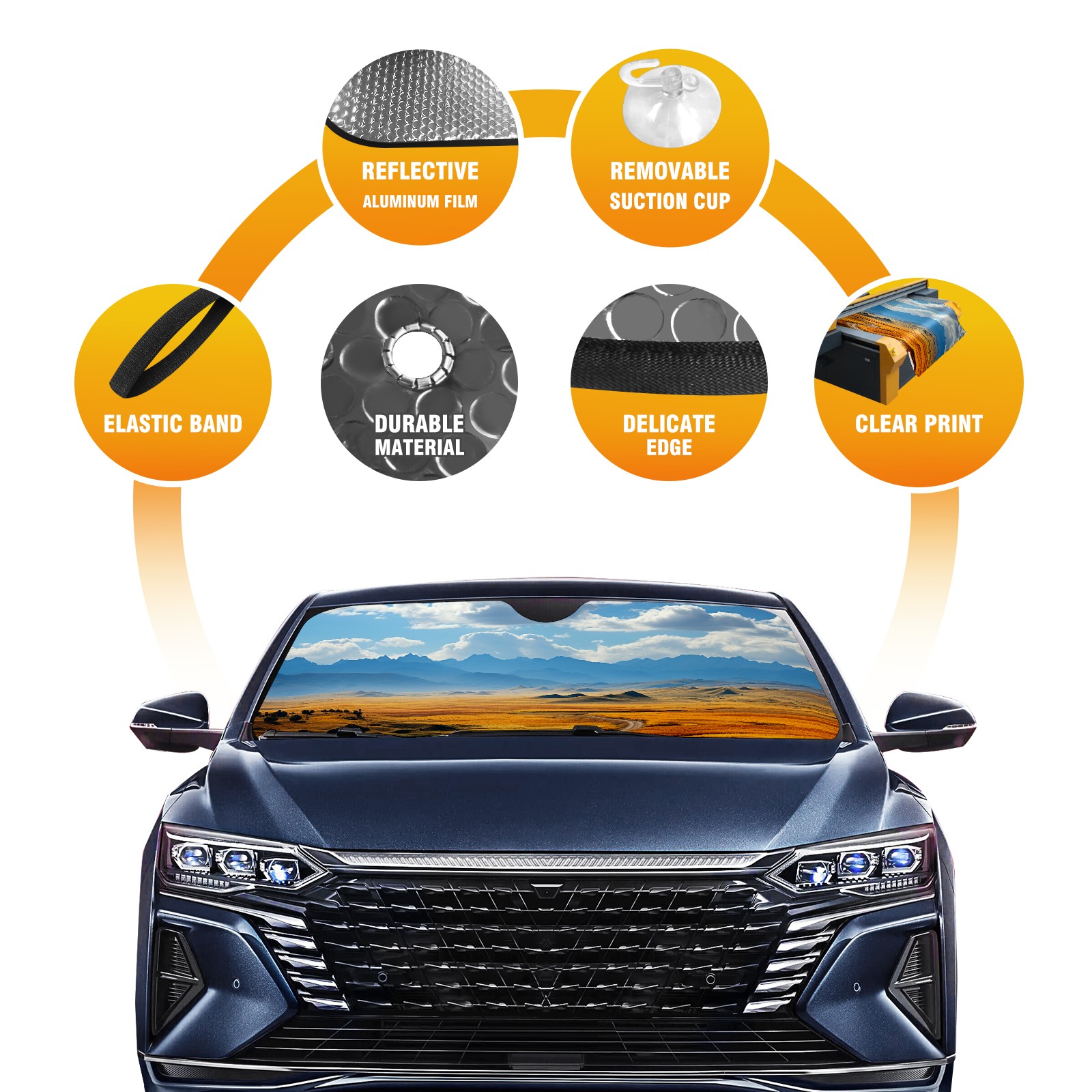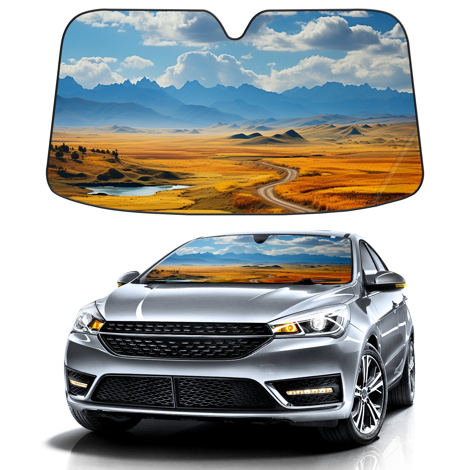 Car Windshield Sun Shade For Front Window Bright Blue Sky Foldable Vehicle Windshield Car Sun Visor Covers Automotive Window Protector Car Camping Privacy Sun Blocker