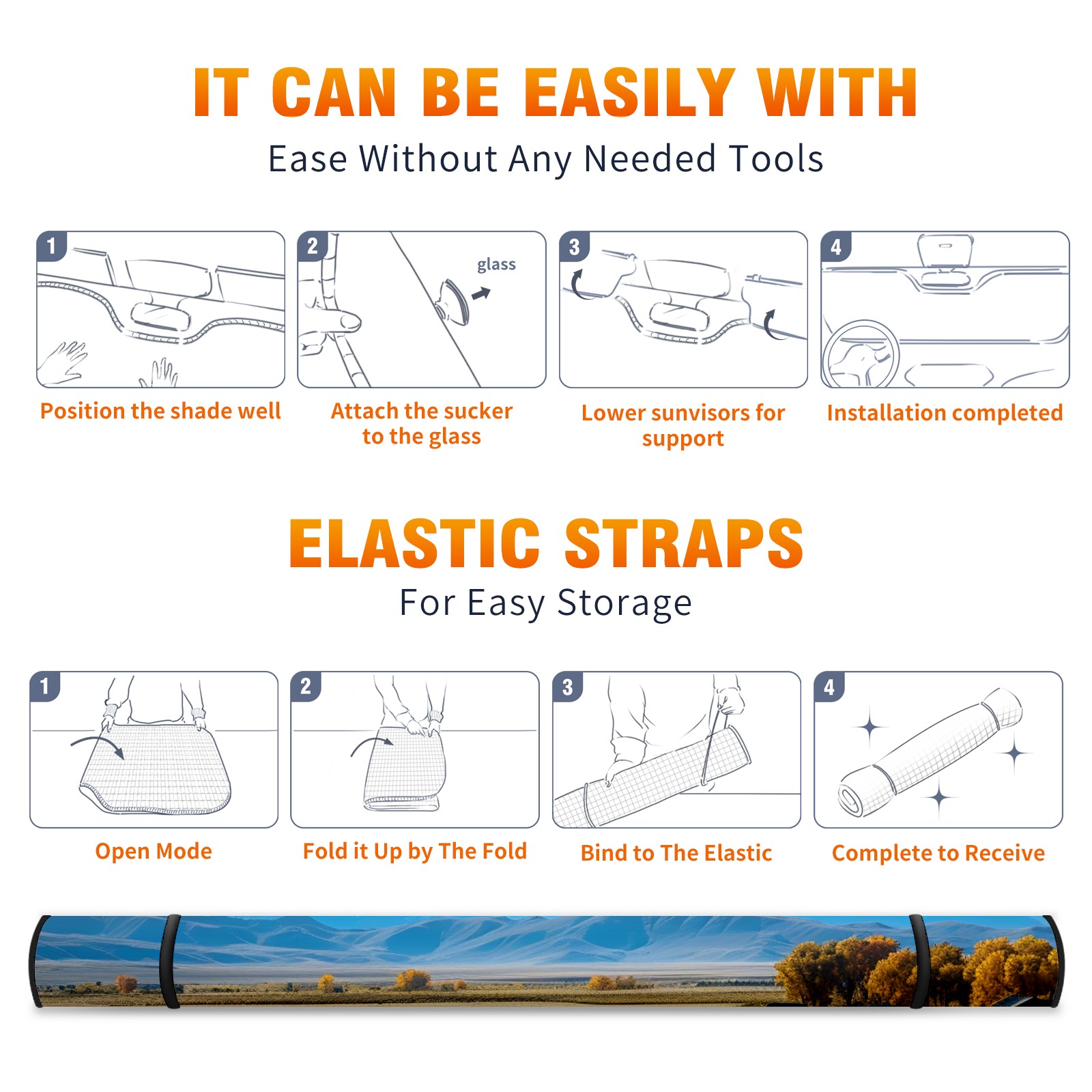 • Diameter /Size 63"L x 33.5"W Made from excellent materials which makes it sturdy and protects the car from the sun. Easy to use and pack. Makes the interior of the car cooler.You can easily stash the sunshade in the storage bag or store long term.It open and closes easy. Also the leather storage bag is durable and easy to put the umbrella back into.This windshield sunshade provides complete coverage and keeps your car interior cool under direct sun. It is easy to open and position under the windshield and around the rear-view mirror. Makes Your Car Easy To Identify, Perfect For Finding Your Car In Crowded Parking Lots And Garages.Great Choice: It Is A Great Gift For Dad, Boyfriend, Brother, Brother And Uncle, Friends, Classmates, Family And So On. Notice: Due To Difference Computer Monitors, The Color Maybe Slightly Different From Picture. As Different Measurement Methods, Measurement Data Will Float Within 2%.I Hope You Understand. If You Have Any Question About The Item Please Do Not Hesitate To Contact Us Immediately And We Will Give You A Satisfactory Reply Within 24 Hours.