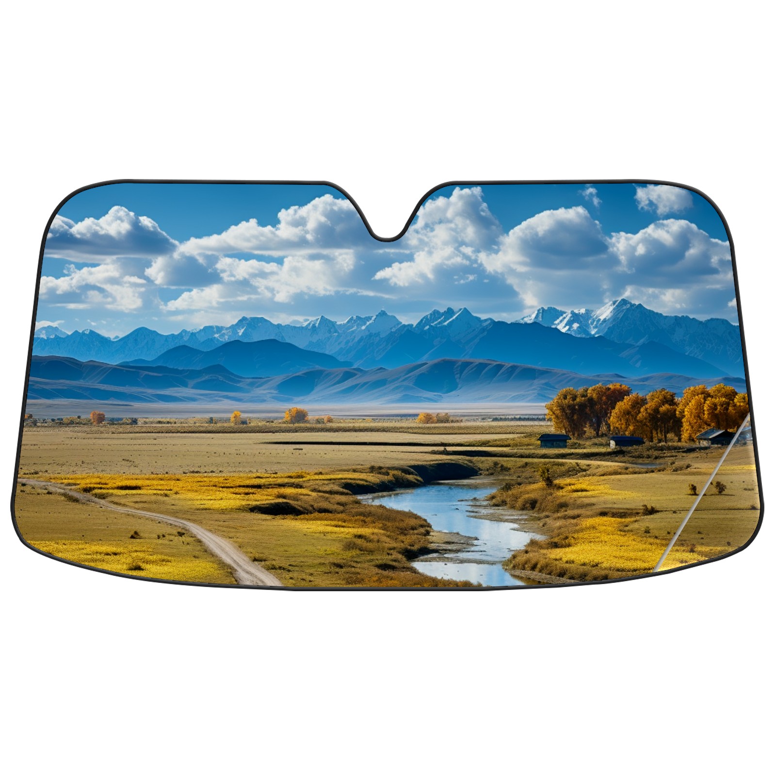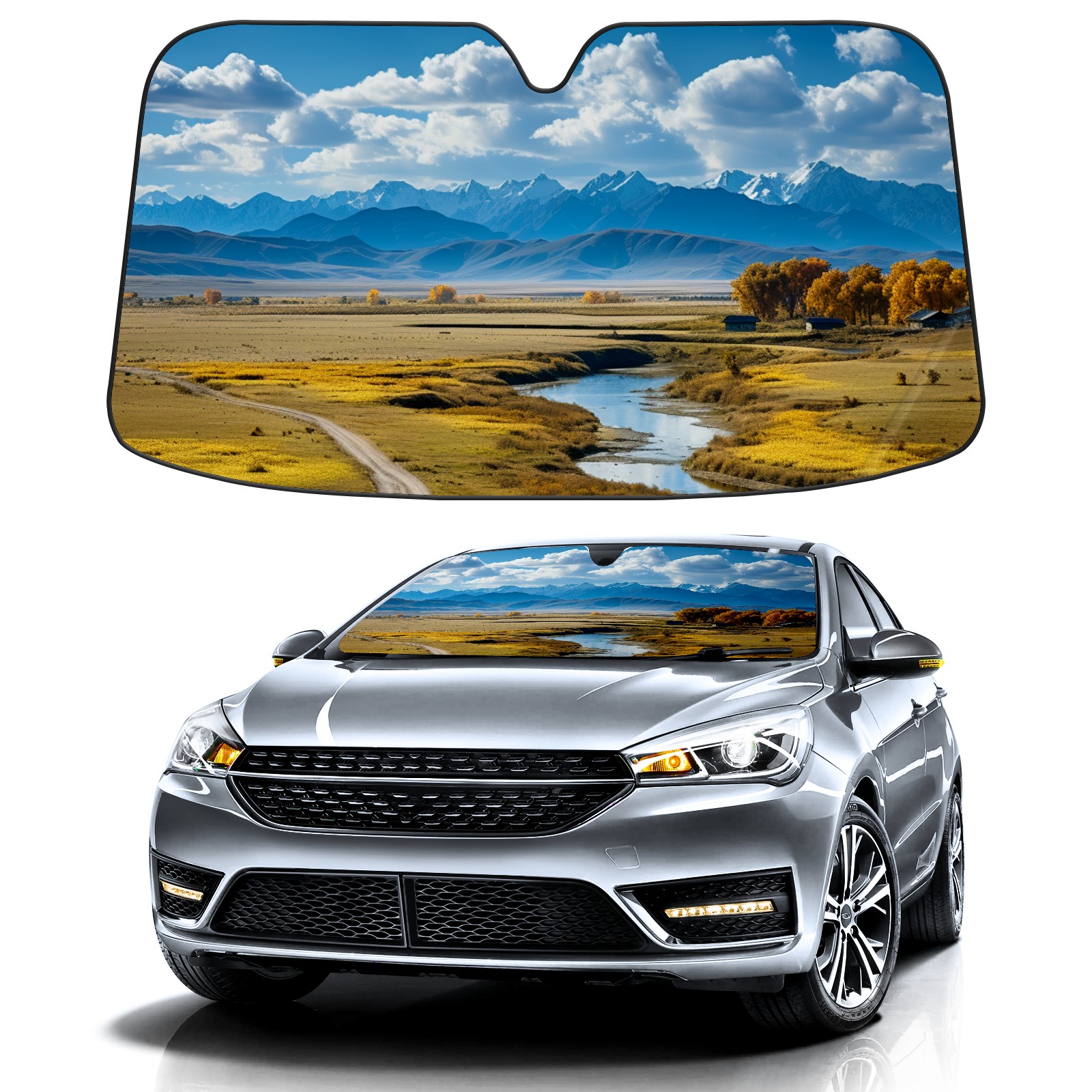 Car Windshield Sun Shade For Front Window Bright Blue Sky. Foldable Vehicle Windshield Car Sun Visor Covers Automotive Window Protector Car Camping Privacy Sun Blocker