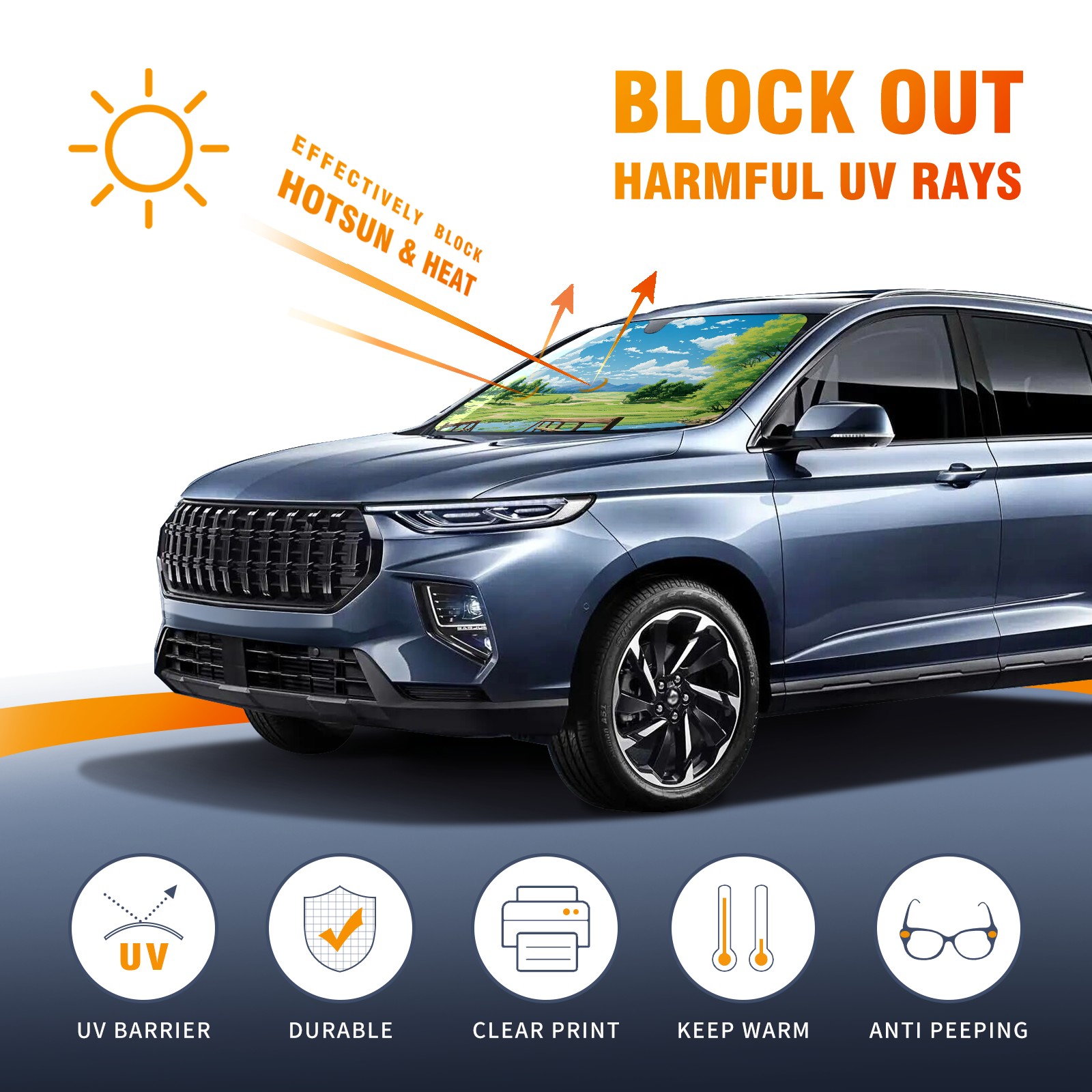 Car Windshield Sun Shade For Front Window Blue Sky White Foldable Vehicle Windshield Car Sun Visor Covers Automotive Window Protector Car Camping Privacy Sun Blocker