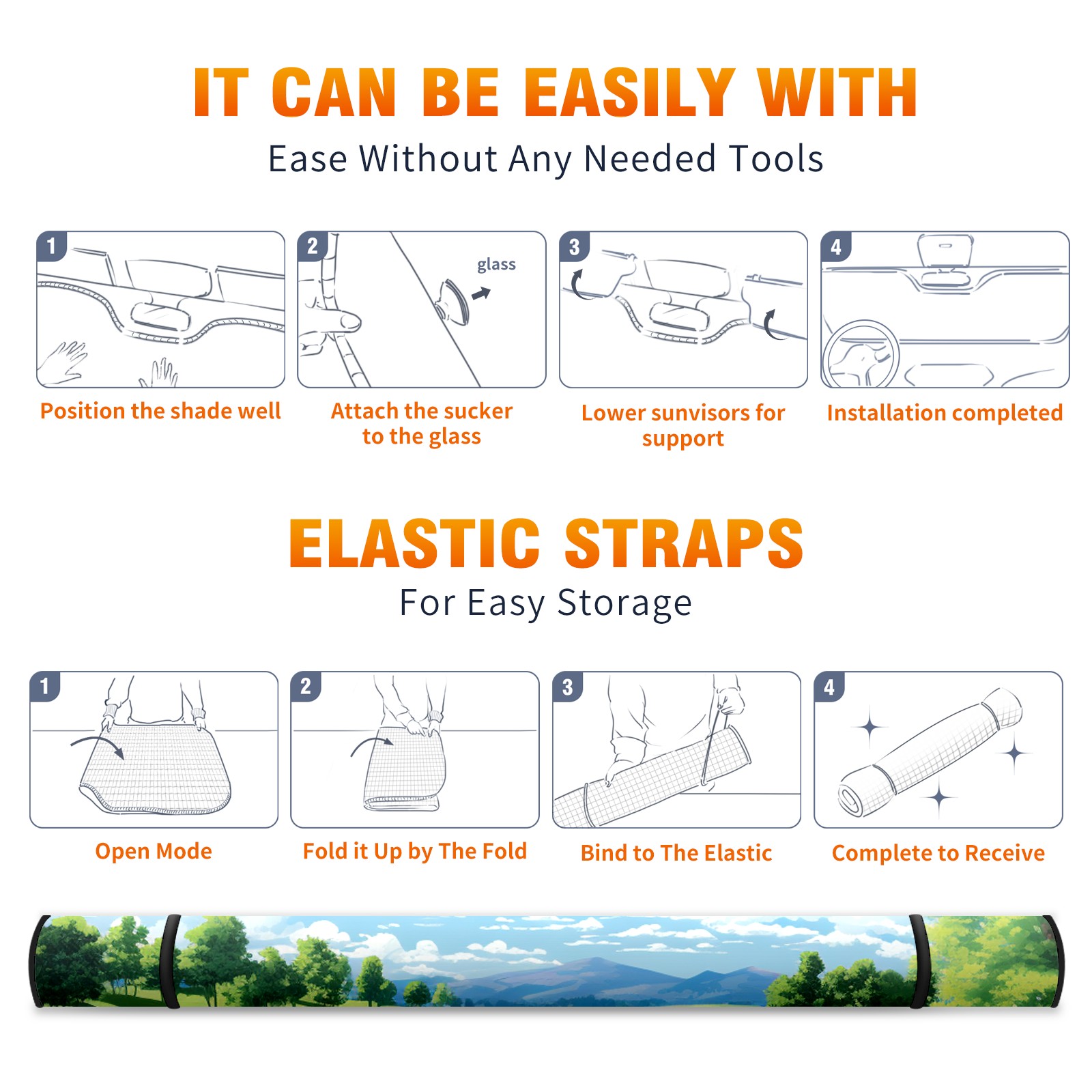 • Diameter /Size 63"L x 33.5"W Made from excellent materials which makes it sturdy and protects the car from the sun. Easy to use and pack. Makes the interior of the car cooler.You can easily stash the sunshade in the storage bag or store long term.It open and closes easy. Also the leather storage bag is durable and easy to put the umbrella back into.This windshield sunshade provides complete coverage and keeps your car interior cool under direct sun. It is easy to open and position under the windshield and around the rear-view mirror. Makes Your Car Easy To Identify, Perfect For Finding Your Car In Crowded Parking Lots And Garages.Great Choice: It Is A Great Gift For Dad, Boyfriend, Brother, Brother And Uncle, Friends, Classmates, Family And So On. Notice: Due To Difference Computer Monitors, The Color Maybe Slightly Different From Picture. As Different Measurement Methods, Measurement Data Will Float Within 2%.I Hope You Understand. If You Have Any Question About The Item Please Do Not Hesitate To Contact Us Immediately And We Will Give You A Satisfactory Reply Within 24 Hours.