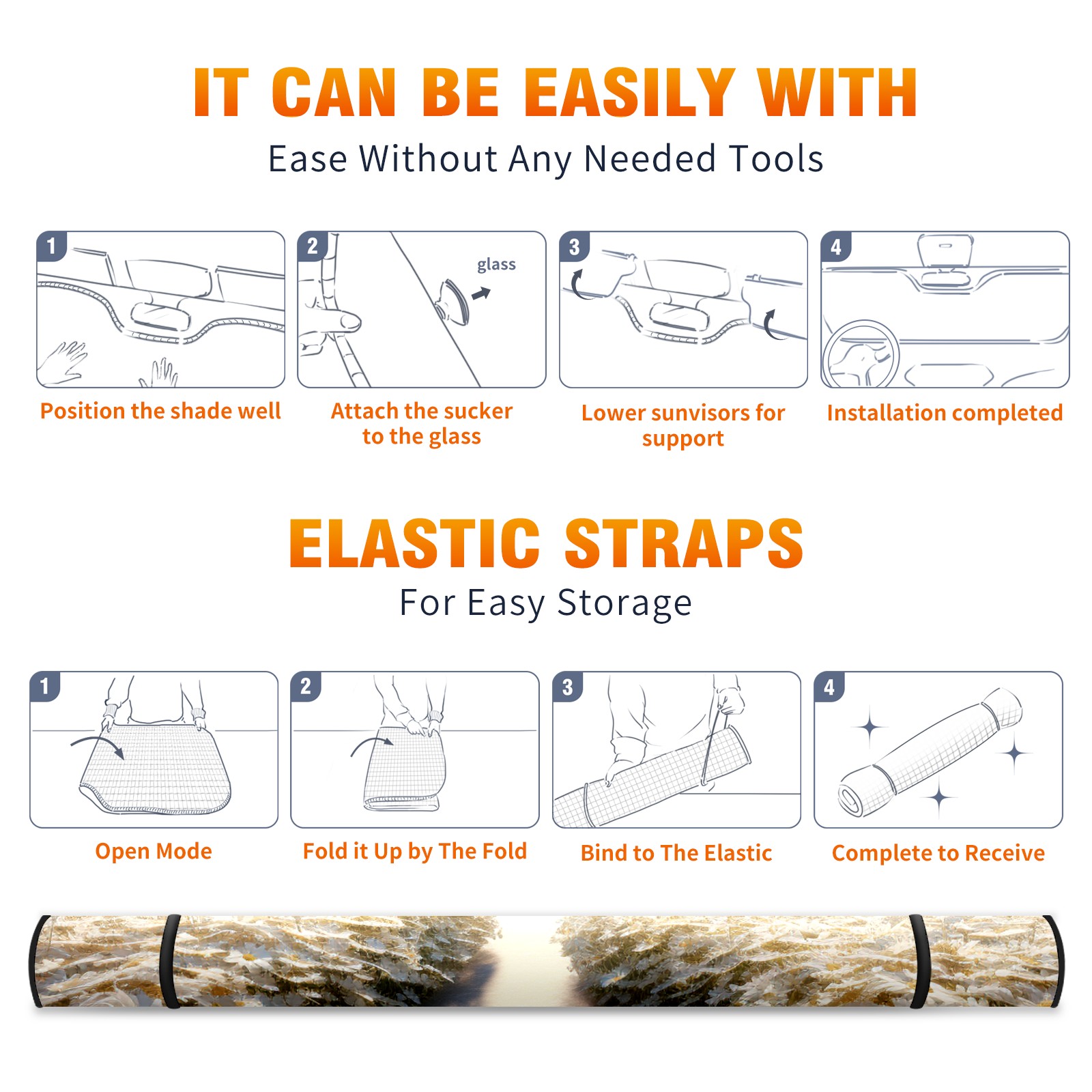 • Diameter /Size 63"L x 33.5"W Made from excellent materials which makes it sturdy and protects the car from the sun. Easy to use and pack. Makes the interior of the car cooler.You can easily stash the sunshade in the storage bag or store long term.It open and closes easy. Also the leather storage bag is durable and easy to put the umbrella back into.This windshield sunshade provides complete coverage and keeps your car interior cool under direct sun. It is easy to open and position under the windshield and around the rear-view mirror. Makes Your Car Easy To Identify, Perfect For Finding Your Car In Crowded Parking Lots And Garages.Great Choice: It Is A Great Gift For Dad, Boyfriend, Brother, Brother And Uncle, Friends, Classmates, Family And So On. Notice: Due To Difference Computer Monitors, The Color Maybe Slightly Different From Picture. As Different Measurement Methods, Measurement Data Will Float Within 2%.I Hope You Understand. If You Have Any Question About The Item Please Do Not Hesitate To Contact Us Immediately And We Will Give You A Satisfactory Reply Within 24 Hours.