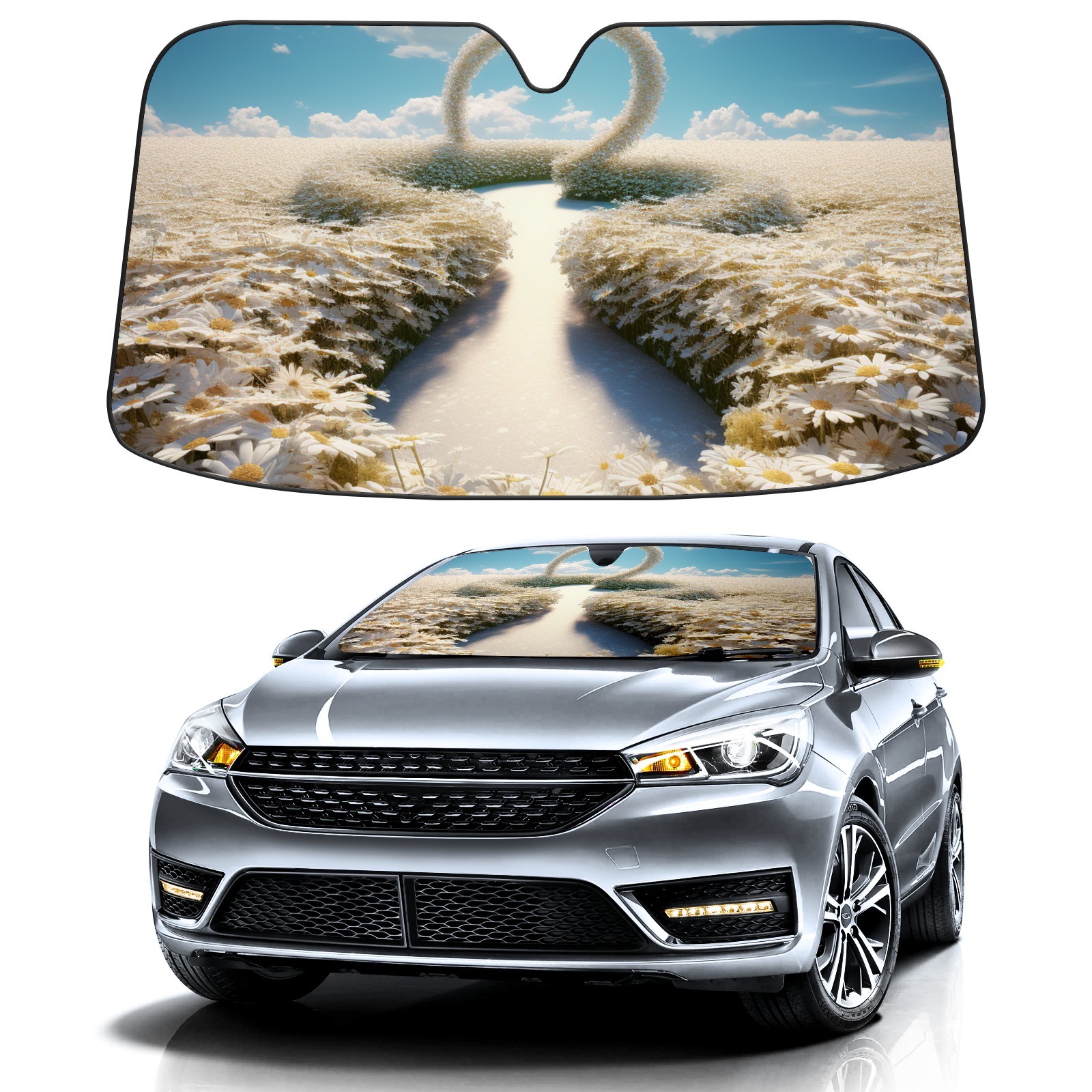 Car Windshield Sun Shade For Front Window Blue Sky And White Foldable Vehicle Windshield Car Sun Visor Covers Automotive Window Protector Car Camping Privacy Sun Blocker
