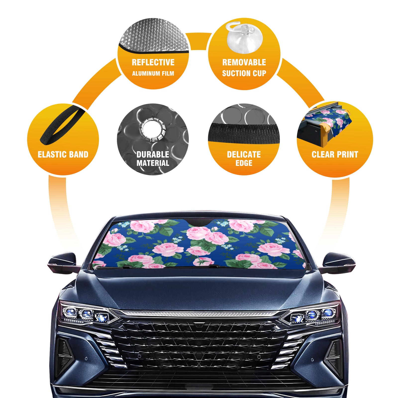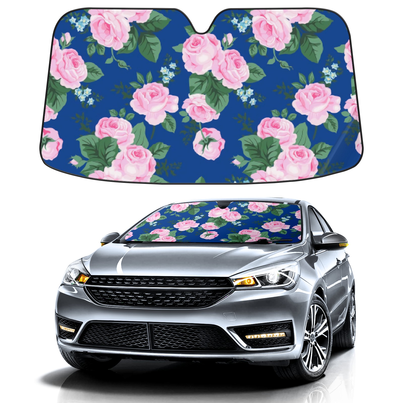 Car Windshield Sun Shade For Front Window Pink Petals On Sky Blue Foldable Vehicle Windshield Car Sun Visor Covers Automotive Window Protector Car Camping Privacy Sun Blocker