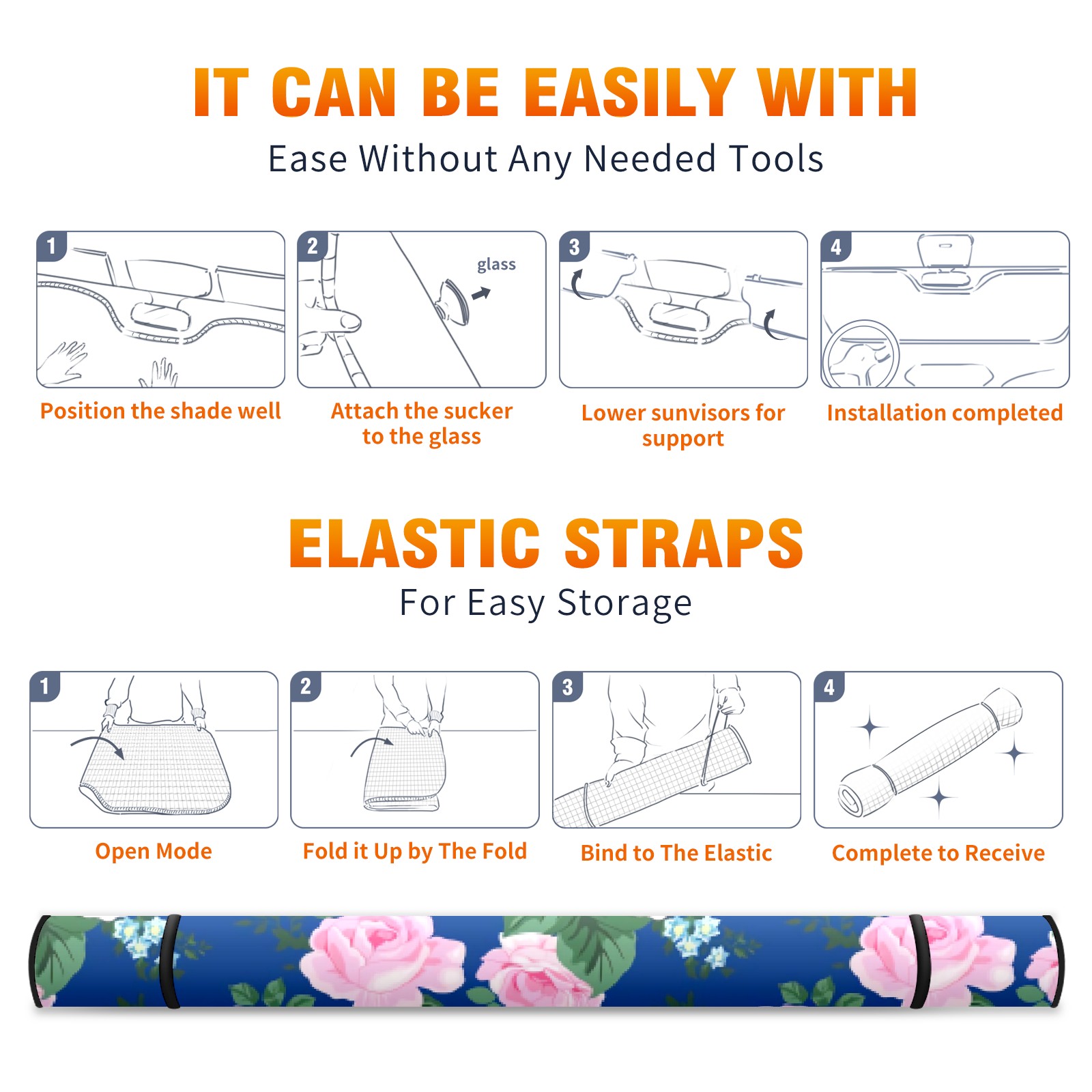 • Diameter /Size 63"L x 33.5"W Made from excellent materials which makes it sturdy and protects the car from the sun. Easy to use and pack. Makes the interior of the car cooler.You can easily stash the sunshade in the storage bag or store long term.It open and closes easy. Also the leather storage bag is durable and easy to put the umbrella back into.This windshield sunshade provides complete coverage and keeps your car interior cool under direct sun. It is easy to open and position under the windshield and around the rear-view mirror. Makes Your Car Easy To Identify, Perfect For Finding Your Car In Crowded Parking Lots And Garages.Great Choice: It Is A Great Gift For Dad, Boyfriend, Brother, Brother And Uncle, Friends, Classmates, Family And So On. Notice: Due To Difference Computer Monitors, The Color Maybe Slightly Different From Picture. As Different Measurement Methods, Measurement Data Will Float Within 2%.I Hope You Understand. If You Have Any Question About The Item Please Do Not Hesitate To Contact Us Immediately And We Will Give You A Satisfactory Reply Within 24 Hours.
