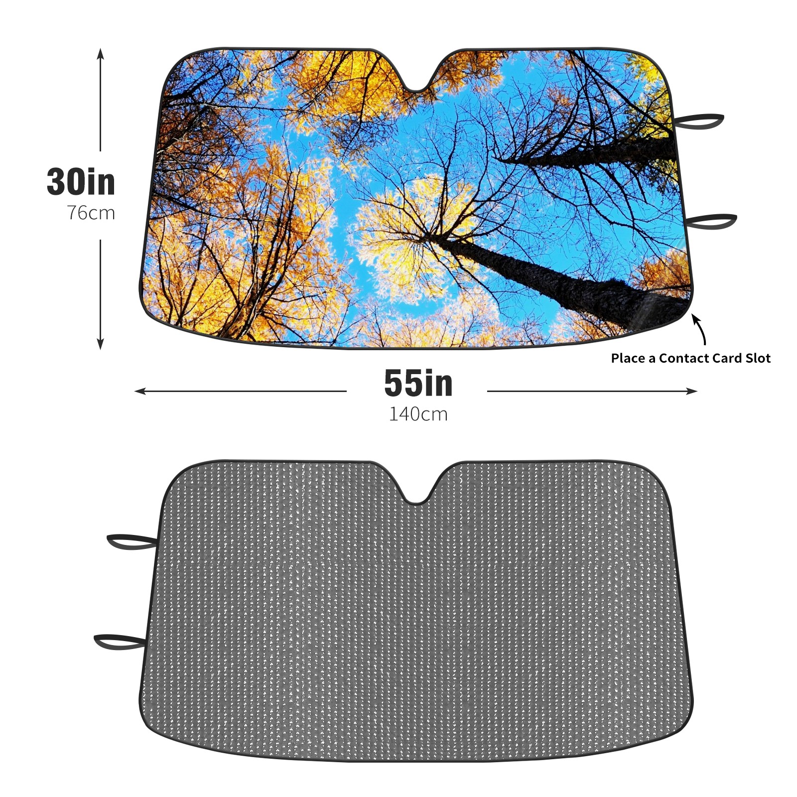 Diameter /Size 63"L x 33.5"W Made from excellent materials which makes it sturdy and protects the car from the sun. Easy to use and pack. Makes the interior of the car cooler.You can easily stash the sunshade in the storage bag or store long term.It open and closes easy. Also the leather storage bag is durable and easy to put the umbrella back into.This windshield sunshade provides complete coverage and keeps your car interior cool under direct sun. It is easy to open and position under the windshield and around the rear-view mirror. Makes Your Car Easy To Identify, Perfect For Finding Your Car In Crowded Parking Lots And Garages.Great Choice: It Is A Great Gift For Dad, Boyfriend, Brother, Brother And Uncle, Friends, Classmates, Family And So On. Notice: Due To Difference Computer Monitors, The Color Maybe Slightly Different From Picture. As Different Measurement Methods, Measurement Data Will Float Within 2%.I Hope You Understand. If You Have Any Question About The Item Please Do Not Hesitate To Contact Us Immediately And We Will Give You A Satisfactory Reply Within 24 Hours.