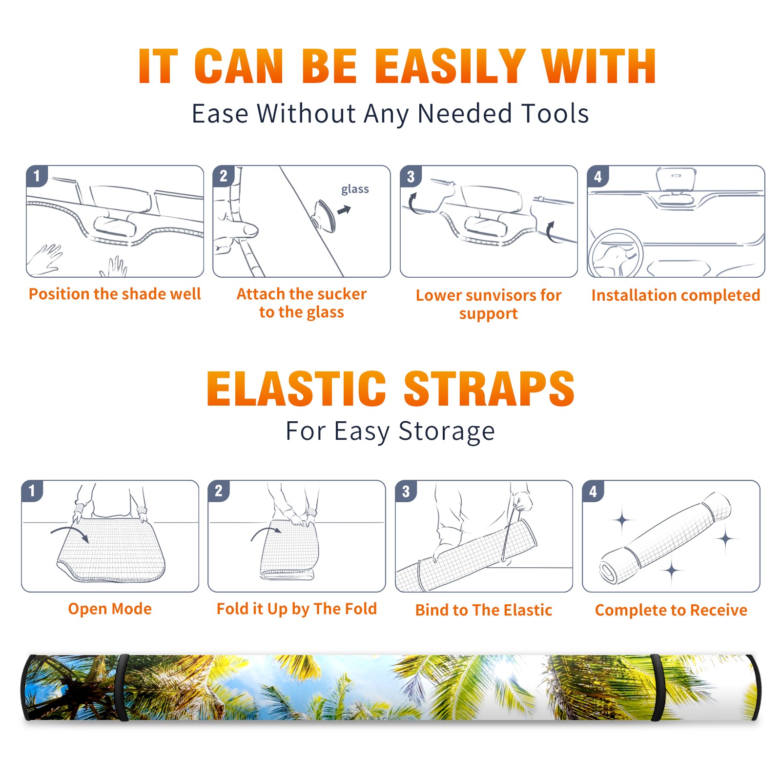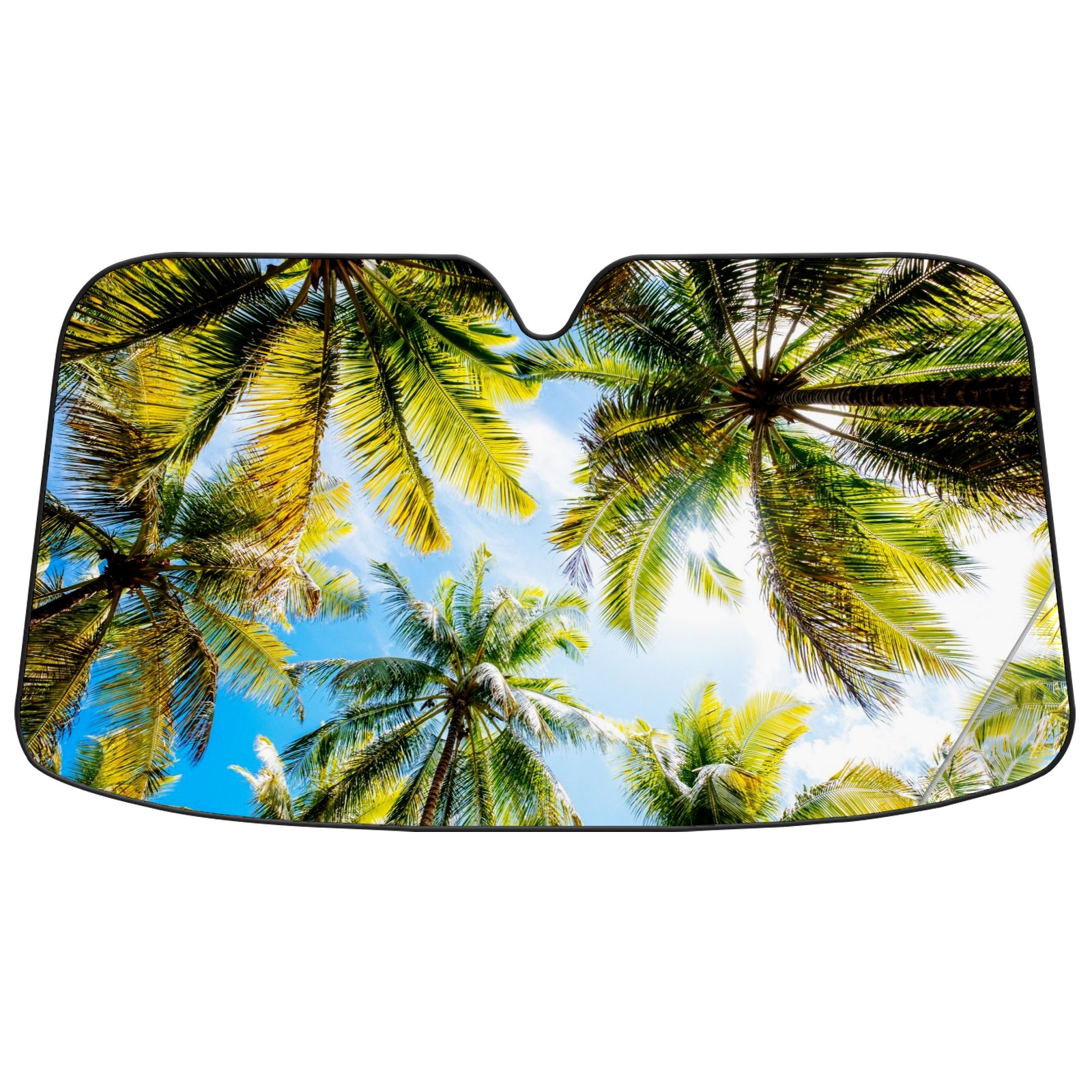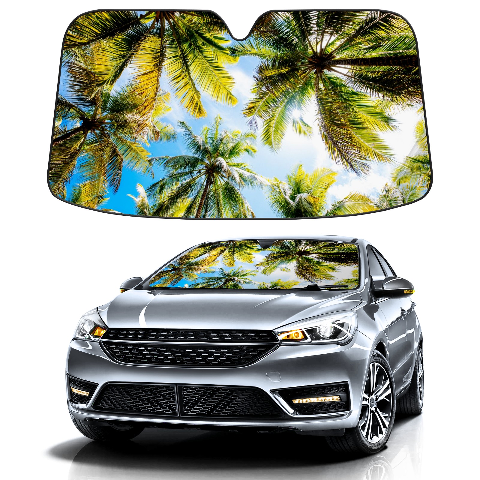 Car Windshield Sun Shade For Front Window Palm Trees Blue Cloudy Sky (1) Foldable Vehicle Windshield Car Sun Visor Covers Automotive Window Protector Car Camping Privacy Sun Blocker