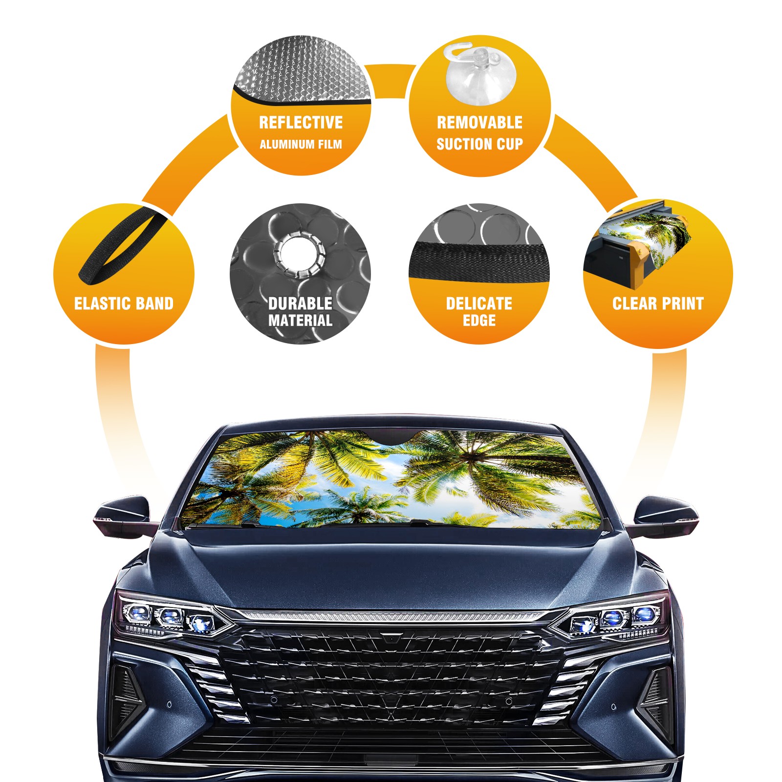 • Diameter /Size 63"L x 33.5"W Made from excellent materials which makes it sturdy and protects the car from the sun. Easy to use and pack. Makes the interior of the car cooler.You can easily stash the sunshade in the storage bag or store long term.It open and closes easy. Also the leather storage bag is durable and easy to put the umbrella back into.This windshield sunshade provides complete coverage and keeps your car interior cool under direct sun. It is easy to open and position under the windshield and around the rear-view mirror. Makes Your Car Easy To Identify, Perfect For Finding Your Car In Crowded Parking Lots And Garages.Great Choice: It Is A Great Gift For Dad, Boyfriend, Brother, Brother And Uncle, Friends, Classmates, Family And So On. Notice: Due To Difference Computer Monitors, The Color Maybe Slightly Different From Picture. As Different Measurement Methods, Measurement Data Will Float Within 2%.I Hope You Understand. If You Have Any Question About The Item Please Do Not Hesitate To Contact Us Immediately And We Will Give You A Satisfactory Reply Within 24 Hours.