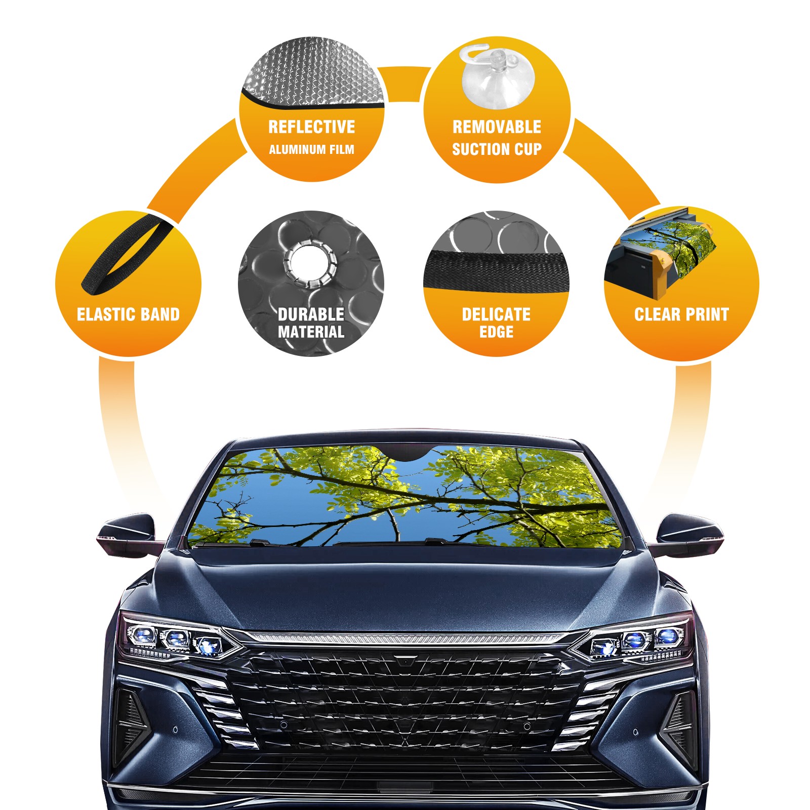 Car Windshield Sun Shade For Front Window Tree Branches Sky Foldable Vehicle Windshield Car Sun Visor Covers Automotive Window Protector Car Camping Privacy Sun Blocker
