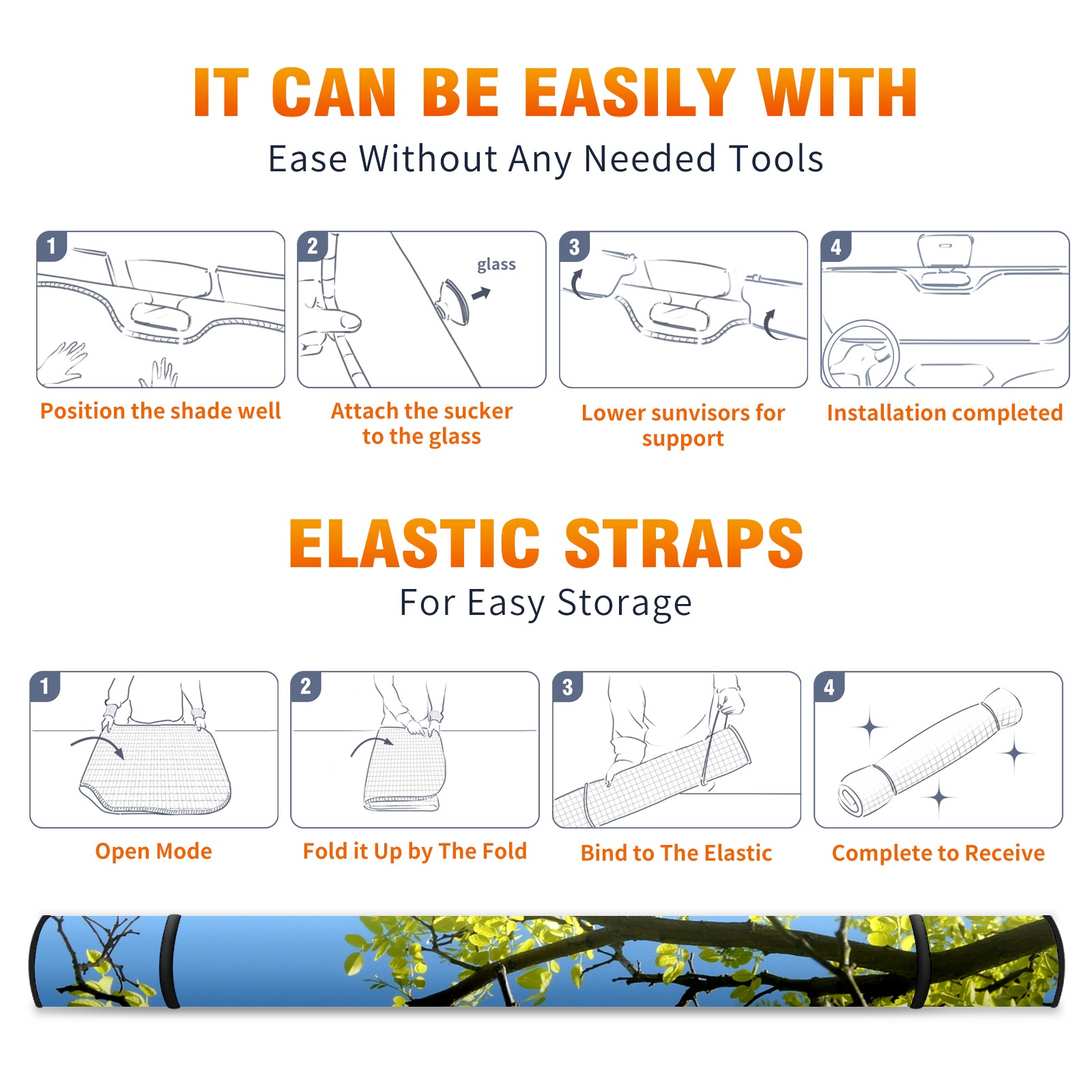 • Diameter /Size 63"L x 33.5"W Made from excellent materials which makes it sturdy and protects the car from the sun. Easy to use and pack. Makes the interior of the car cooler.You can easily stash the sunshade in the storage bag or store long term.It open and closes easy. Also the leather storage bag is durable and easy to put the umbrella back into.This windshield sunshade provides complete coverage and keeps your car interior cool under direct sun. It is easy to open and position under the windshield and around the rear-view mirror. Makes Your Car Easy To Identify, Perfect For Finding Your Car In Crowded Parking Lots And Garages.Great Choice: It Is A Great Gift For Dad, Boyfriend, Brother, Brother And Uncle, Friends, Classmates, Family And So On. Notice: Due To Difference Computer Monitors, The Color Maybe Slightly Different From Picture. As Different Measurement Methods, Measurement Data Will Float Within 2%.I Hope You Understand. If You Have Any Question About The Item Please Do Not Hesitate To Contact Us Immediately And We Will Give You A Satisfactory Reply Within 24 Hours.