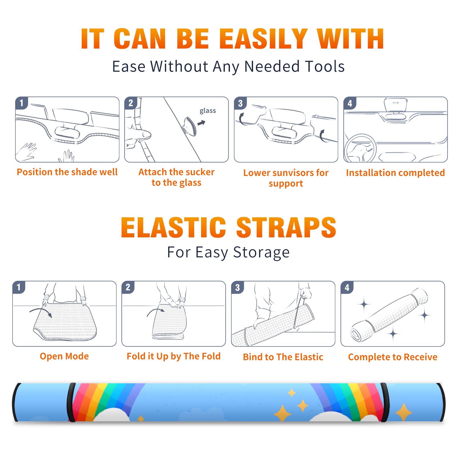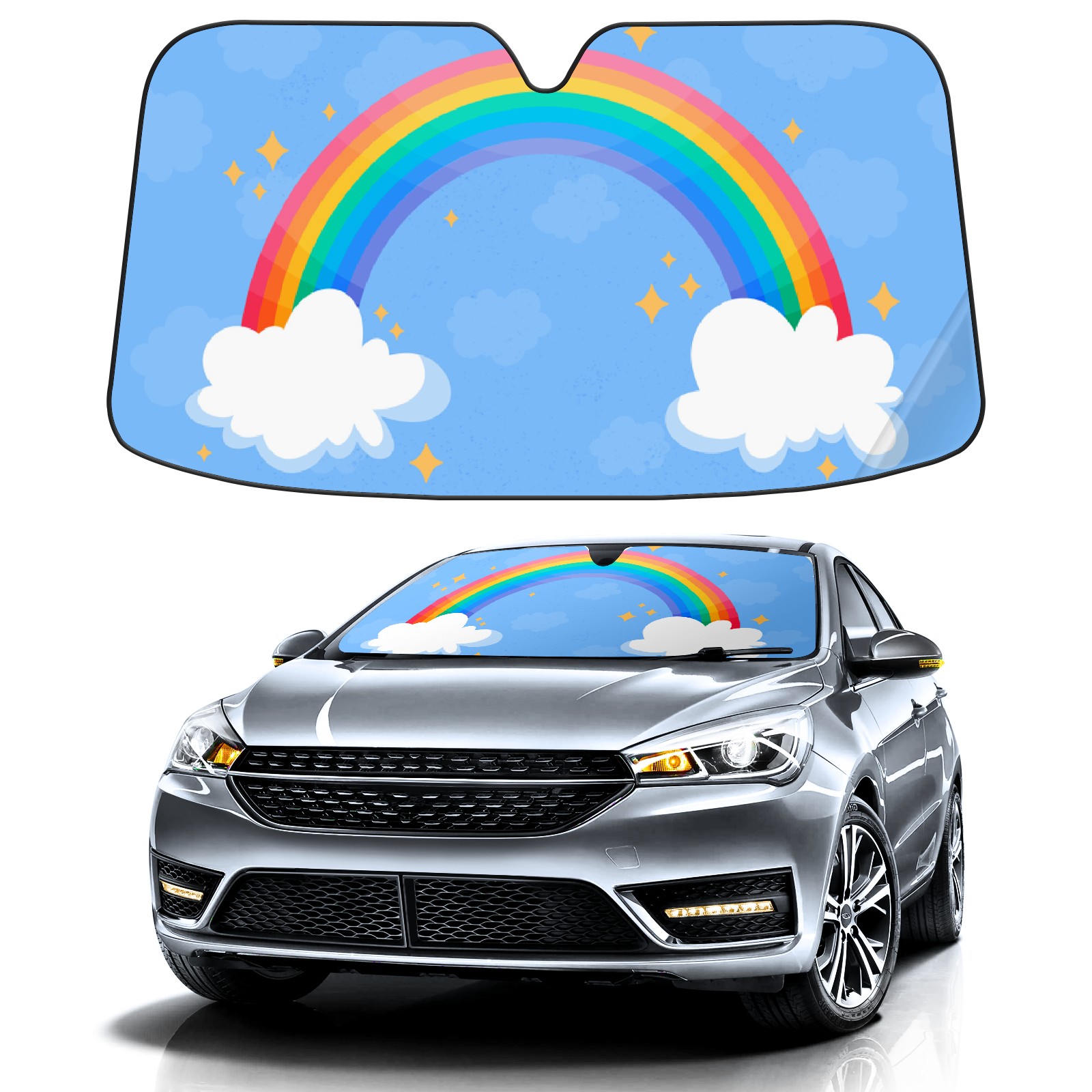Car Windshield Sun Shade For Front Window Rainbow Blue Sky Foldable Vehicle Windshield Car Sun Visor Covers Automotive Window Protector Car Camping Privacy Sun Blocker