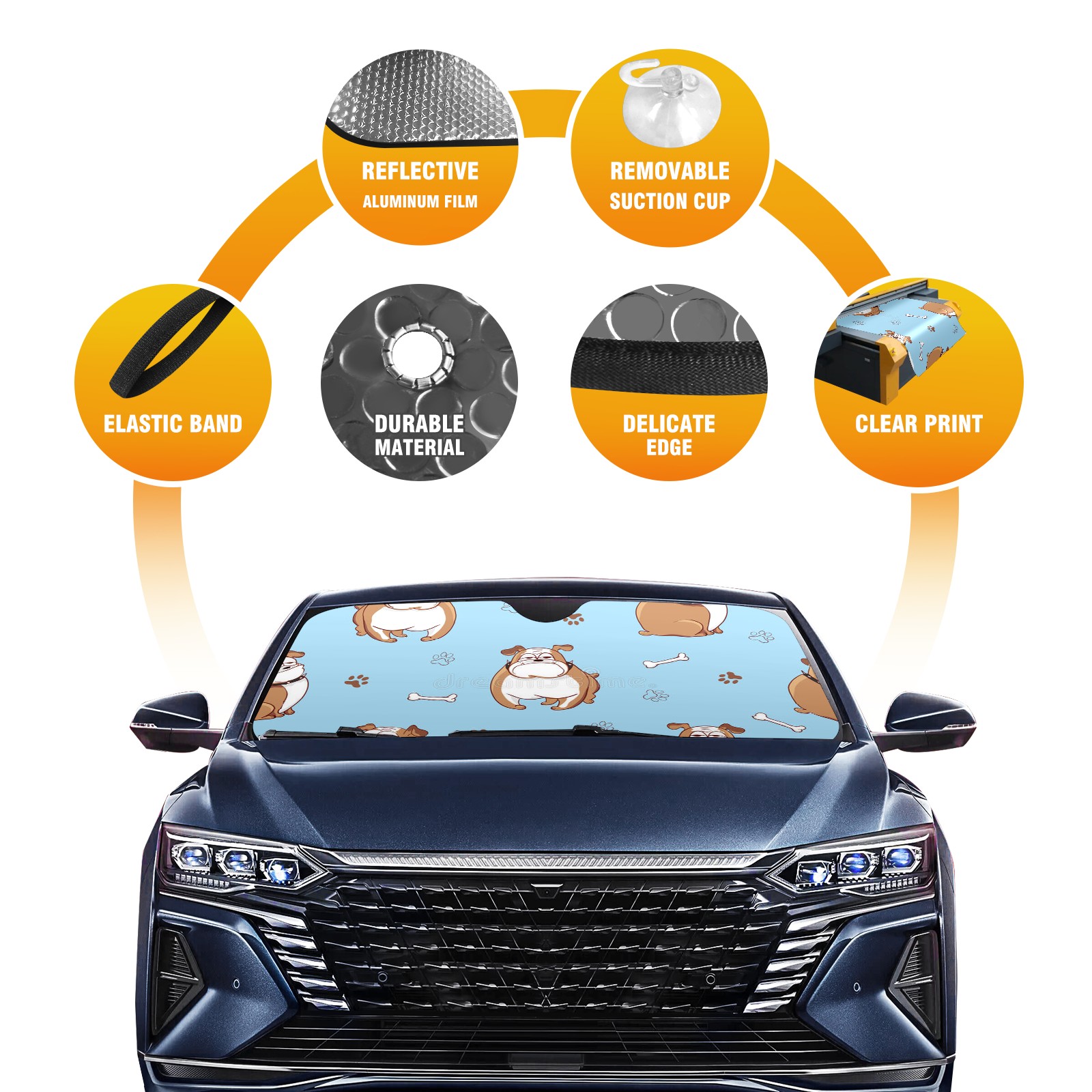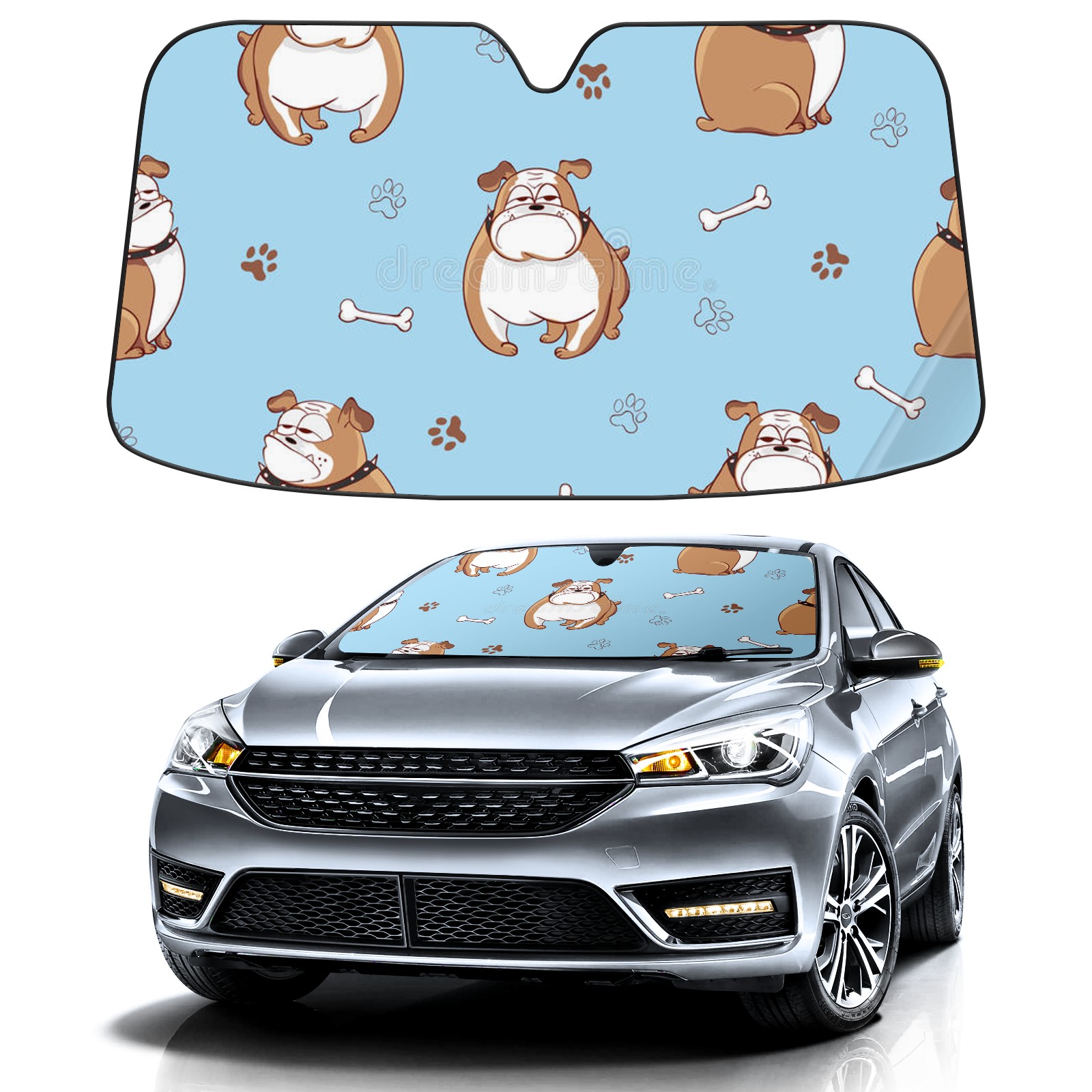 Car Windshield Sun Shade For Front Window Sky Blue Dog And Bone Foldable Vehicle Windshield Car Sun Visor Covers Automotive Window Protector Car Camping Privacy Sun Blocker