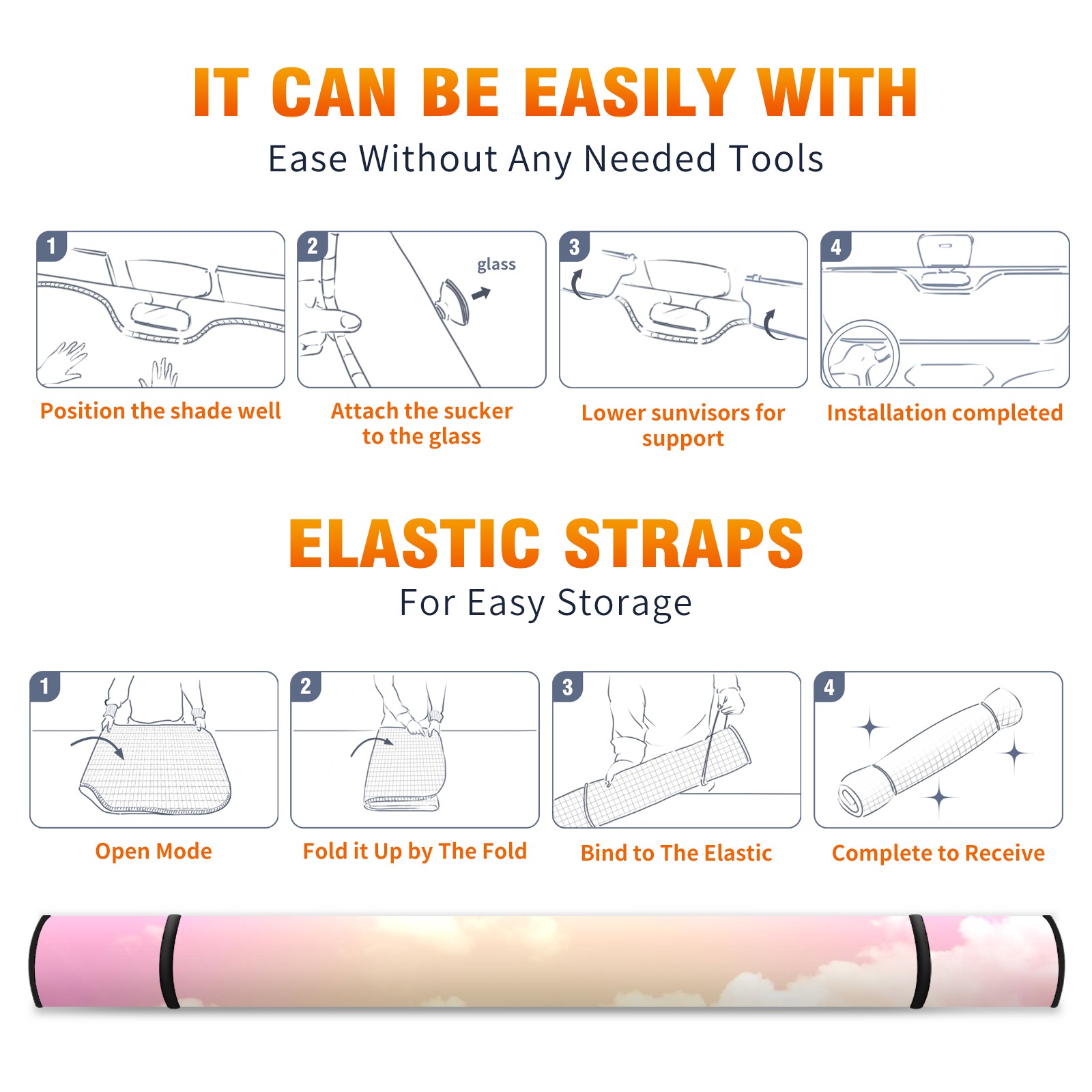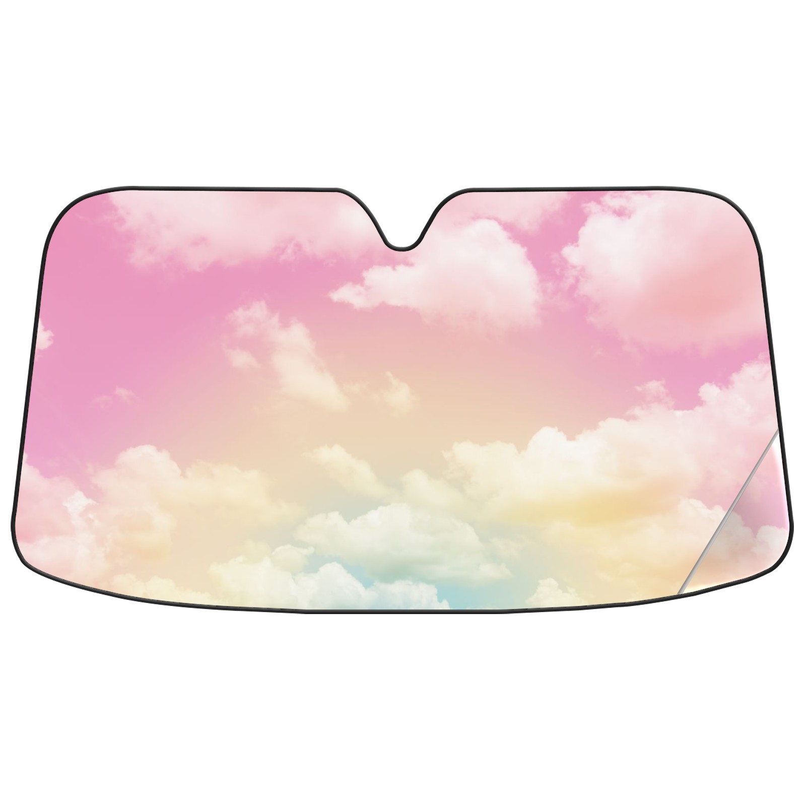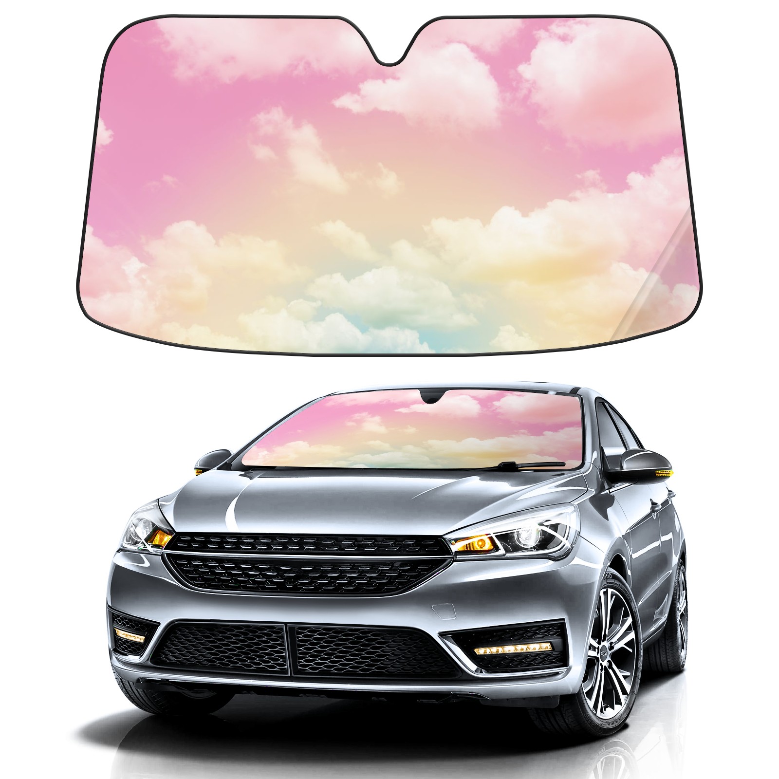 Car Windshield Sun Shade For Front Window Pink Sky Clouds Foldable Vehicle Windshield Car Sun Visor Covers Automotive Window Protector Car Camping Privacy Sun Blocker