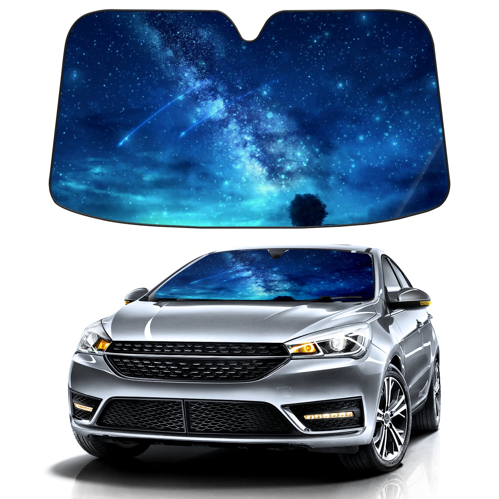 Car Windshield Sun Shade For Front Window Blue Starry Sky Night Tree Foldable Vehicle Windshield Car Sun Visor Covers Automotive Window Protector Car Camping Privacy Sun Blocker