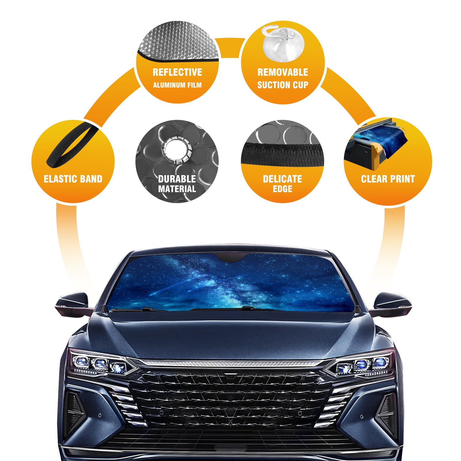 • Diameter /Size 63"L x 33.5"W Made from excellent materials which makes it sturdy and protects the car from the sun. Easy to use and pack. Makes the interior of the car cooler.You can easily stash the sunshade in the storage bag or store long term.It open and closes easy. Also the leather storage bag is durable and easy to put the umbrella back into.This windshield sunshade provides complete coverage and keeps your car interior cool under direct sun. It is easy to open and position under the windshield and around the rear-view mirror. Makes Your Car Easy To Identify, Perfect For Finding Your Car In Crowded Parking Lots And Garages.Great Choice: It Is A Great Gift For Dad, Boyfriend, Brother, Brother And Uncle, Friends, Classmates, Family And So On. Notice: Due To Difference Computer Monitors, The Color Maybe Slightly Different From Picture. As Different Measurement Methods, Measurement Data Will Float Within 2%.I Hope You Understand. If You Have Any Question About The Item Please Do Not Hesitate To Contact Us Immediately And We Will Give You A Satisfactory Reply Within 24 Hours.