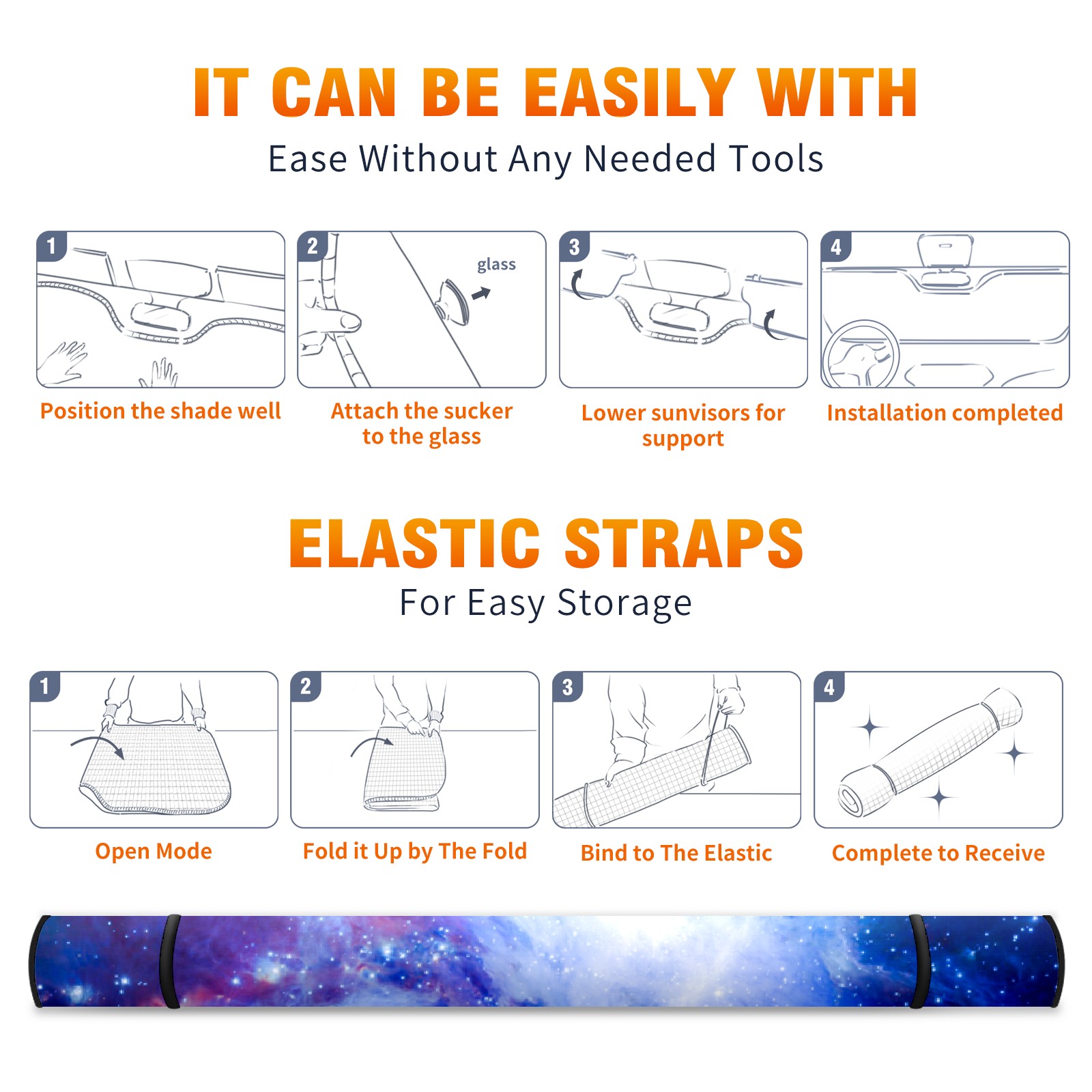 Car Windshield Sun Shade For Front Window Blue Purple Starry Night Sky Foldable Vehicle Windshield Car Sun Visor Covers Automotive Window Protector Car Camping Privacy Sun Blocker