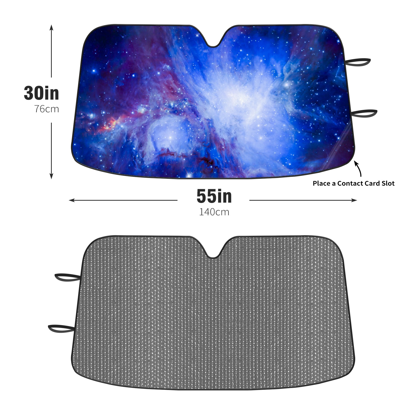 Diameter /Size 63"L x 33.5"W Made from excellent materials which makes it sturdy and protects the car from the sun. Easy to use and pack. Makes the interior of the car cooler.You can easily stash the sunshade in the storage bag or store long term.It open and closes easy. Also the leather storage bag is durable and easy to put the umbrella back into.This windshield sunshade provides complete coverage and keeps your car interior cool under direct sun. It is easy to open and position under the windshield and around the rear-view mirror. Makes Your Car Easy To Identify, Perfect For Finding Your Car In Crowded Parking Lots And Garages.Great Choice: It Is A Great Gift For Dad, Boyfriend, Brother, Brother And Uncle, Friends, Classmates, Family And So On. Notice: Due To Difference Computer Monitors, The Color Maybe Slightly Different From Picture. As Different Measurement Methods, Measurement Data Will Float Within 2%.I Hope You Understand. If You Have Any Question About The Item Please Do Not Hesitate To Contact Us Immediately And We Will Give You A Satisfactory Reply Within 24 Hours.