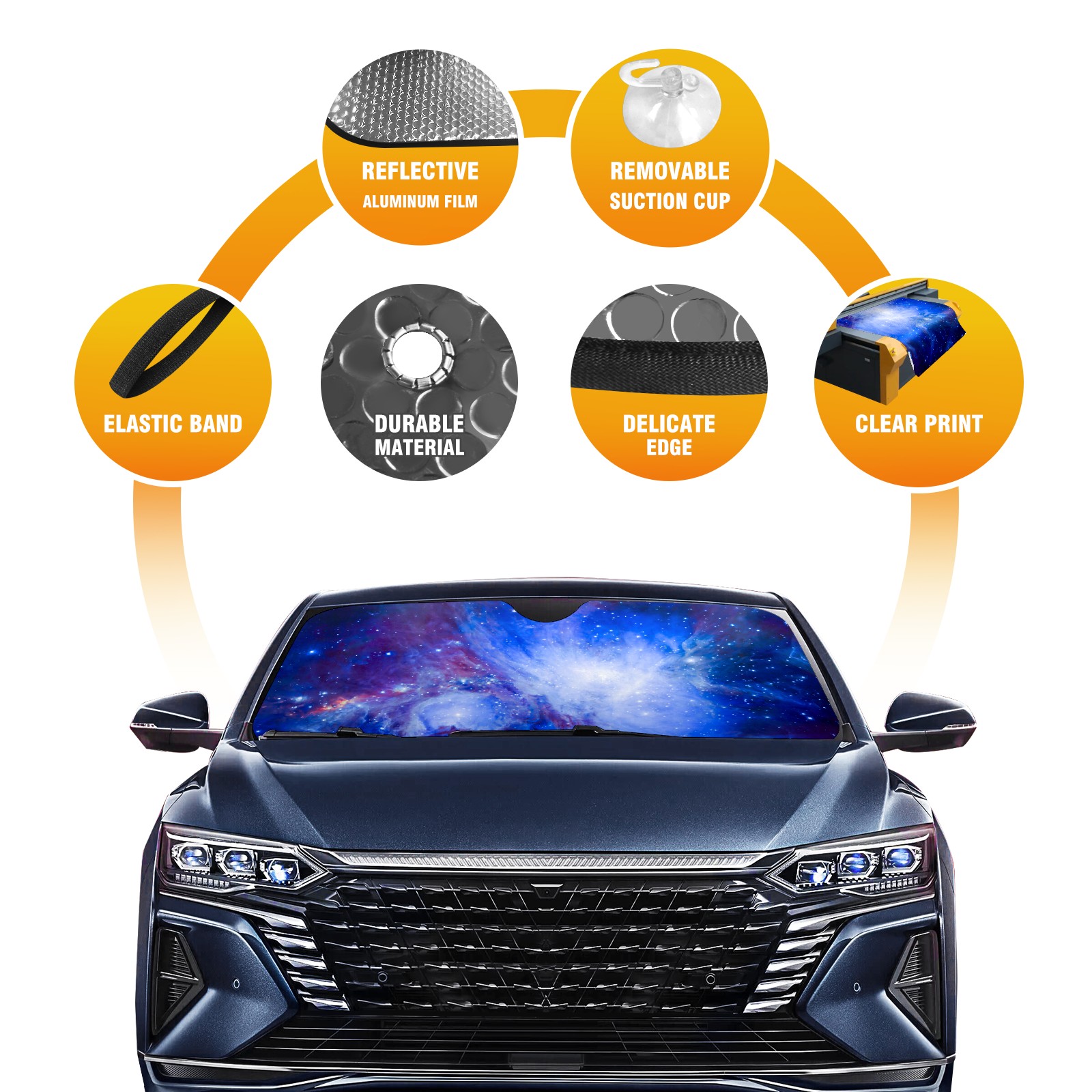 • Diameter /Size 63"L x 33.5"W Made from excellent materials which makes it sturdy and protects the car from the sun. Easy to use and pack. Makes the interior of the car cooler.You can easily stash the sunshade in the storage bag or store long term.It open and closes easy. Also the leather storage bag is durable and easy to put the umbrella back into.This windshield sunshade provides complete coverage and keeps your car interior cool under direct sun. It is easy to open and position under the windshield and around the rear-view mirror. Makes Your Car Easy To Identify, Perfect For Finding Your Car In Crowded Parking Lots And Garages.Great Choice: It Is A Great Gift For Dad, Boyfriend, Brother, Brother And Uncle, Friends, Classmates, Family And So On. Notice: Due To Difference Computer Monitors, The Color Maybe Slightly Different From Picture. As Different Measurement Methods, Measurement Data Will Float Within 2%.I Hope You Understand. If You Have Any Question About The Item Please Do Not Hesitate To Contact Us Immediately And We Will Give You A Satisfactory Reply Within 24 Hours.
