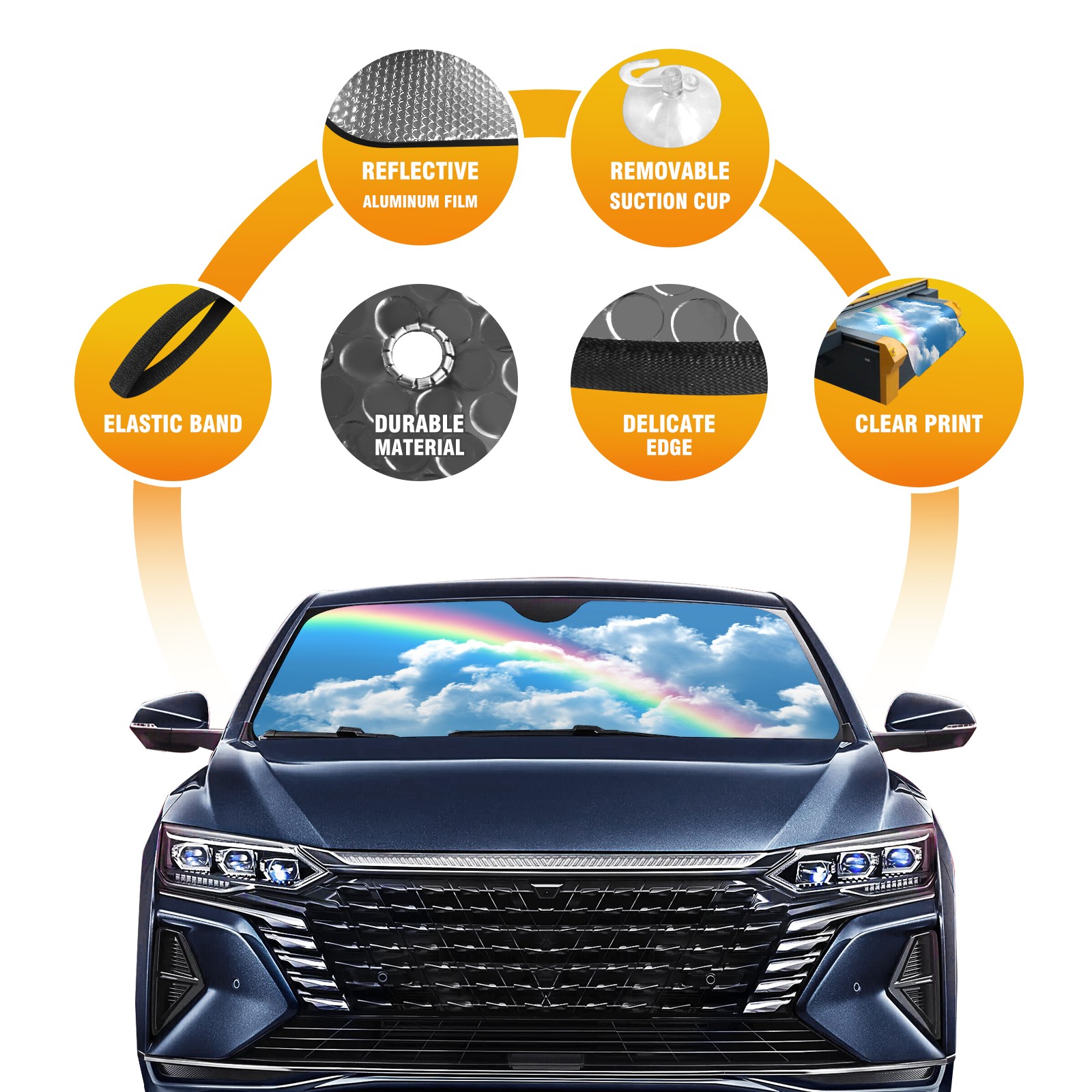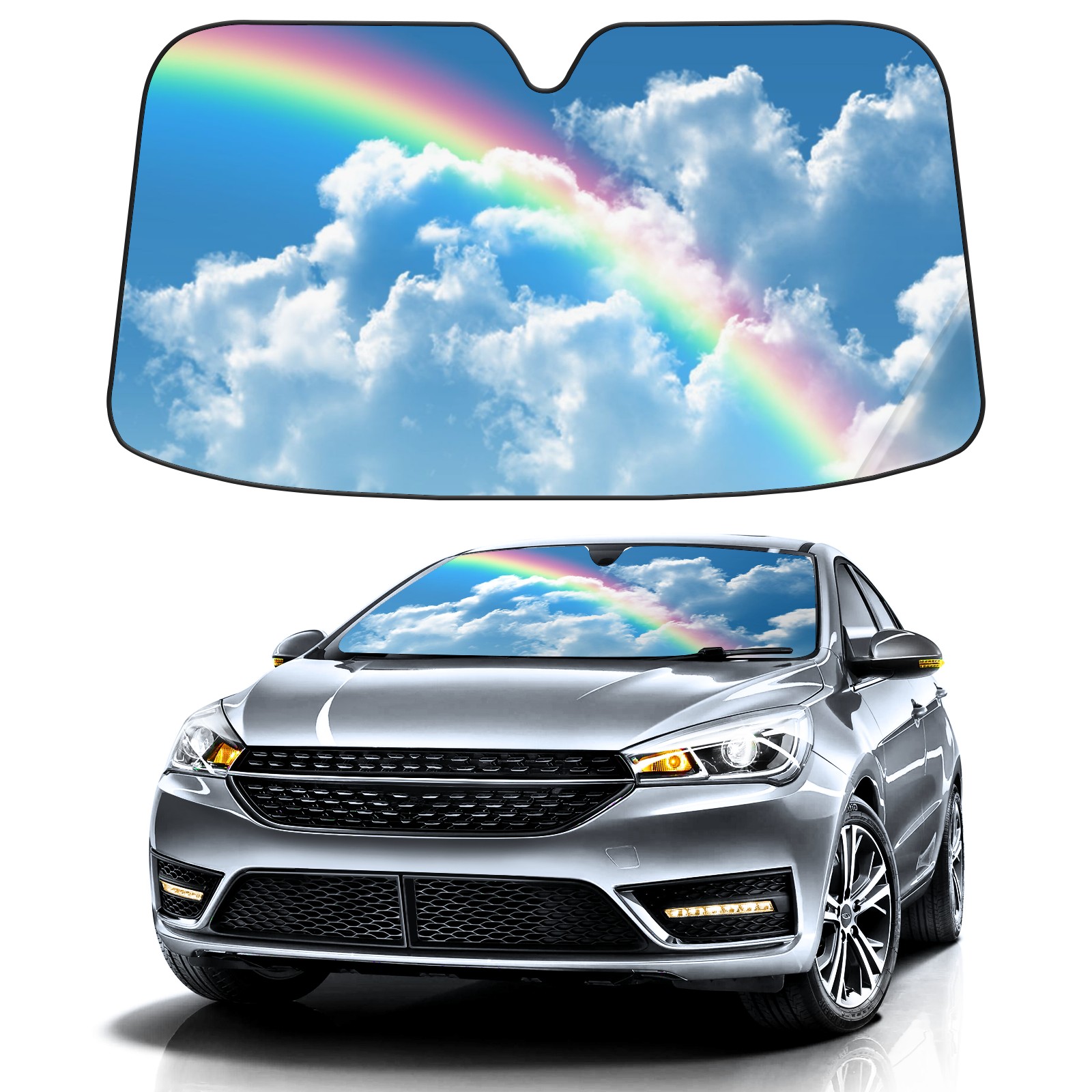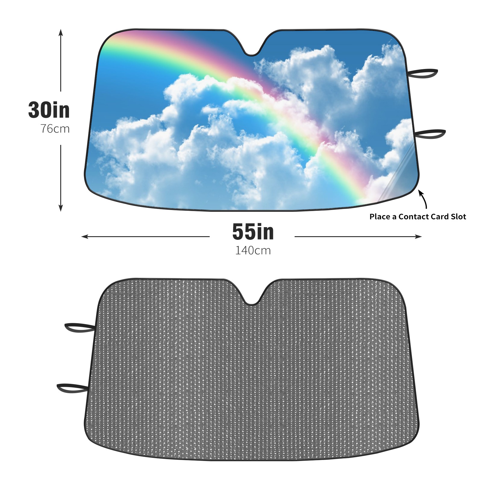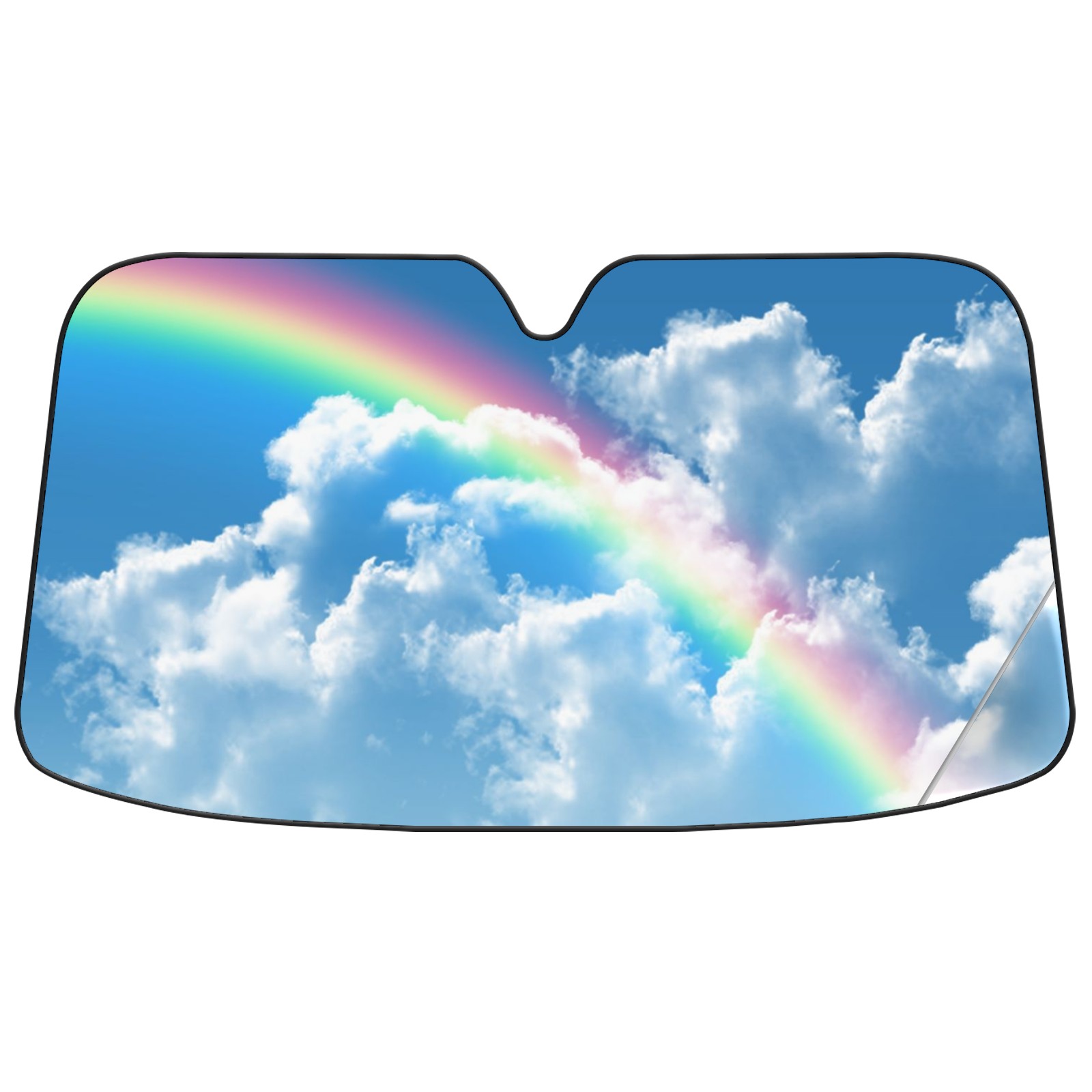 Car Windshield Sun Shade For Front Window Beautiful Rainbow Blue Sky Cloud Foldable Vehicle Windshield Car Sun Visor Covers Automotive Window Protector Car Camping Privacy Sun Blocker