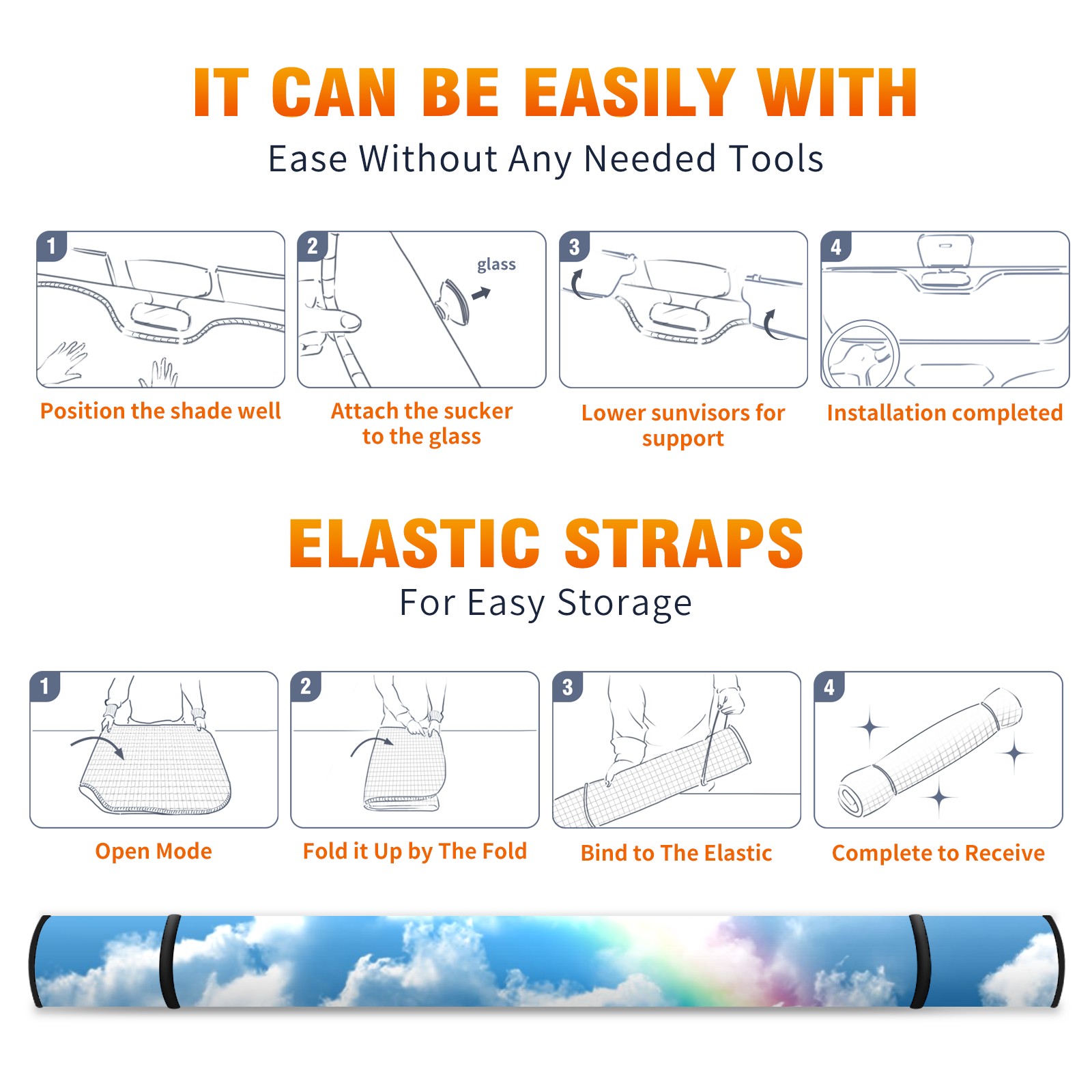 • Diameter /Size 63"L x 33.5"W Made from excellent materials which makes it sturdy and protects the car from the sun. Easy to use and pack. Makes the interior of the car cooler.You can easily stash the sunshade in the storage bag or store long term.It open and closes easy. Also the leather storage bag is durable and easy to put the umbrella back into.This windshield sunshade provides complete coverage and keeps your car interior cool under direct sun. It is easy to open and position under the windshield and around the rear-view mirror. Makes Your Car Easy To Identify, Perfect For Finding Your Car In Crowded Parking Lots And Garages.Great Choice: It Is A Great Gift For Dad, Boyfriend, Brother, Brother And Uncle, Friends, Classmates, Family And So On. Notice: Due To Difference Computer Monitors, The Color Maybe Slightly Different From Picture. As Different Measurement Methods, Measurement Data Will Float Within 2%.I Hope You Understand. If You Have Any Question About The Item Please Do Not Hesitate To Contact Us Immediately And We Will Give You A Satisfactory Reply Within 24 Hours.