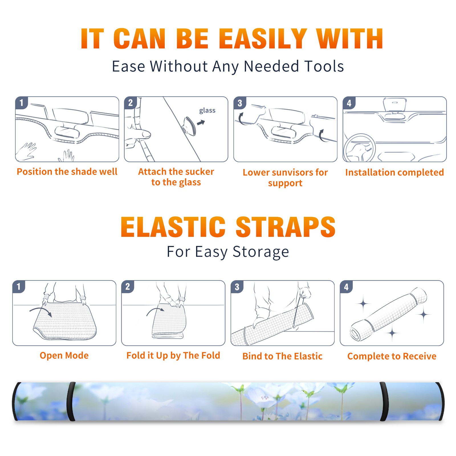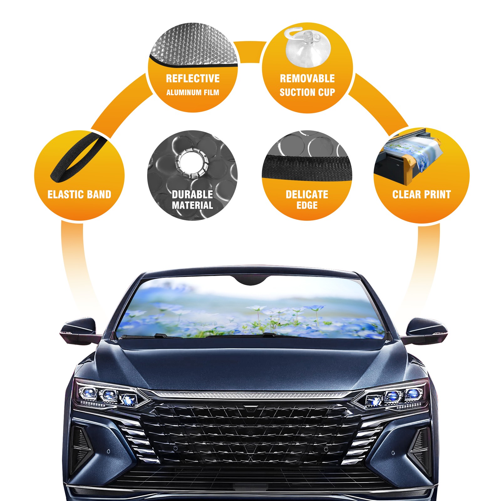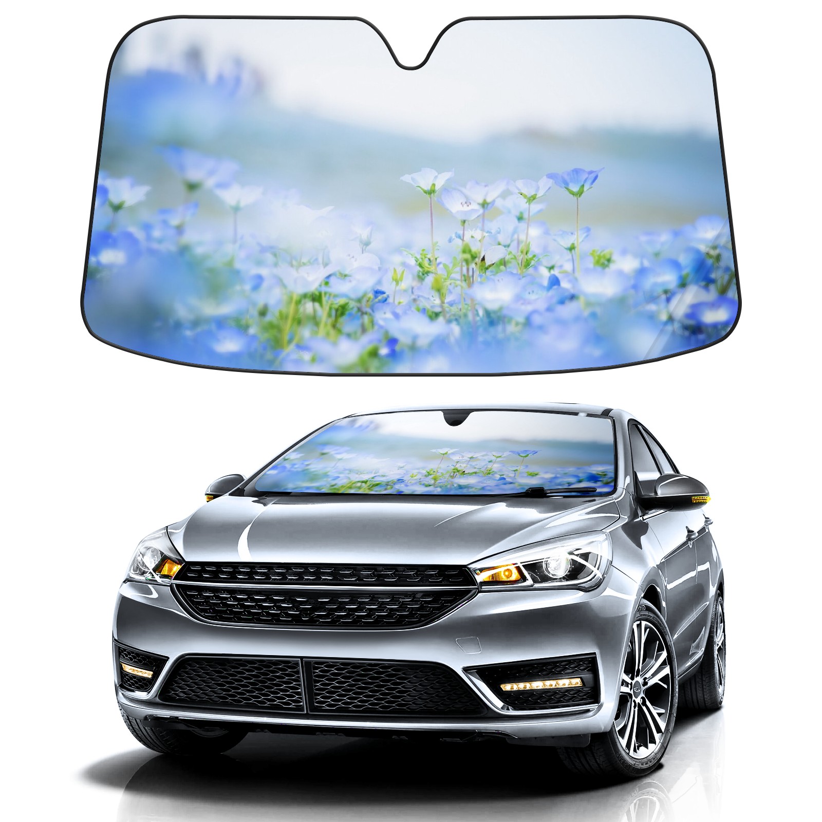 Car Windshield Sun Shade For Front Window Sky Blue Flower Foldable Vehicle Windshield Car Sun Visor Covers Automotive Window Protector Car Camping Privacy Sun Blocker