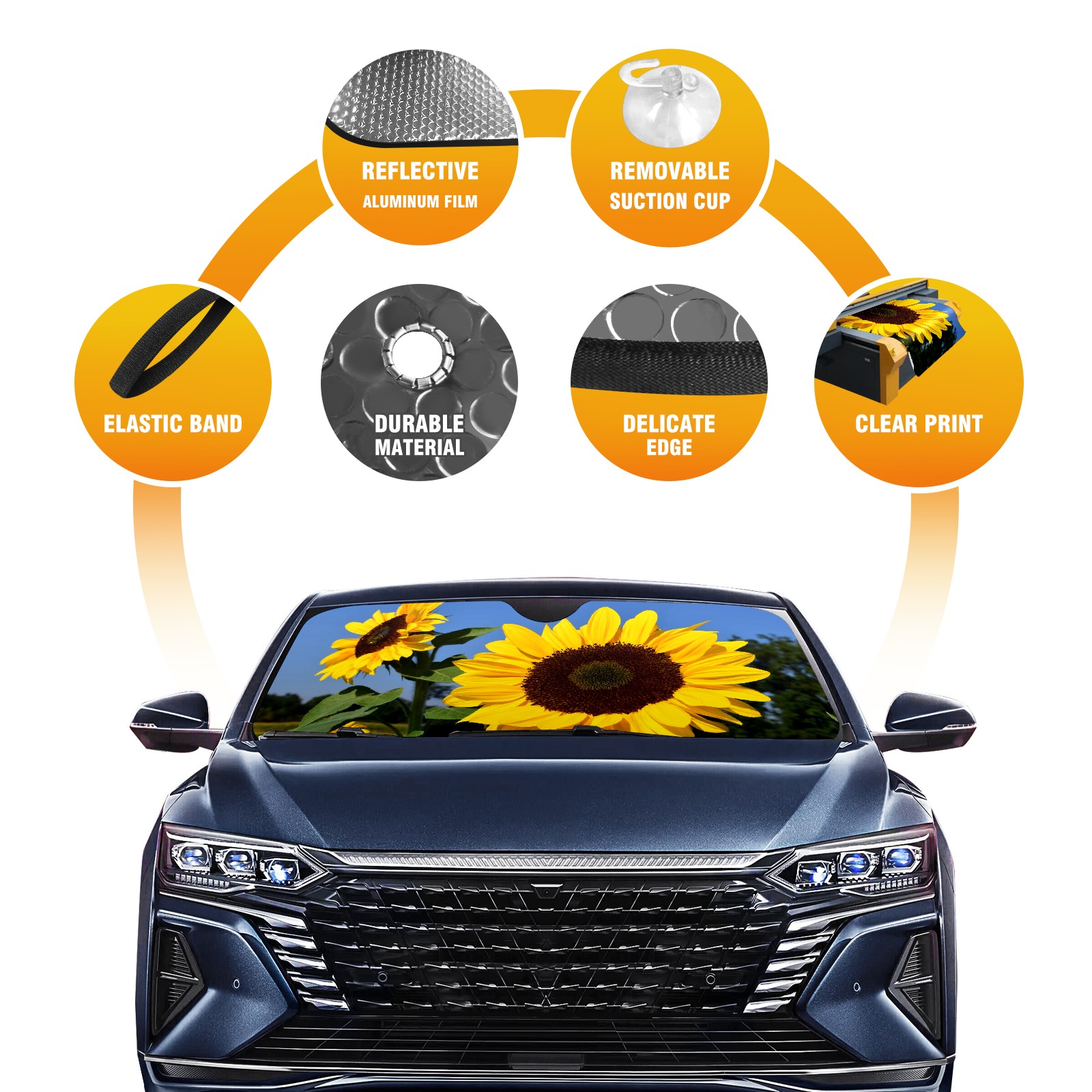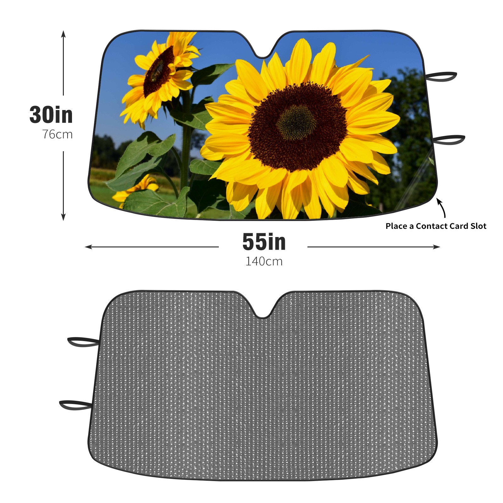 Diameter /Size 63"L x 33.5"W Made from excellent materials which makes it sturdy and protects the car from the sun. Easy to use and pack. Makes the interior of the car cooler.You can easily stash the sunshade in the storage bag or store long term.It open and closes easy. Also the leather storage bag is durable and easy to put the umbrella back into.This windshield sunshade provides complete coverage and keeps your car interior cool under direct sun. It is easy to open and position under the windshield and around the rear-view mirror. Makes Your Car Easy To Identify, Perfect For Finding Your Car In Crowded Parking Lots And Garages.Great Choice: It Is A Great Gift For Dad, Boyfriend, Brother, Brother And Uncle, Friends, Classmates, Family And So On. Notice: Due To Difference Computer Monitors, The Color Maybe Slightly Different From Picture. As Different Measurement Methods, Measurement Data Will Float Within 2%.I Hope You Understand. If You Have Any Question About The Item Please Do Not Hesitate To Contact Us Immediately And We Will Give You A Satisfactory Reply Within 24 Hours.